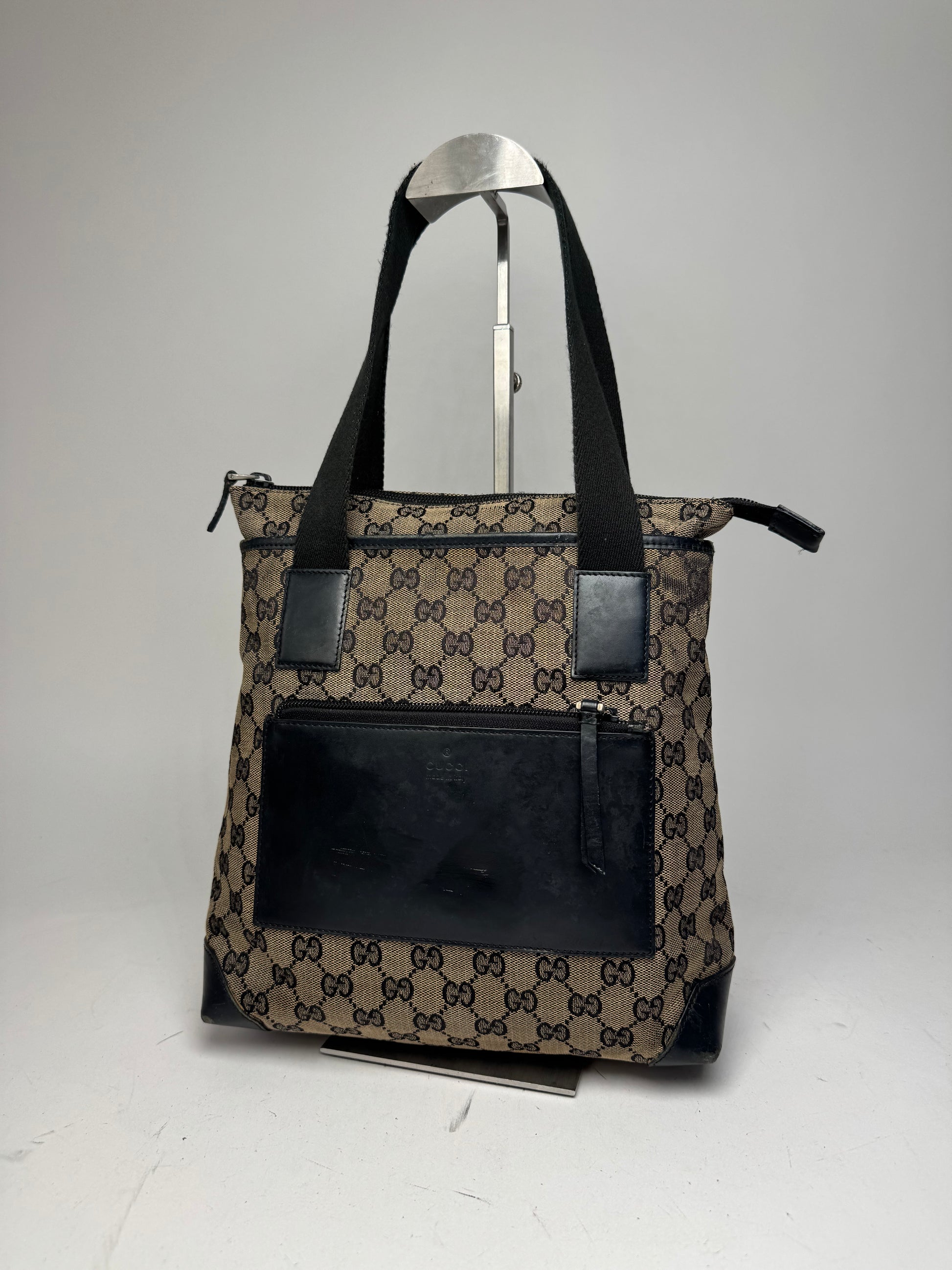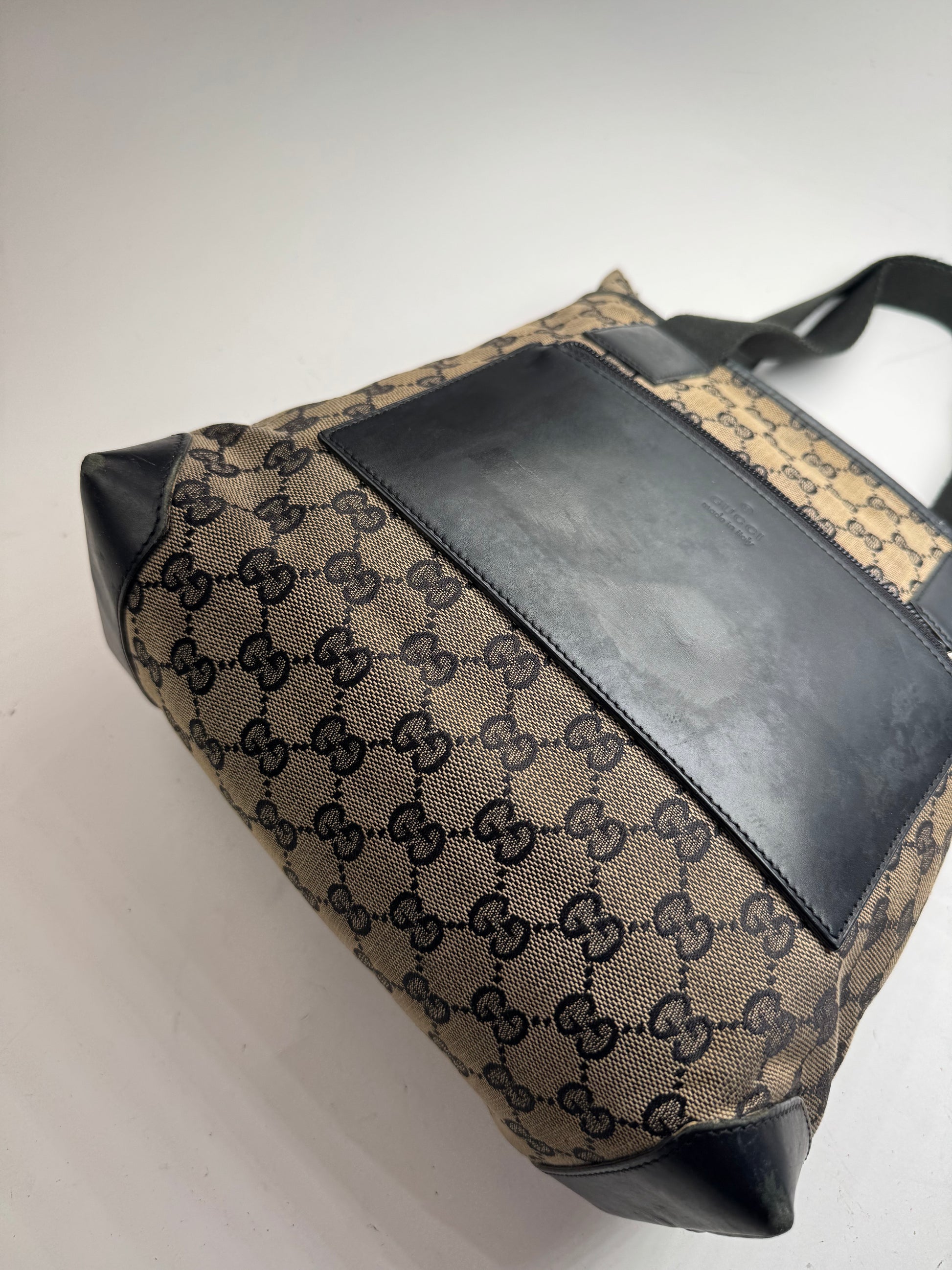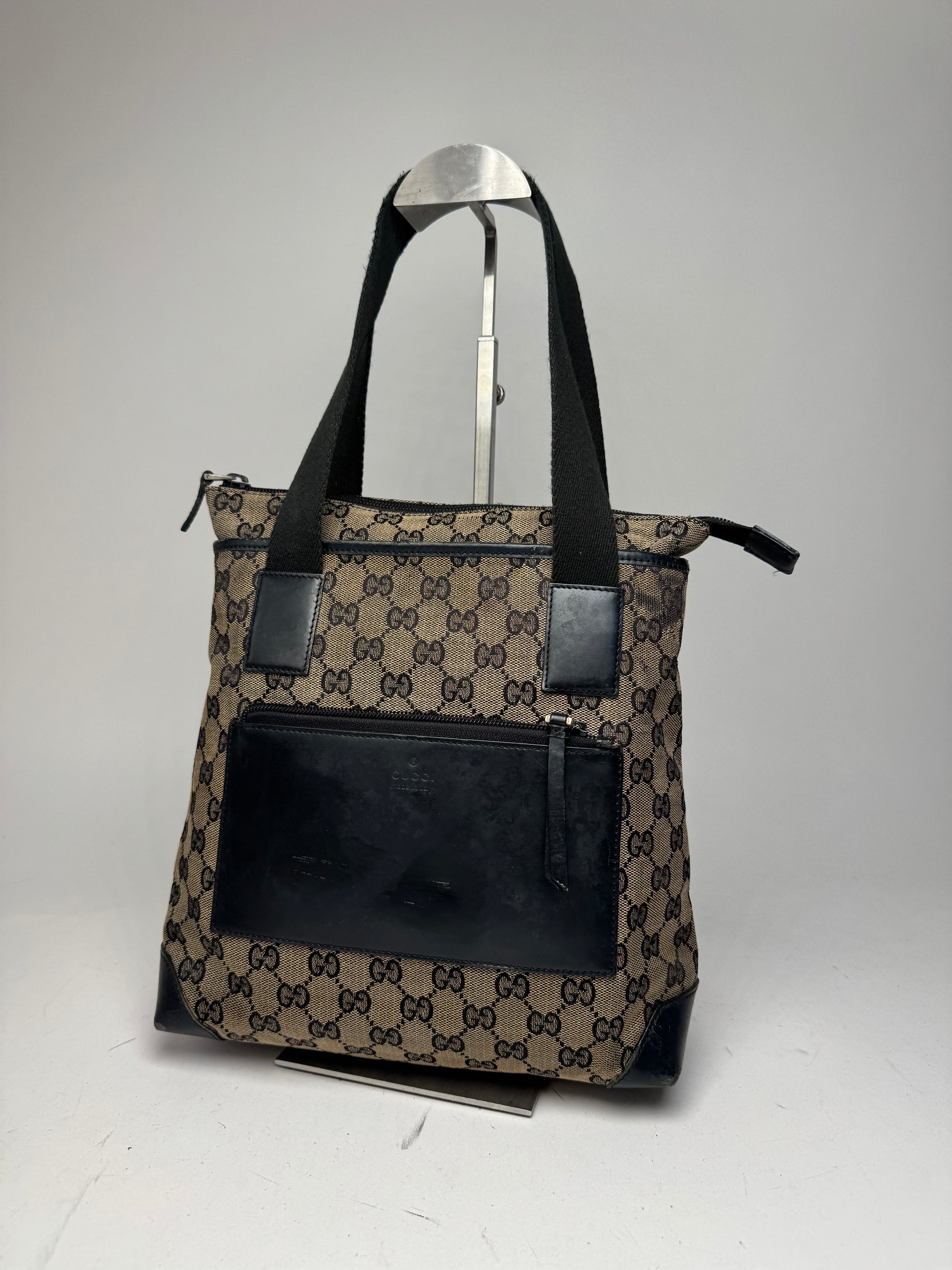 Vintage Gucci Monogram Leather Canvas Bag beige brown black