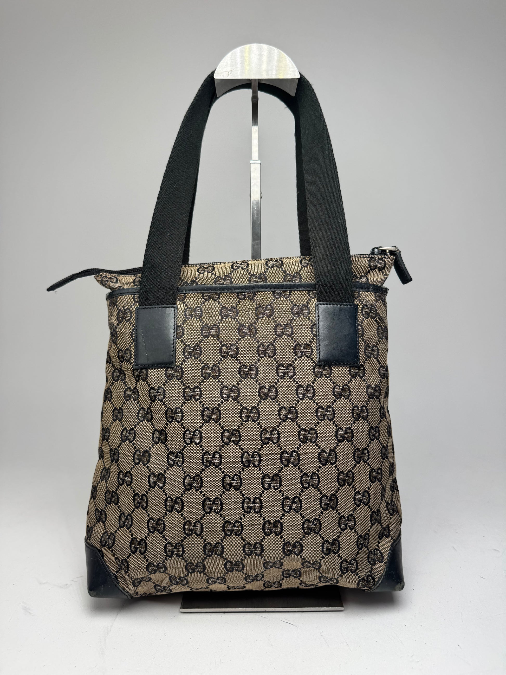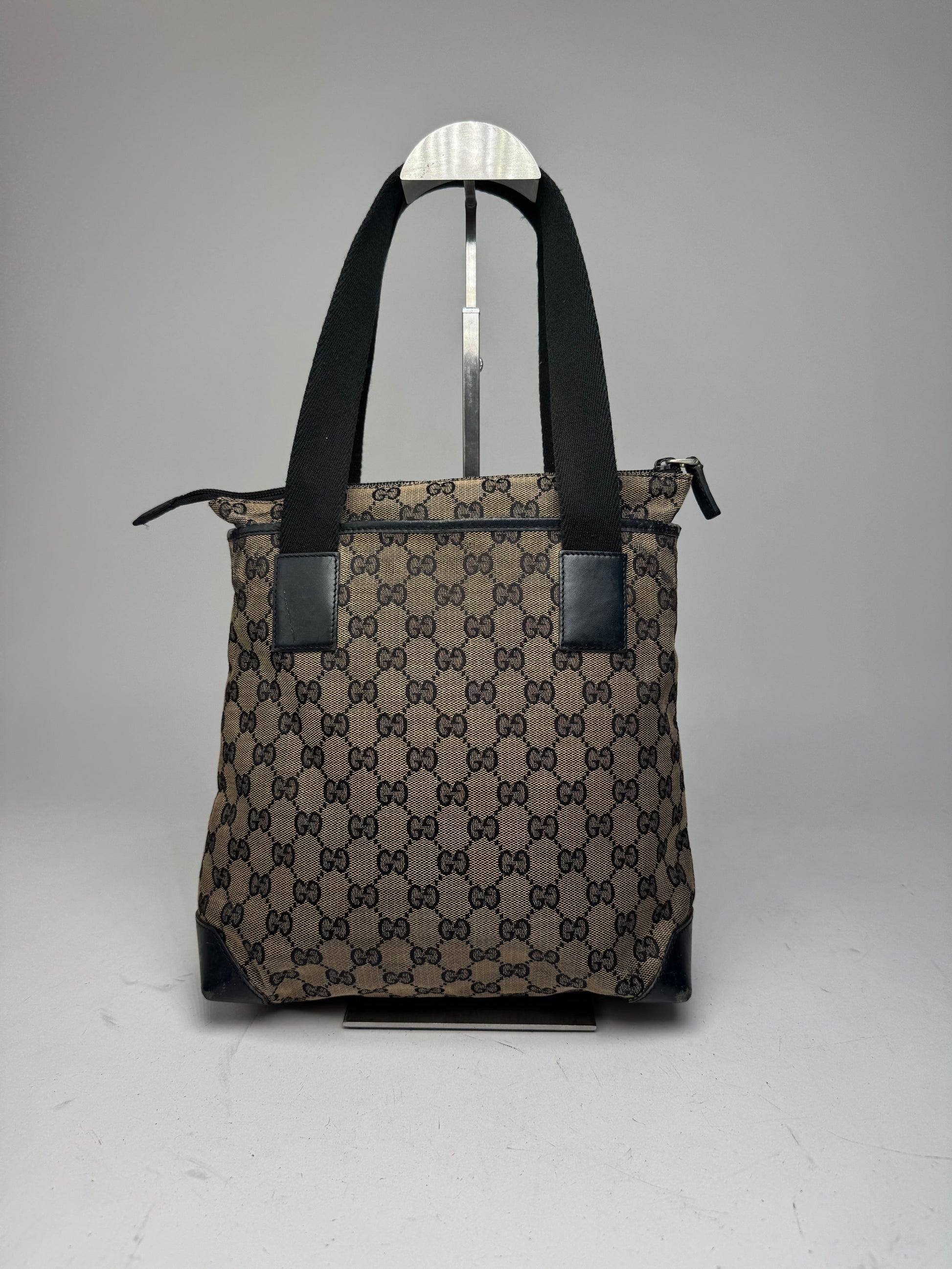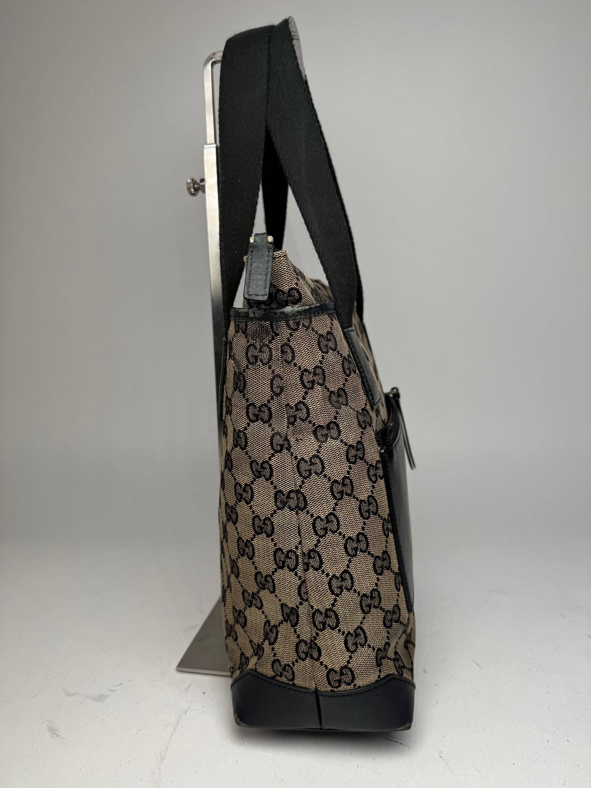Vintage Gucci Monogram Leather Canvas Bag beige brown black