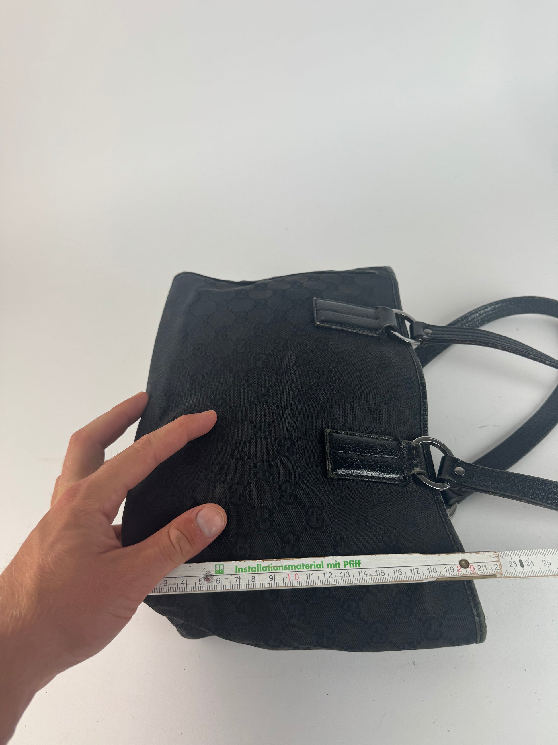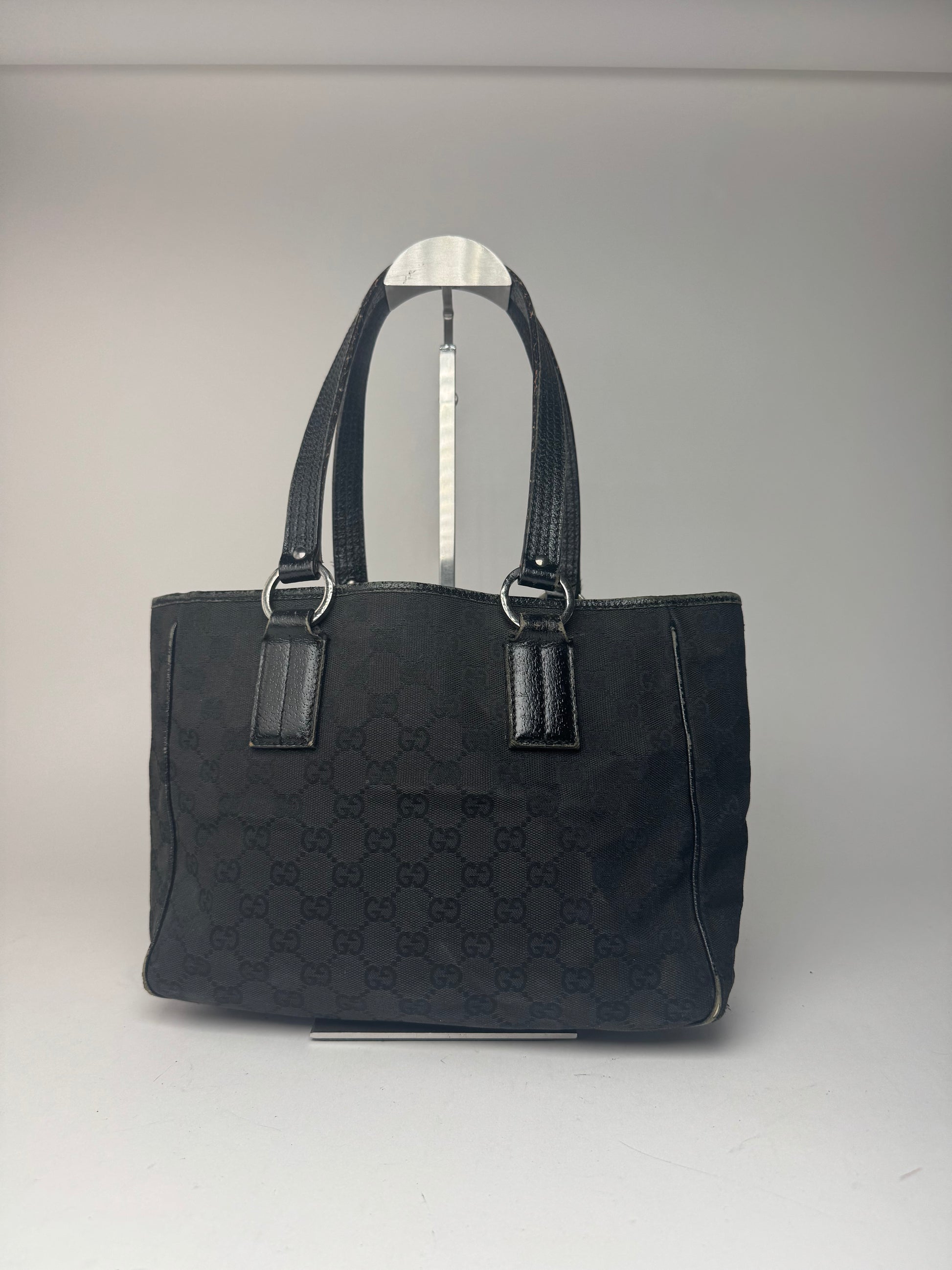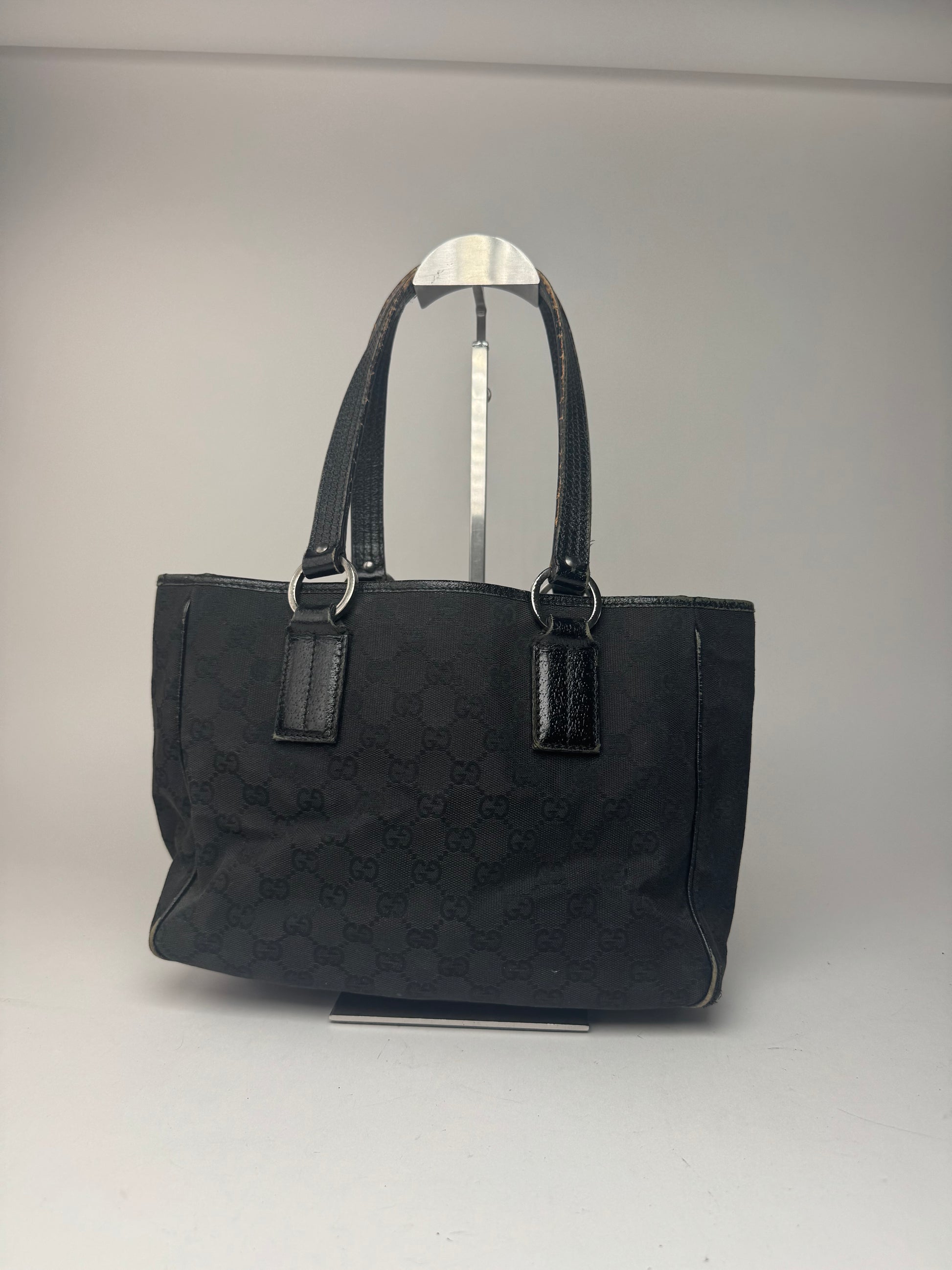 Vintage Gucci Monogram Leather canvas tote bag black