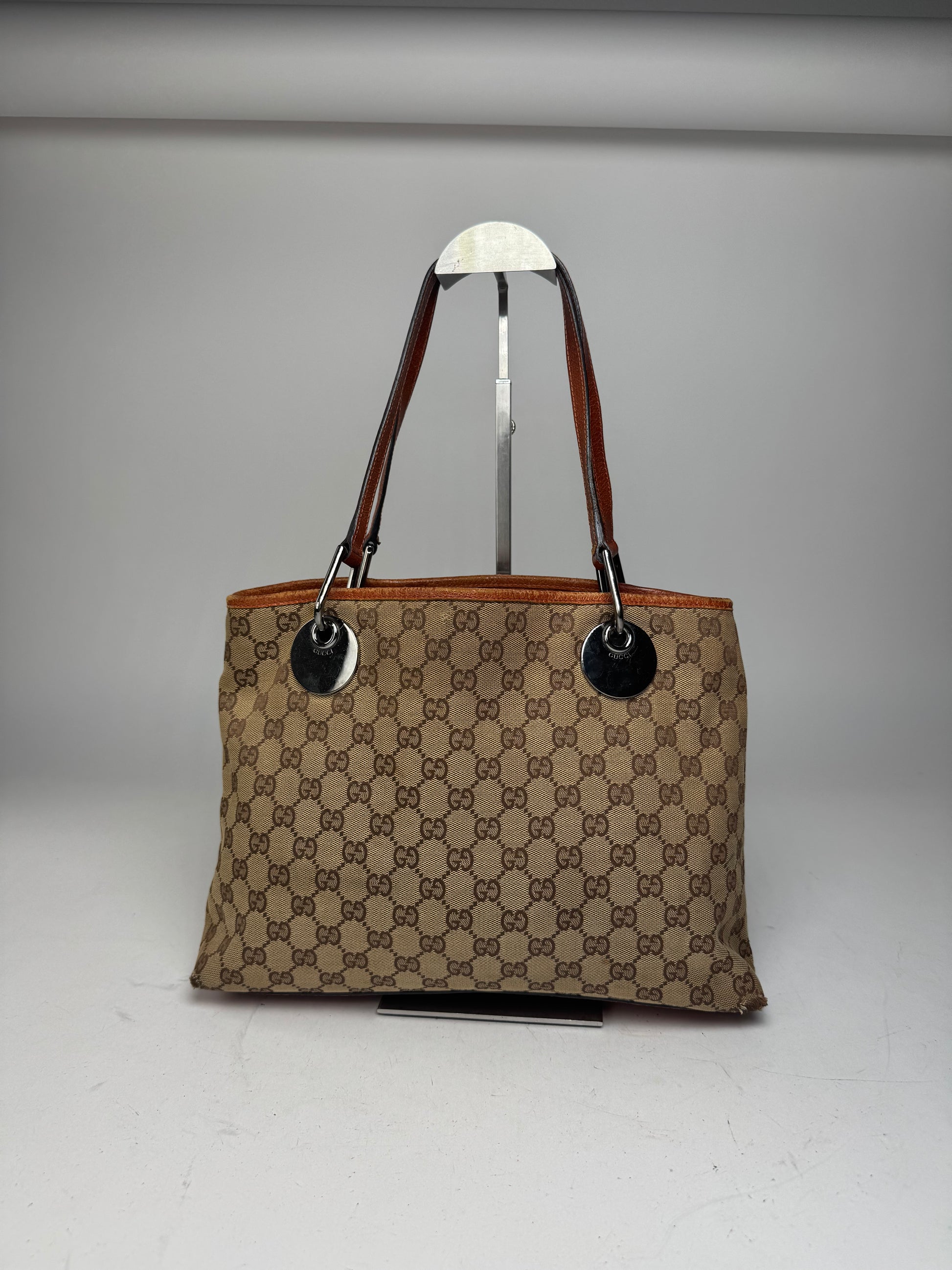 Vintage Gucci Monogram Leather Canvas Tote Beige Orange