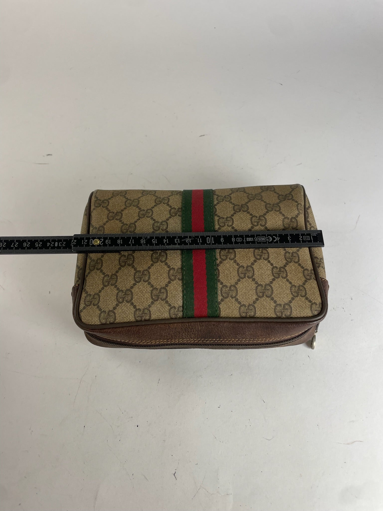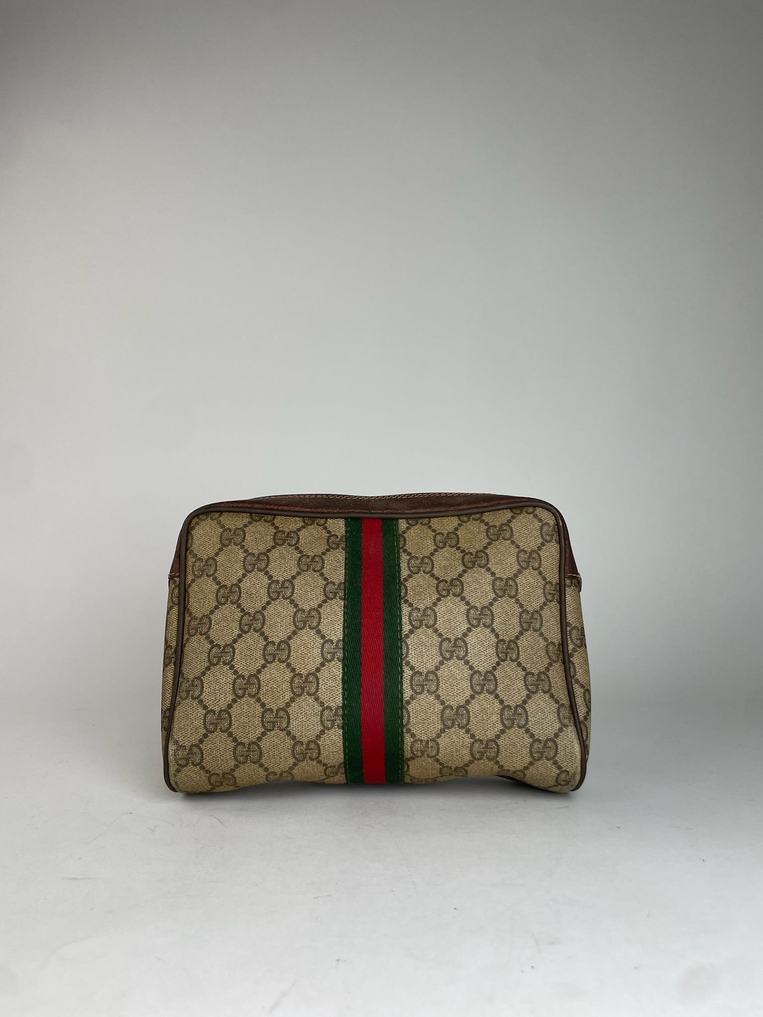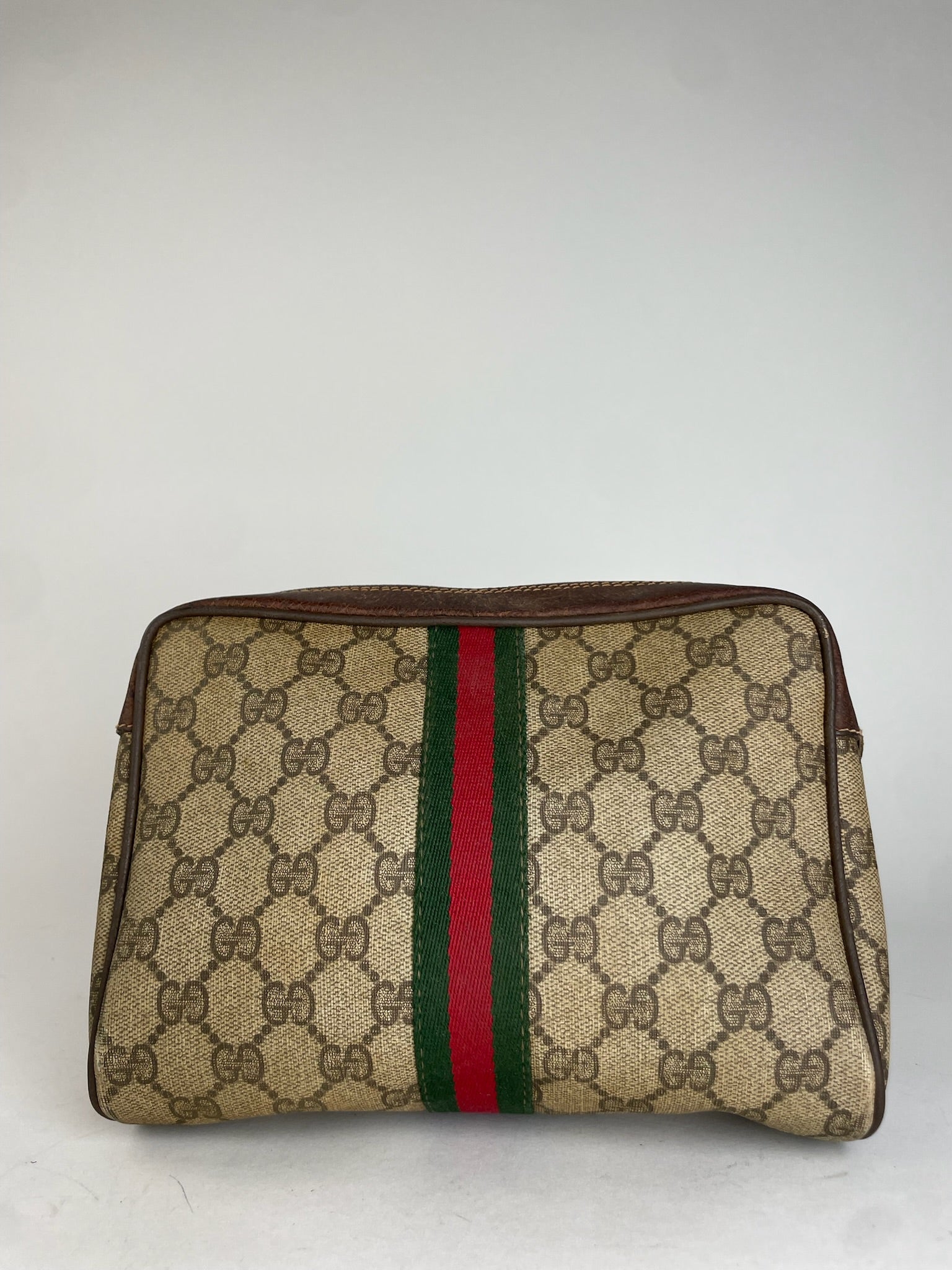 Vintage Gucci monogram Leather Clutch Grey Brown