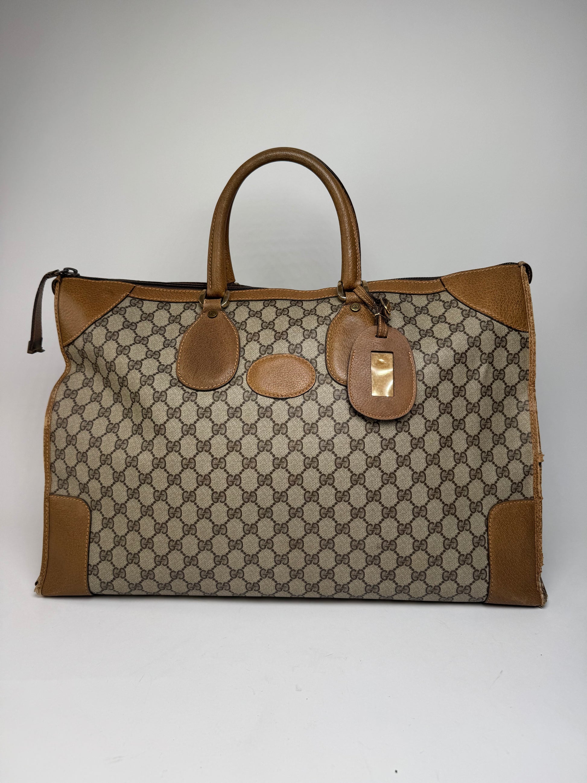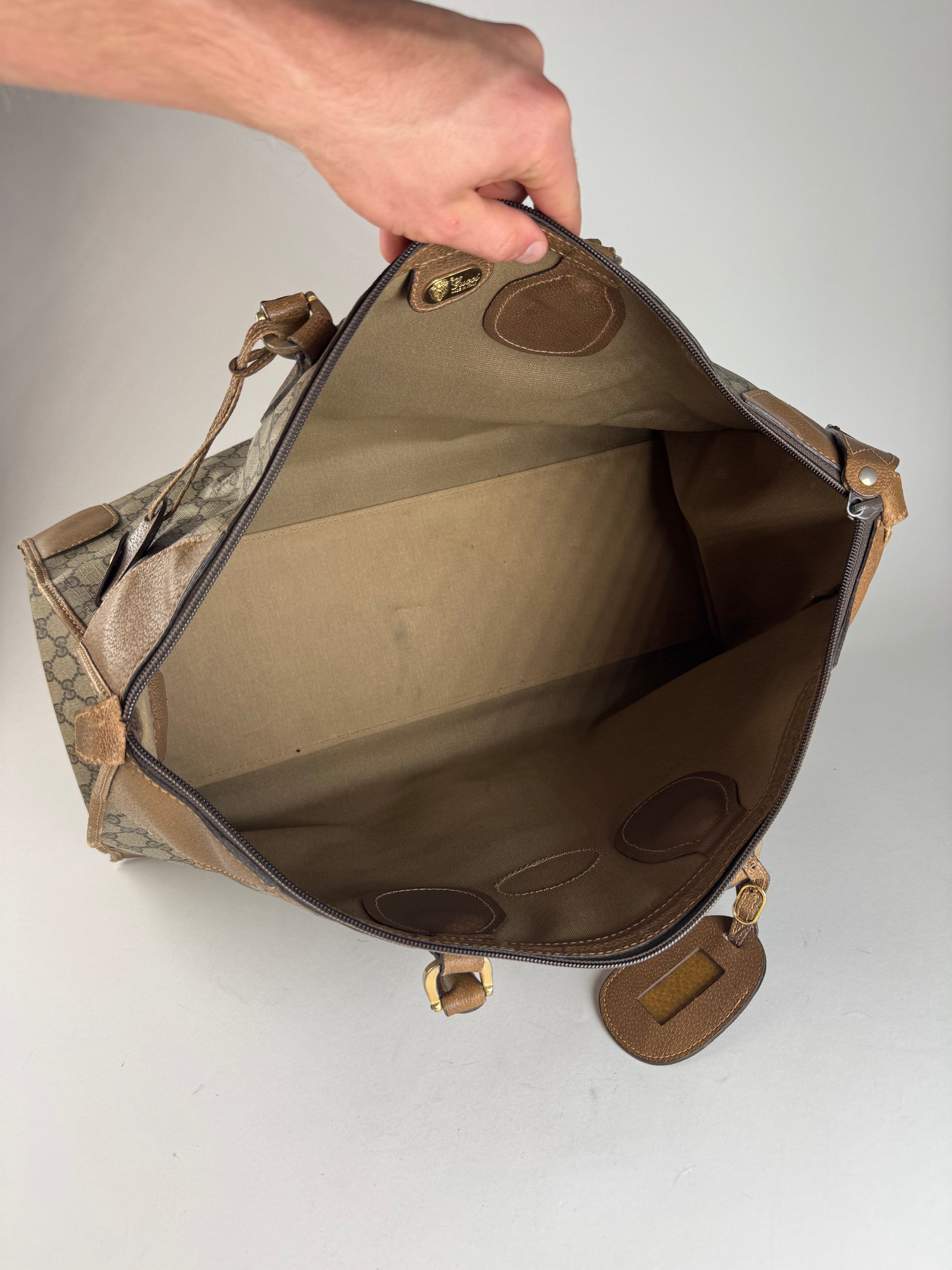 Vintage Gucci Monogram Leather Weekender Grey Brown