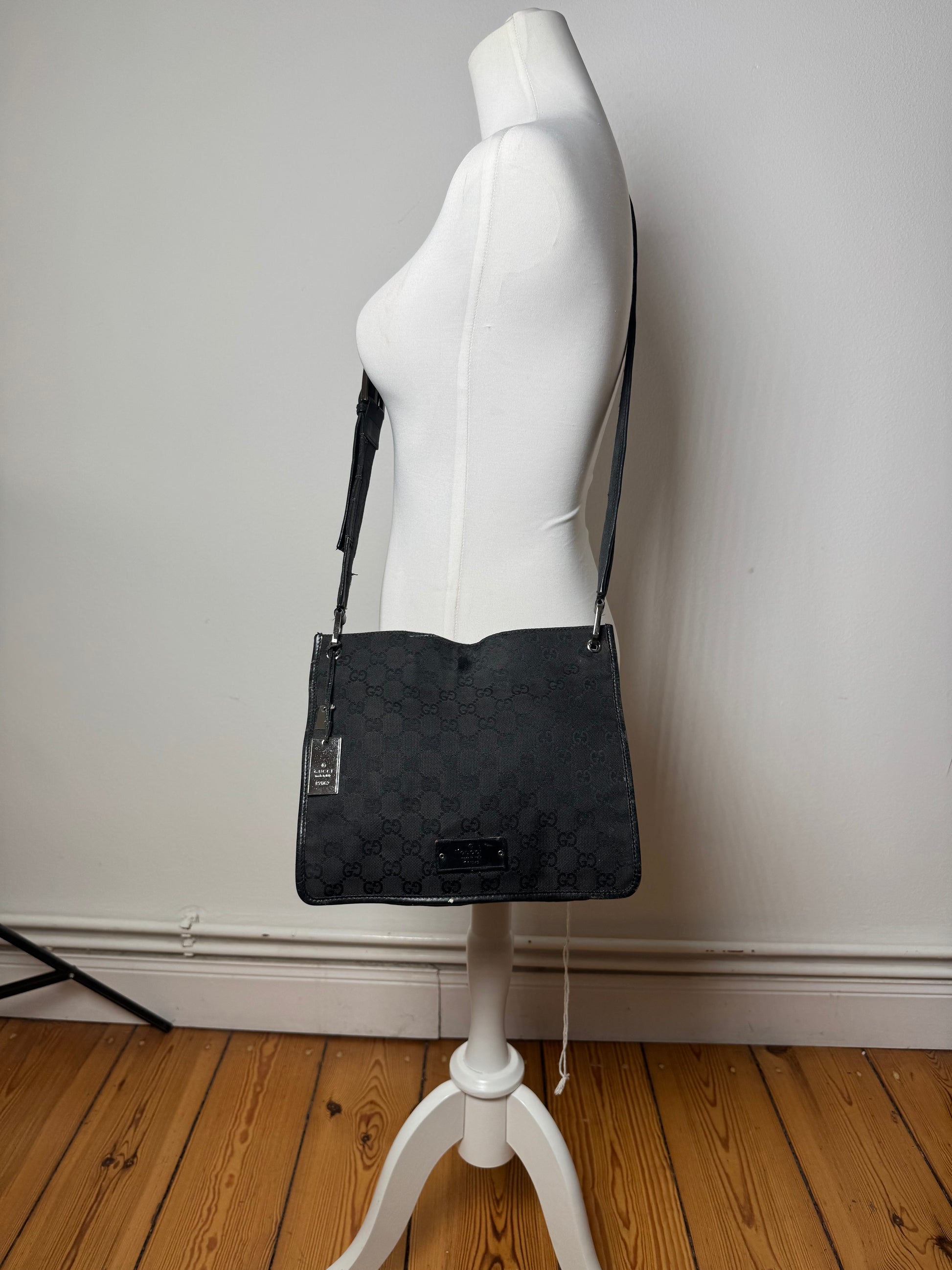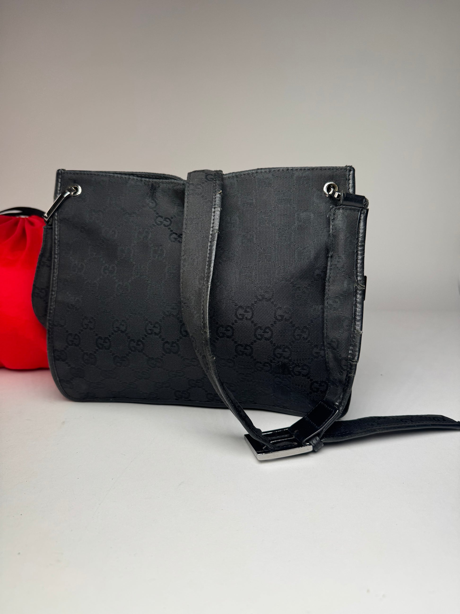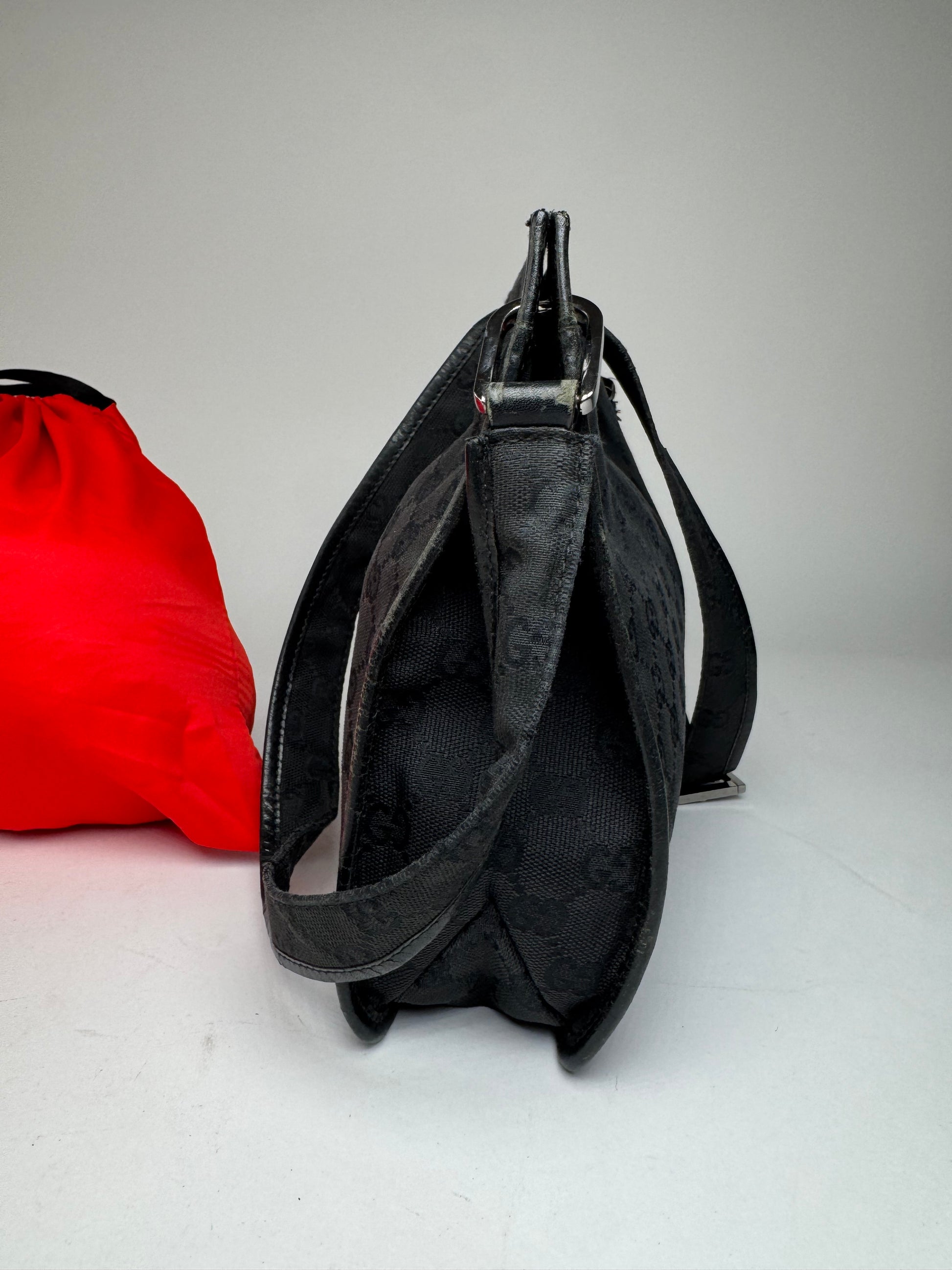 Vintage Gucci Monogram Shoulder Bag Black