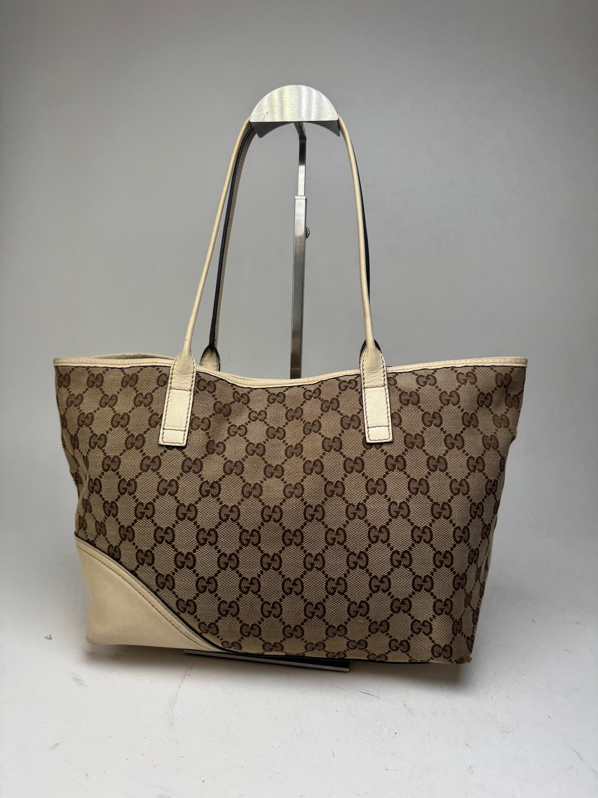 GUCCI Vintage Beige Monogram Canvas Tote Bag