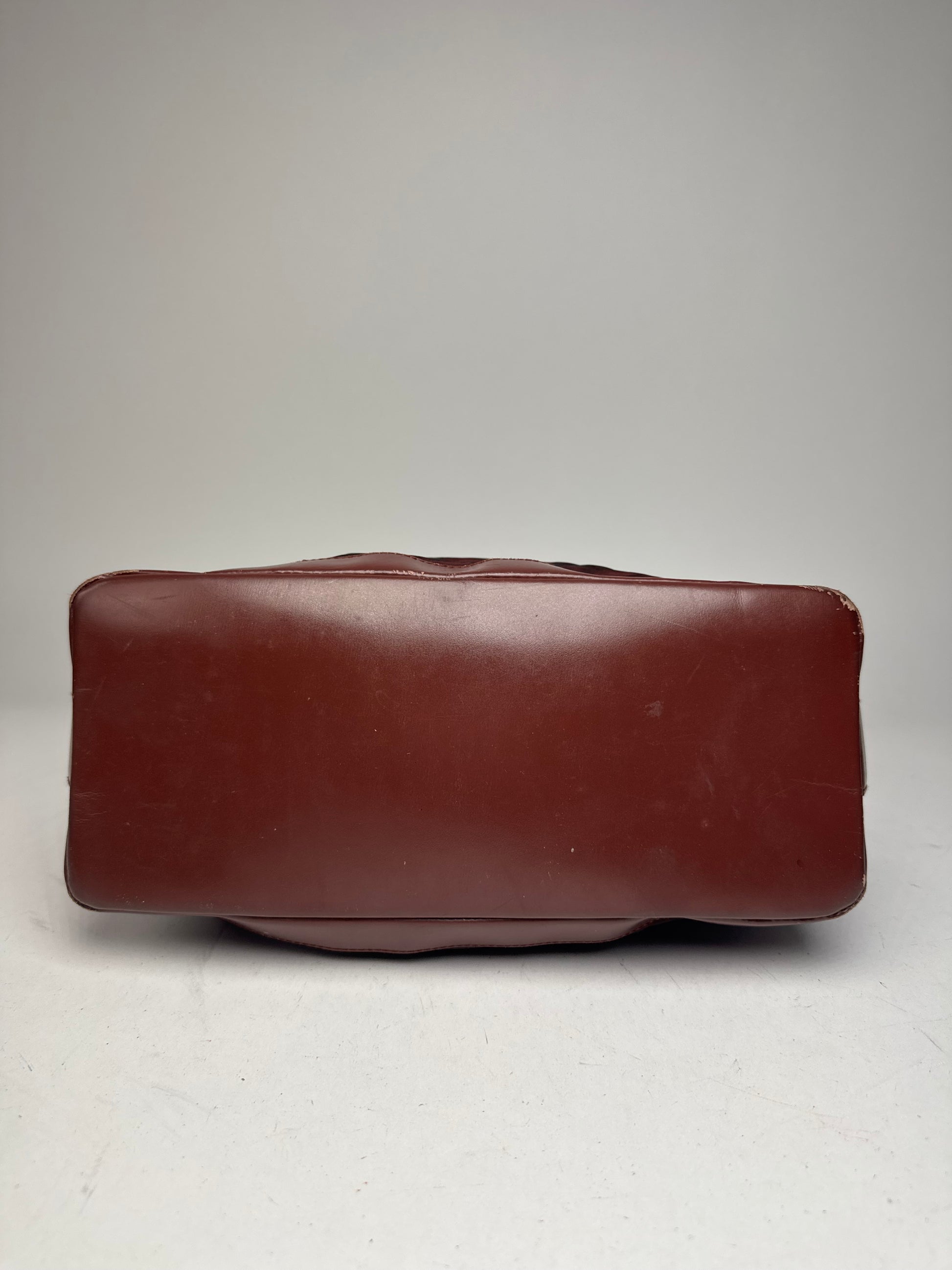 The material shows visible wrinkling that may be improved with gentle steaming. Otherwise, the bag remains in good vintage condition with light scratches and scuffs.