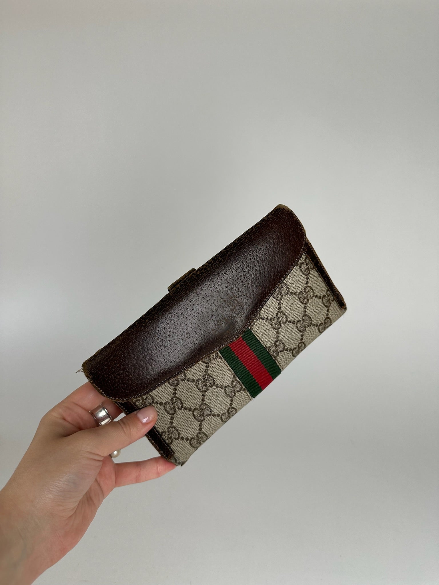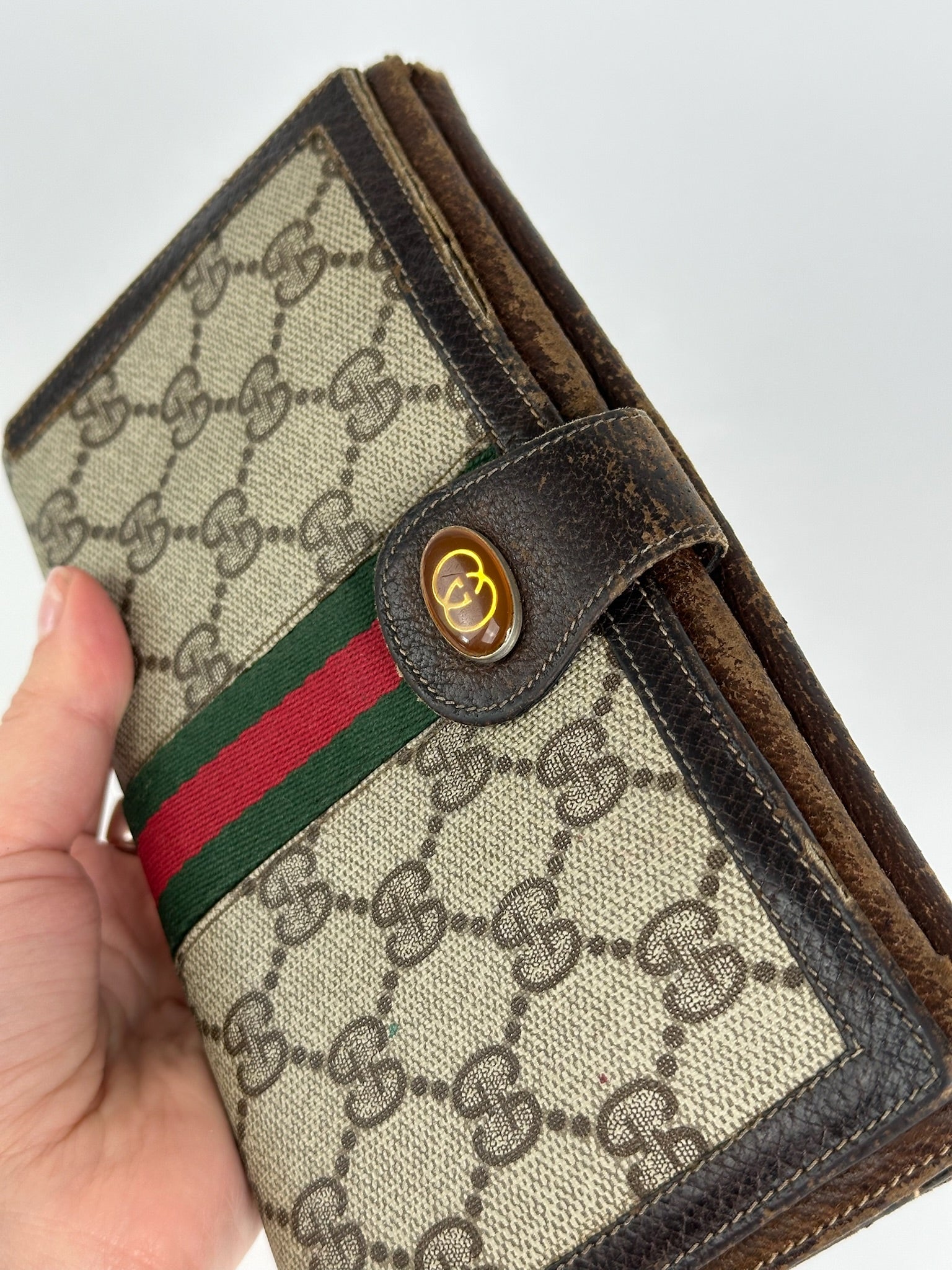 Vintage Gucci Ophida Leather Wallet Gray Brown