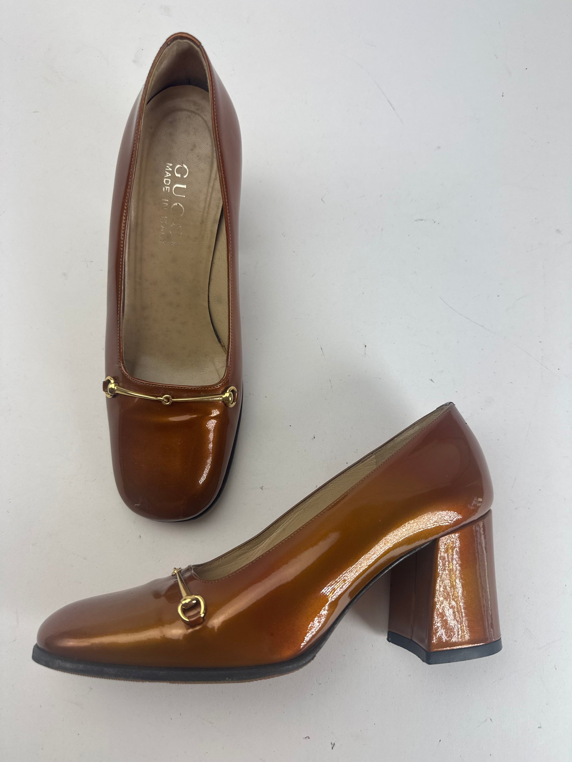 Vintage Gucci Patent Leather horsebit Pumps Brown