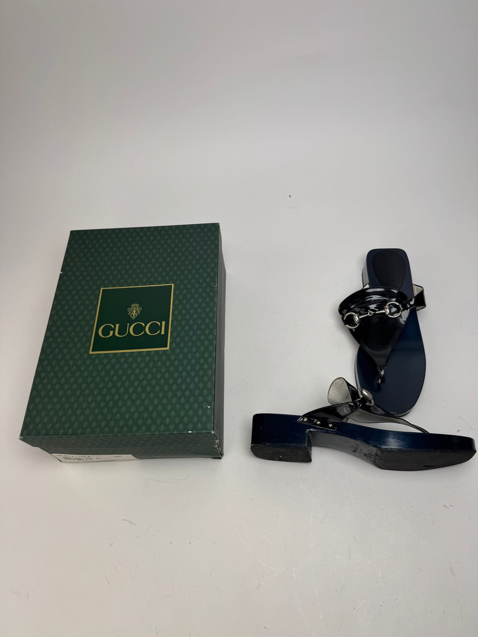Vintage Gucci Patent Leather Horsebit Sandals Black EU38