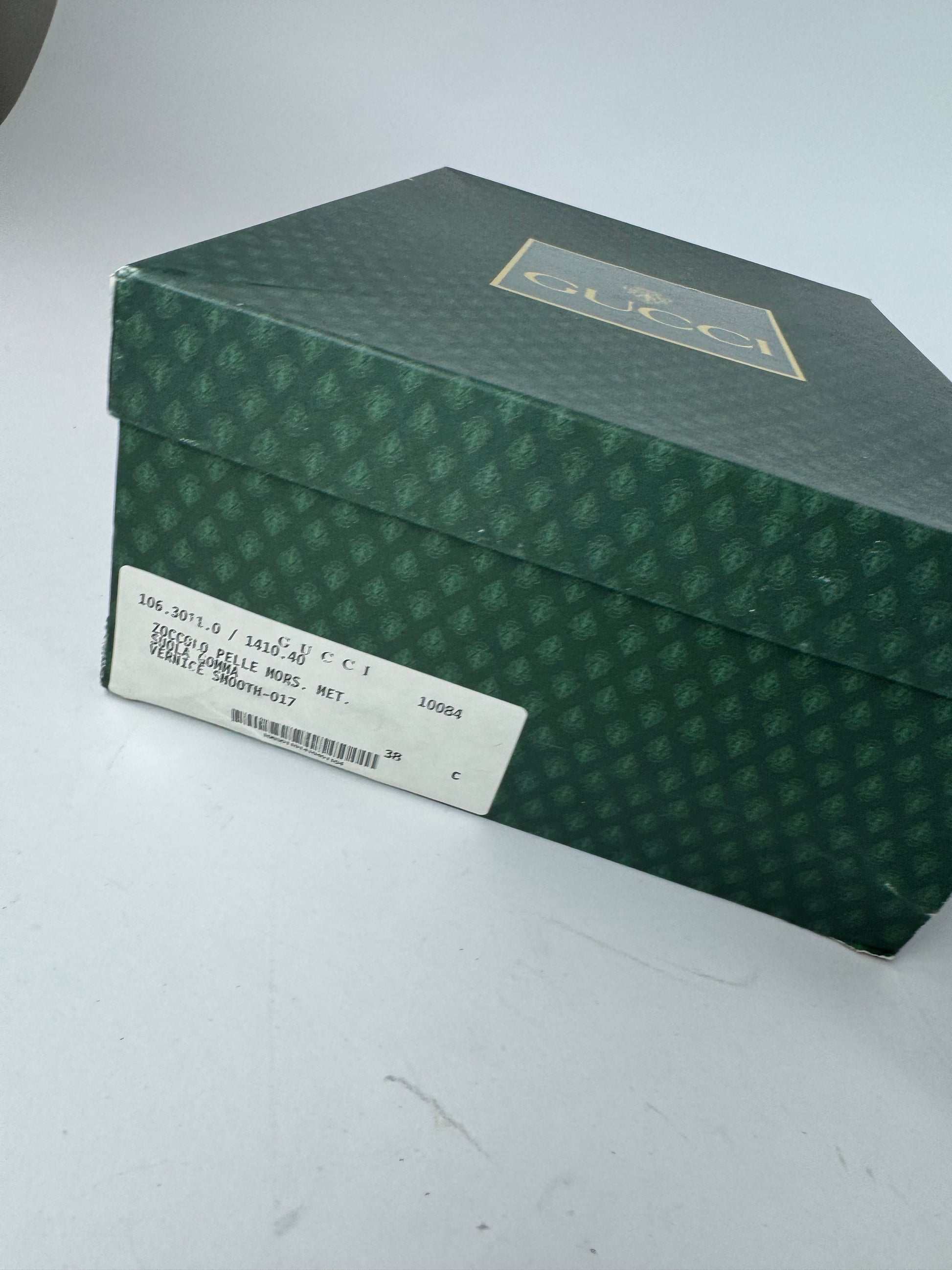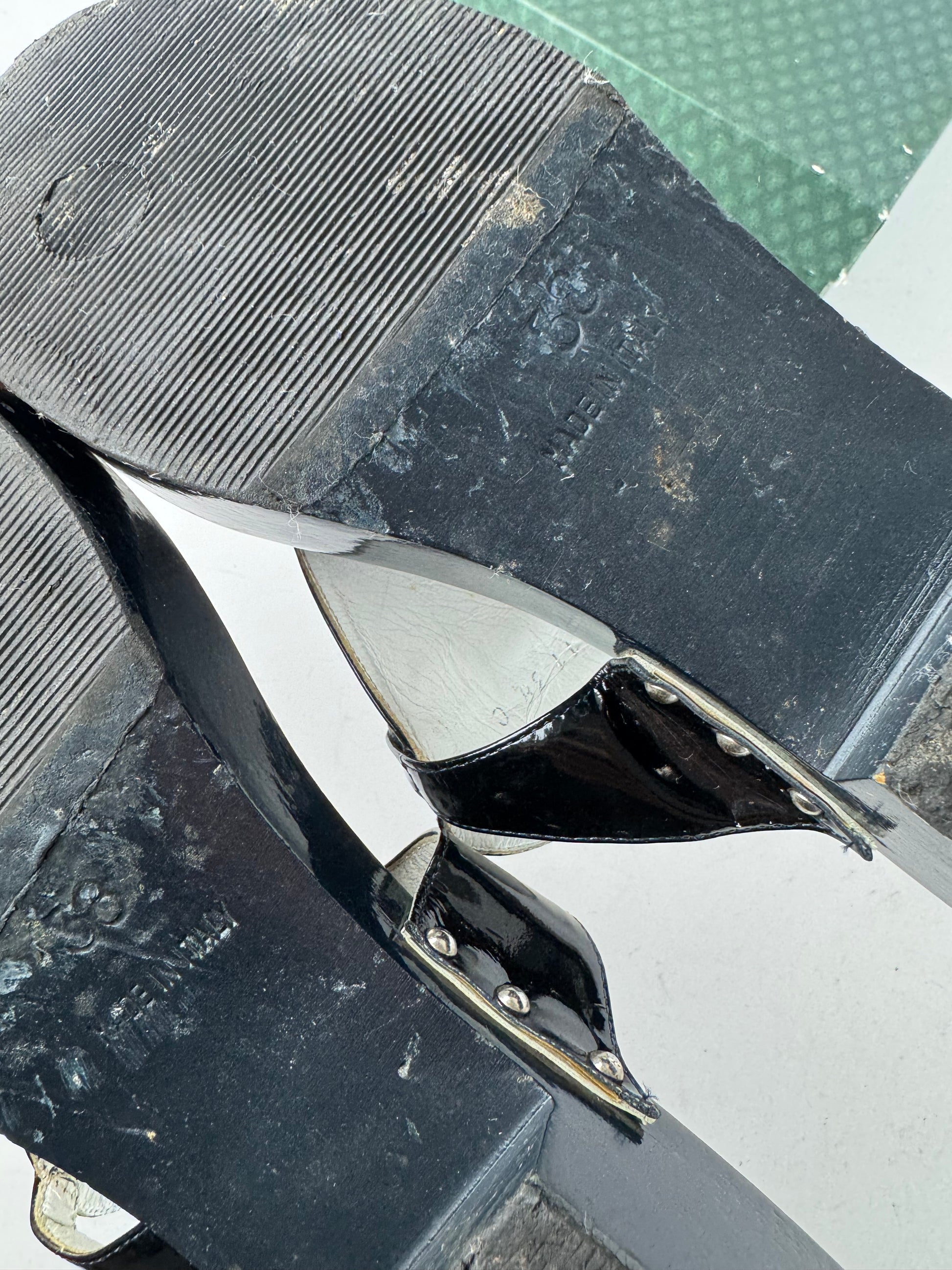 Condition Details: The patent leather shows some material damage on the front. The sole shows signs of wear consistent with use. Overall condition remains very good considering age.