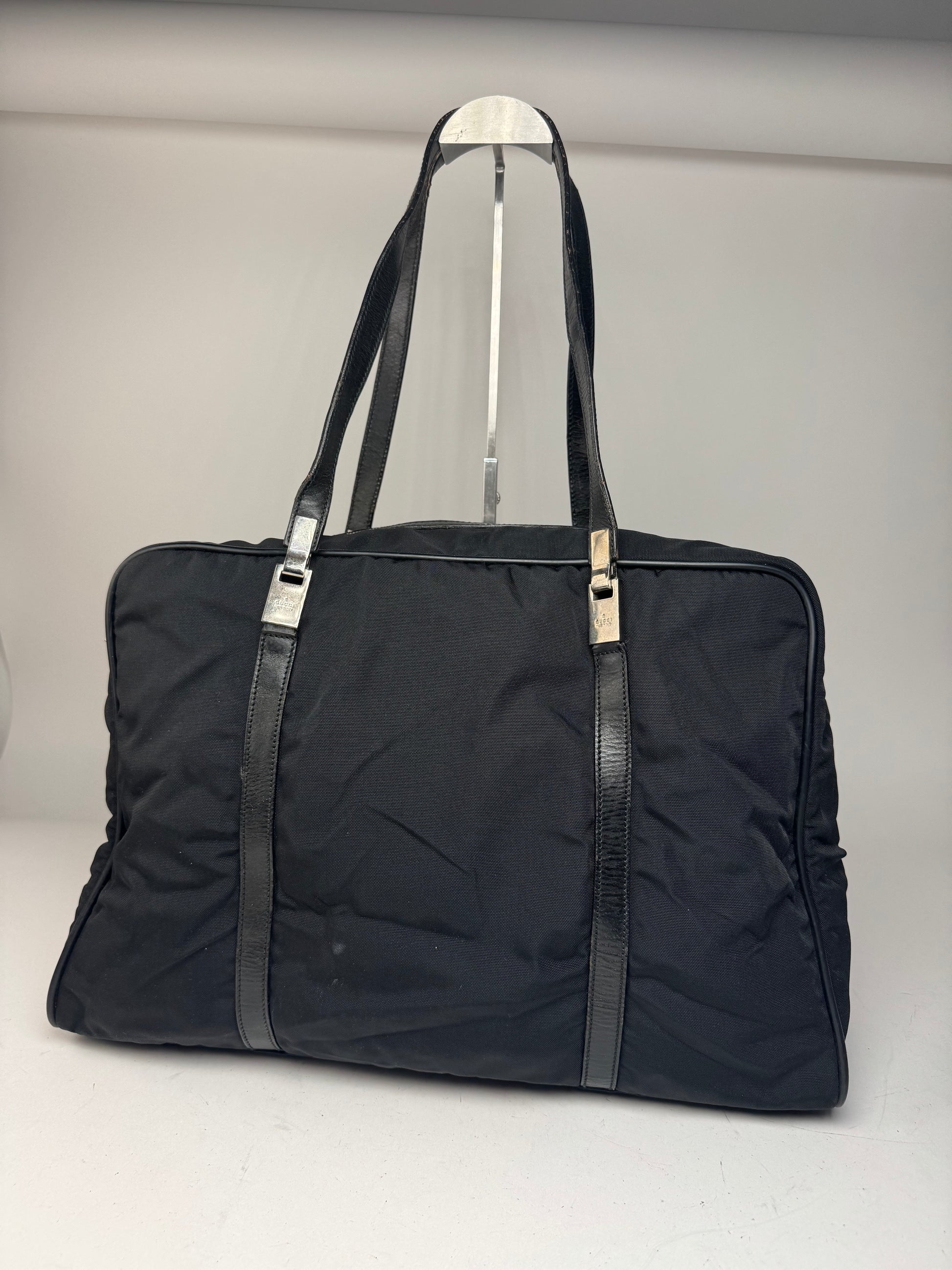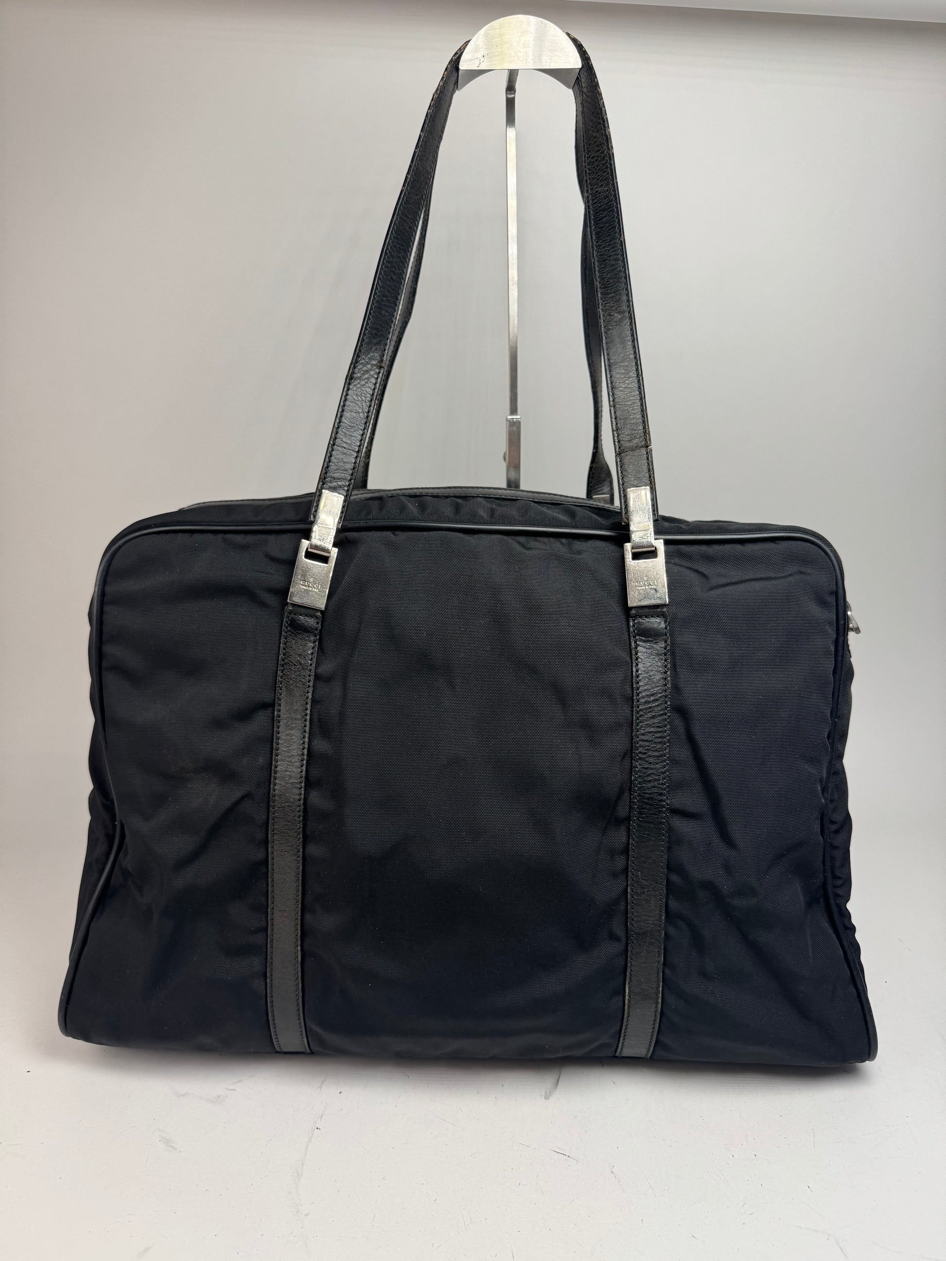 Vintage Gucci Polyester Leather Duffel Bag / Weekender Black