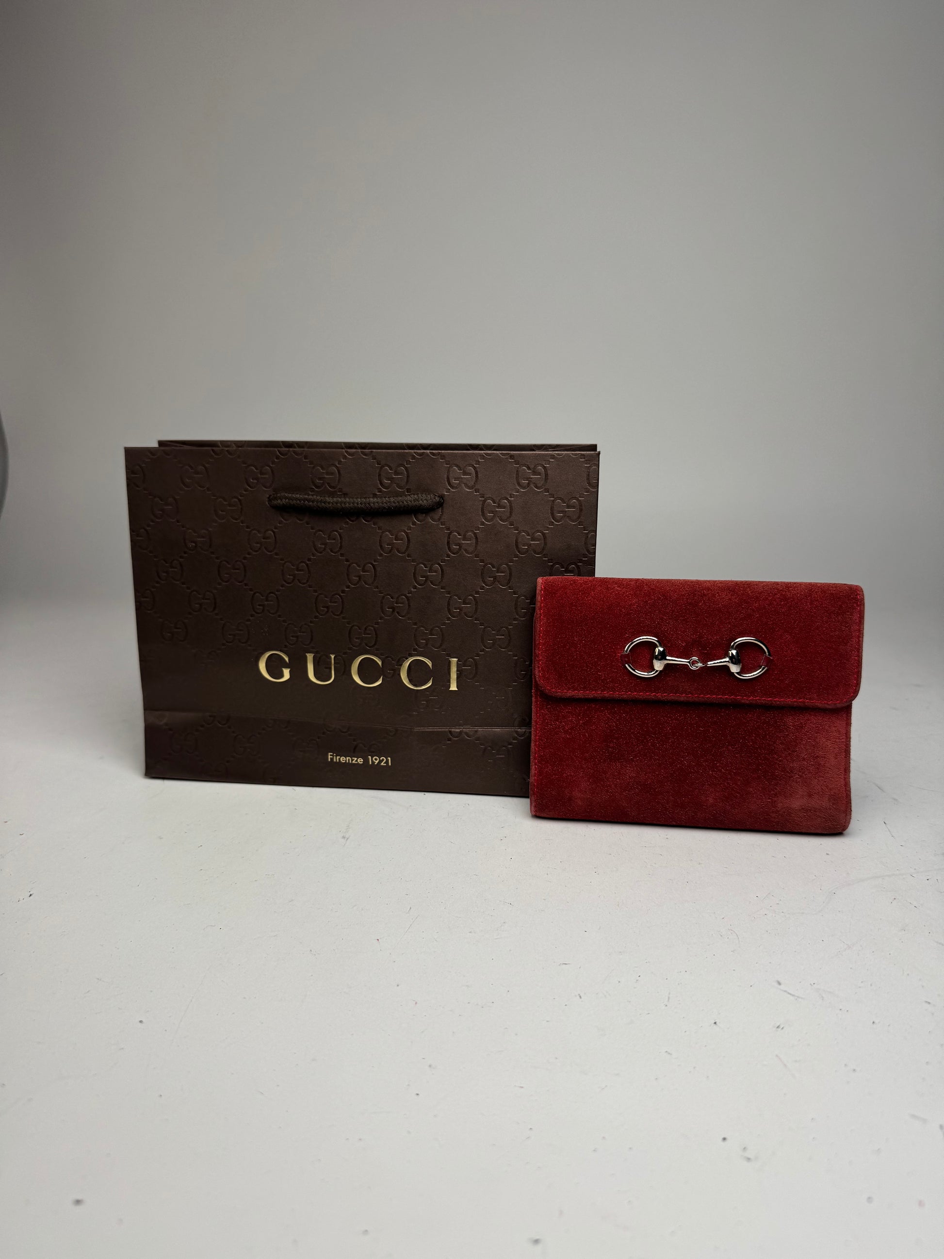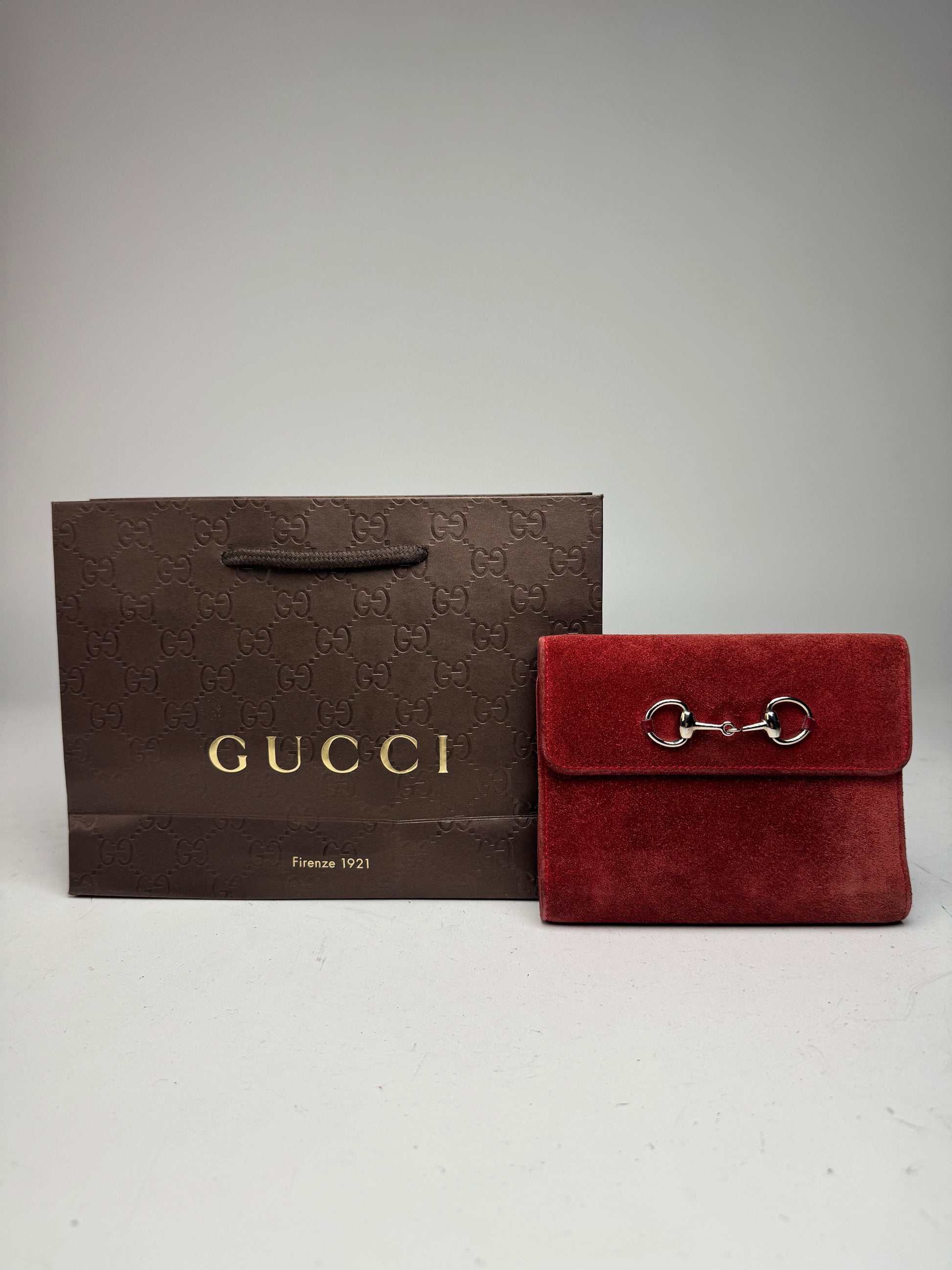 Vintage Gucci Suede & Patent Leather Horsebit Organizer / Wallet Red