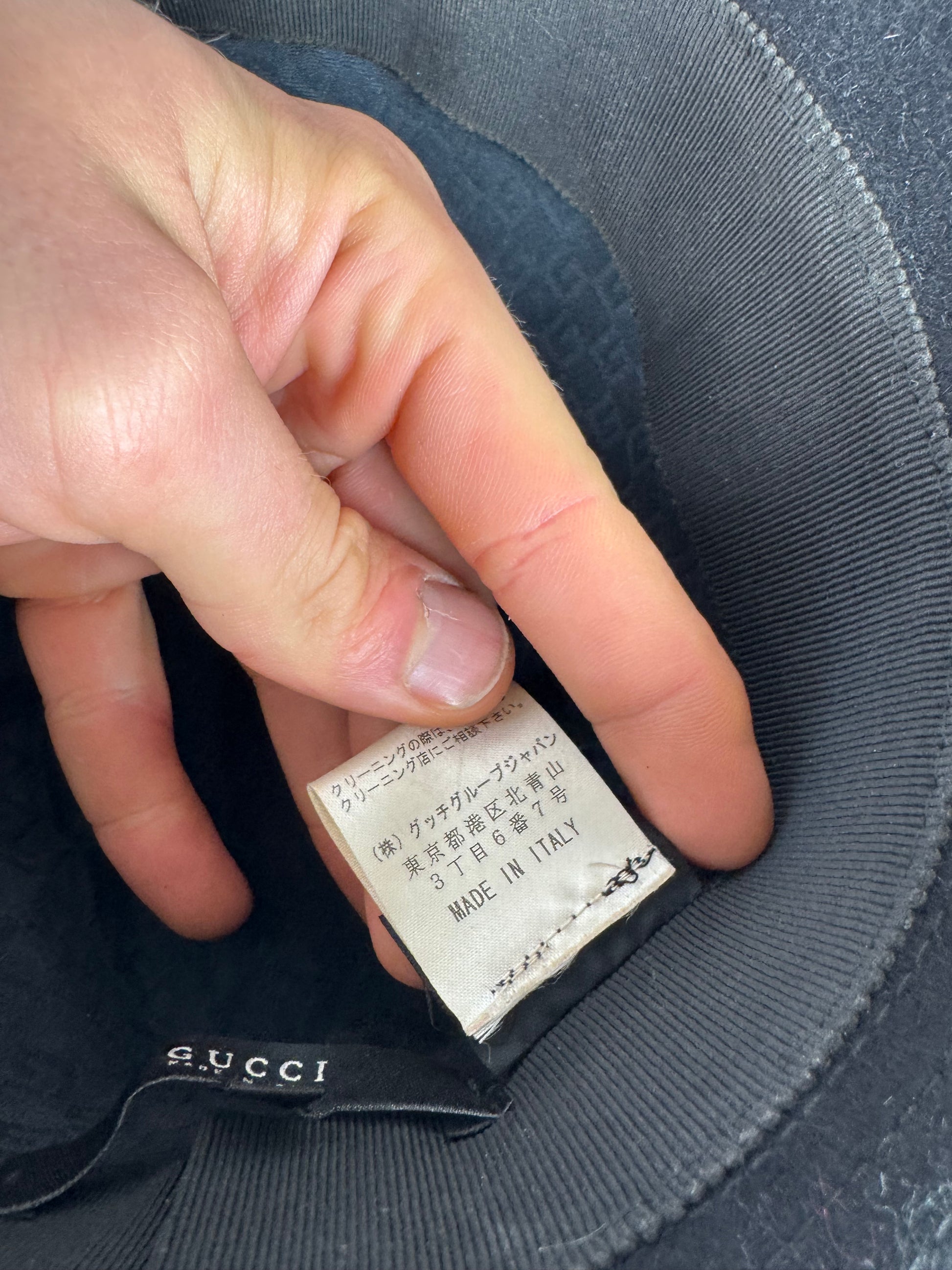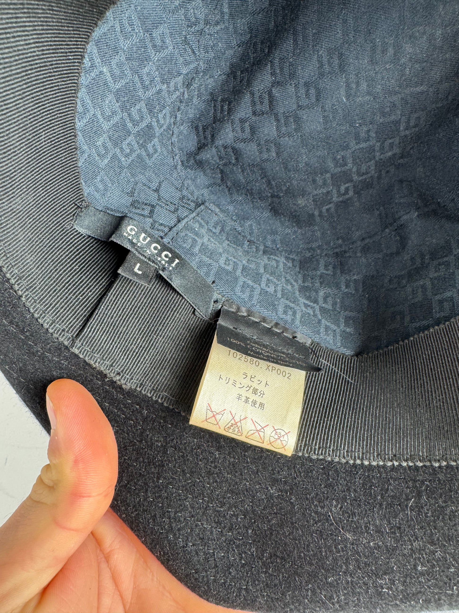 This vintage Gucci hat is crafted from black wool, featuring a timeless and elegant design. The interior lining is made from black canvas with the iconic Gucci monogram, adding a signature touch. The unisex design makes it a versatile and stylish accessory.