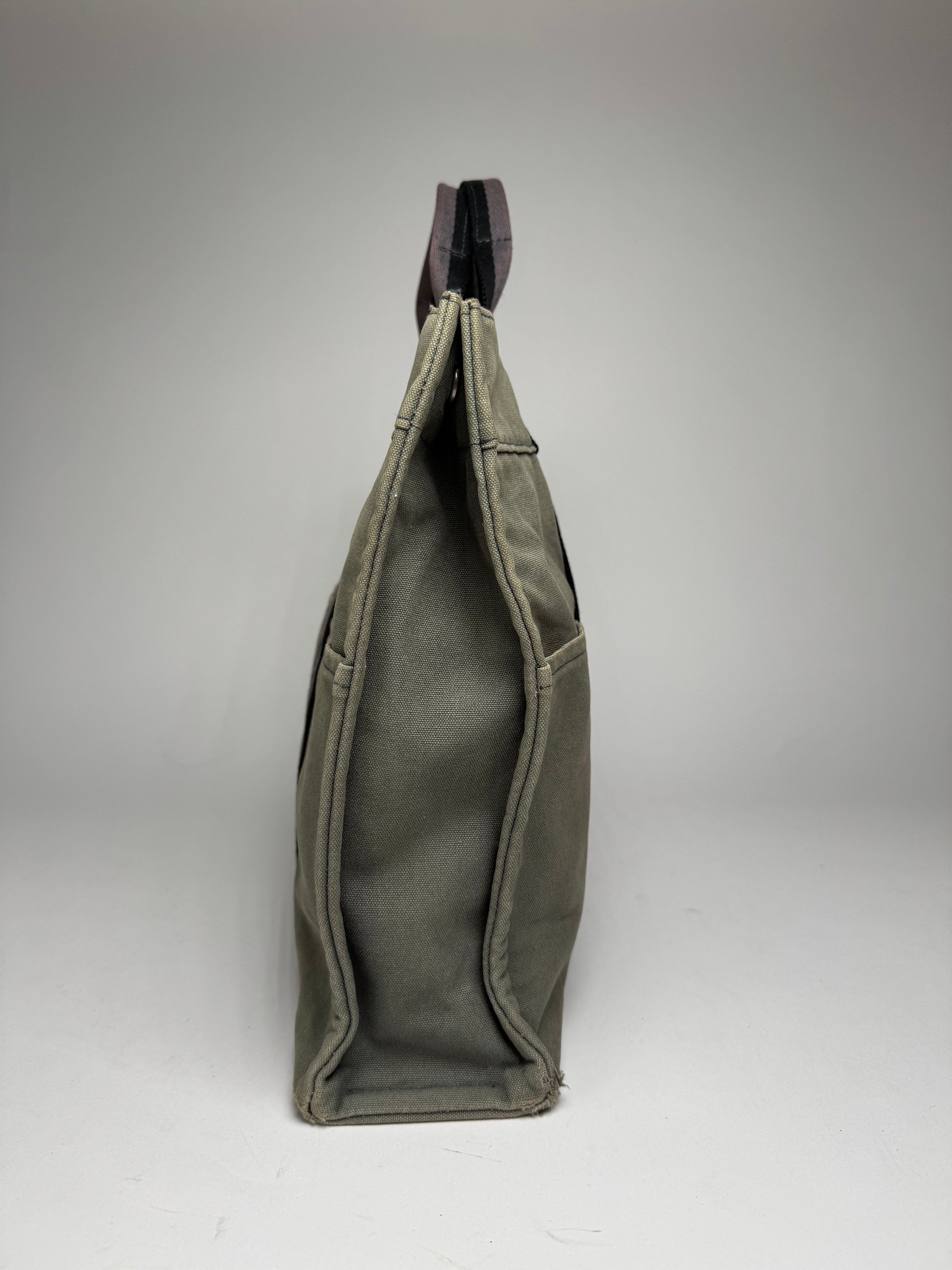 Condition Details: The canvas shows minor stains and scuffs but remains in excellent overall condition. The hardware is bright with slight signs of wear. The interior is clean with minimal signs of use.