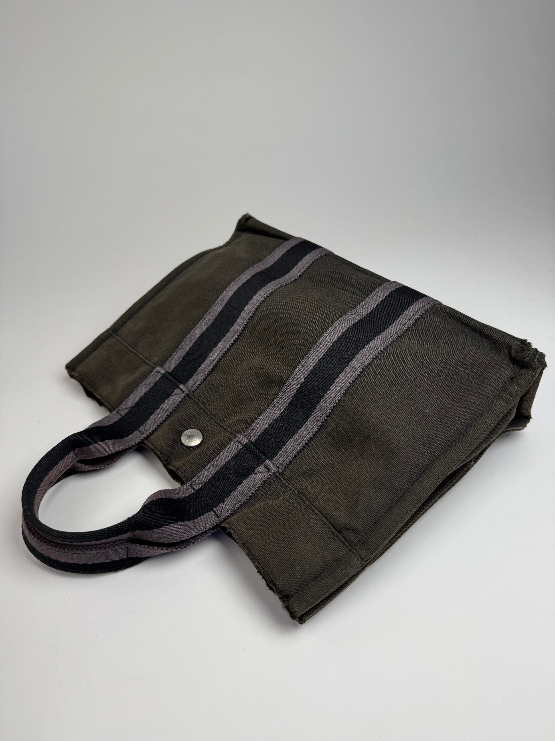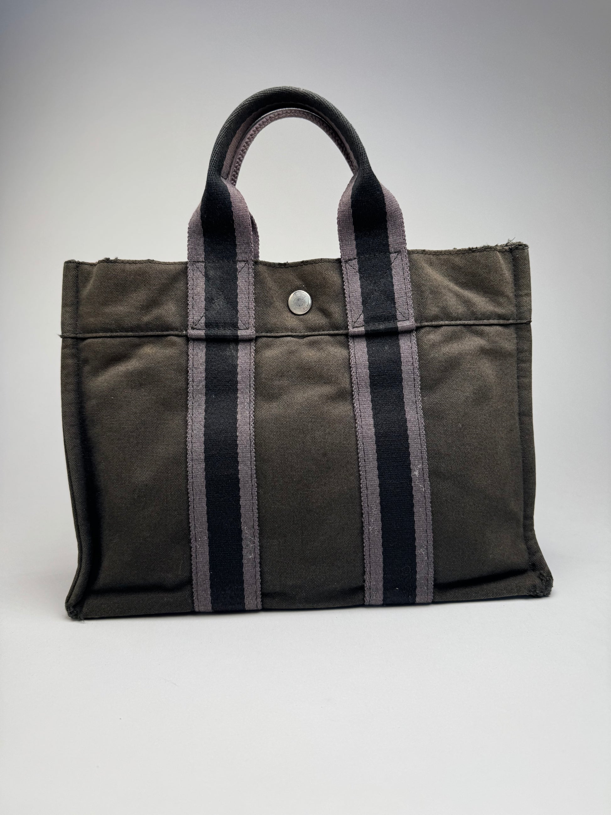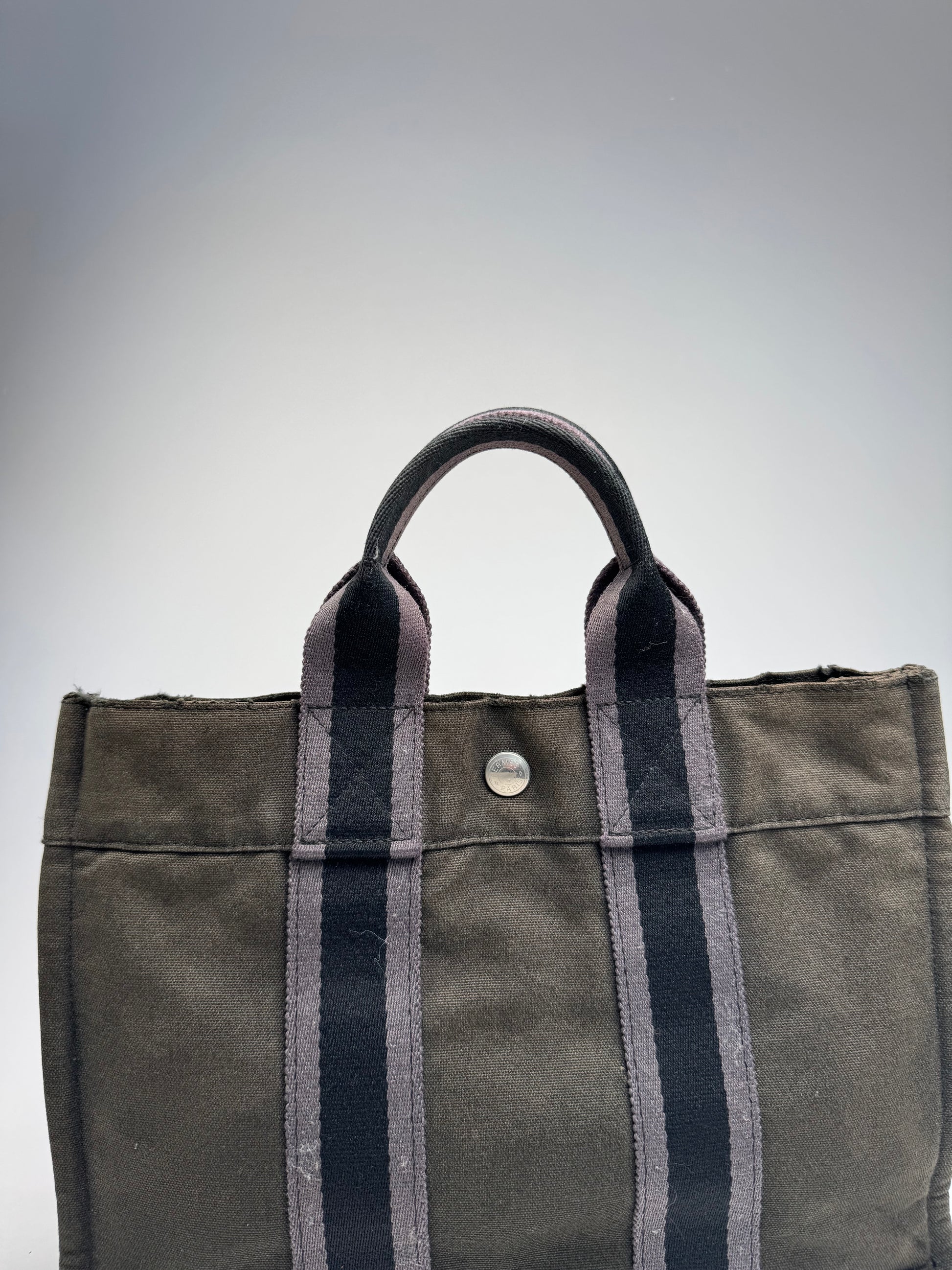 Vintage Hermes Paris Canvas Shopper Grey/Brown