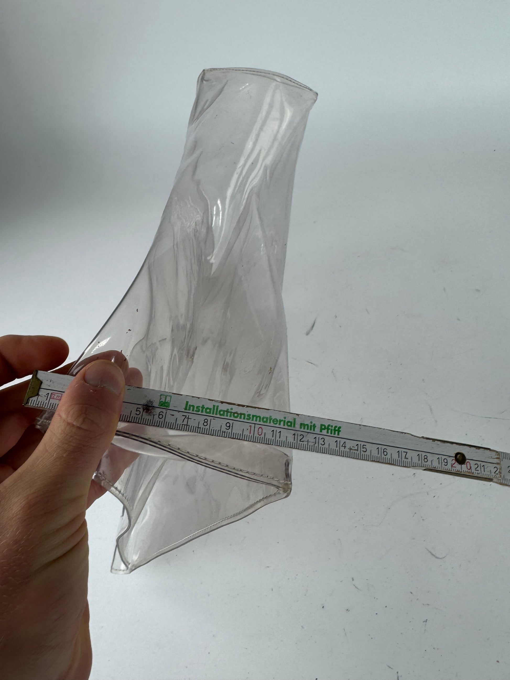 Condition Details: The bag shows light scratches and small surface marks consistent with age. The turn-lock closure is damaged, but the structure and overall condition remain very good for its age. The transparency and printed lettering are well-preserved.