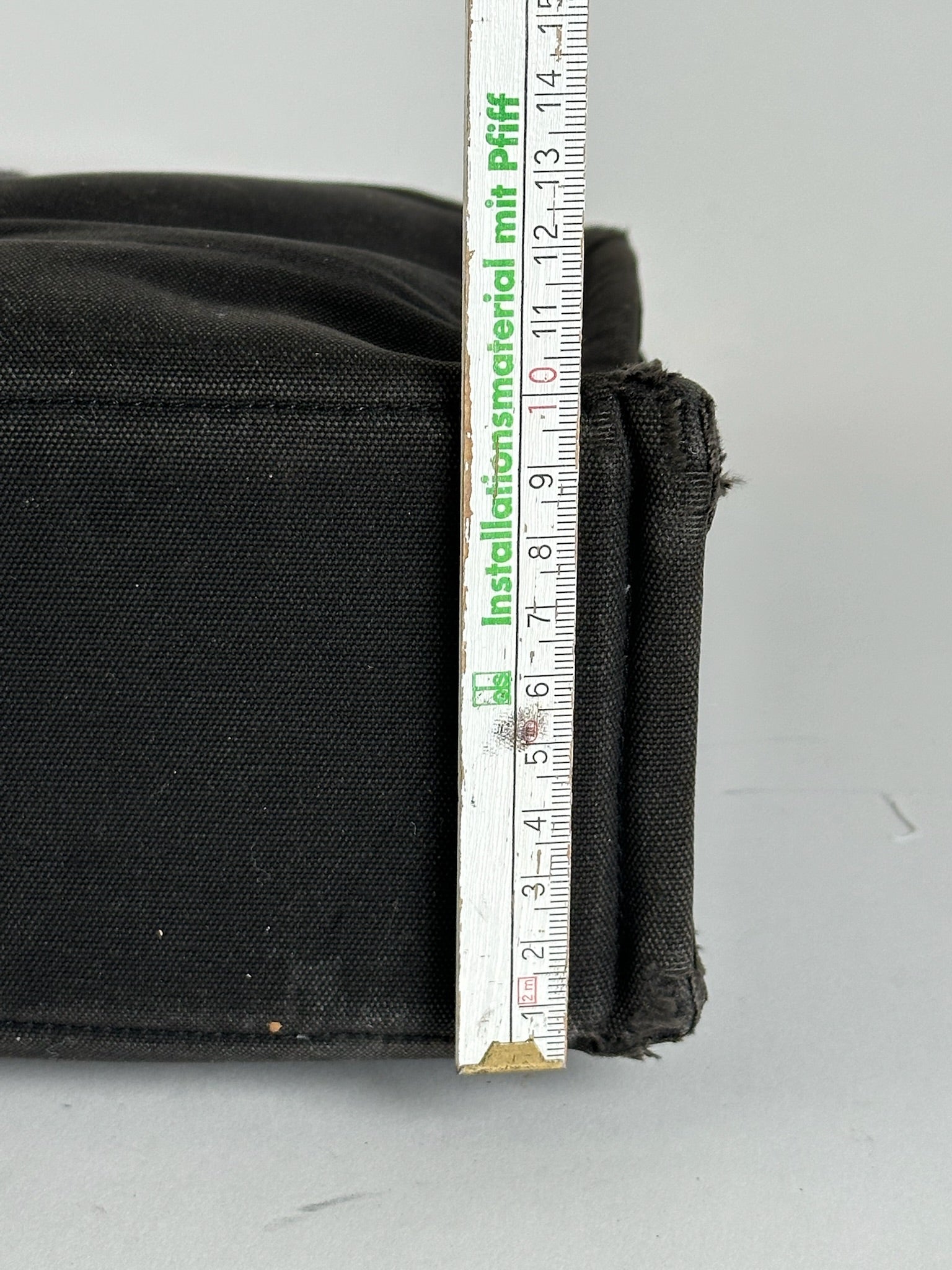 Condition Details: The canvas shows light staining and some wear at the corners, but overall remains in very good condition. The hardware is clean with minimal signs of use.