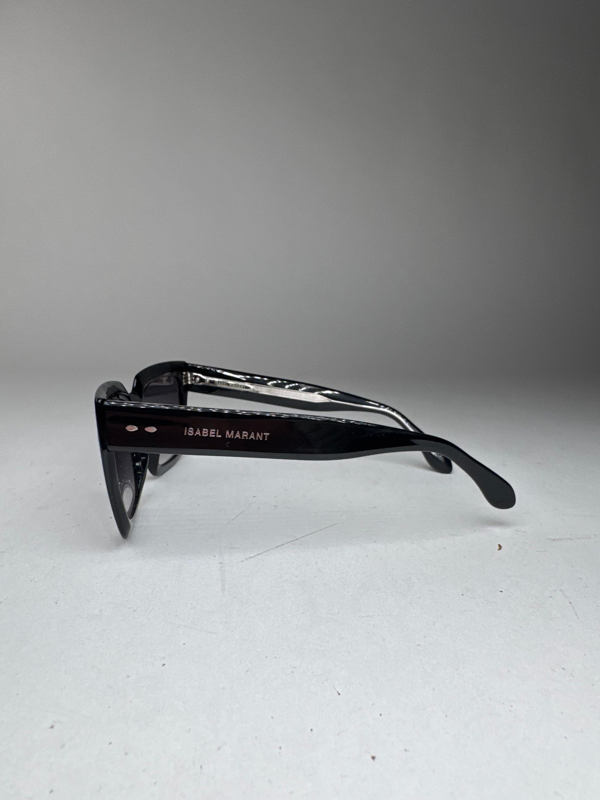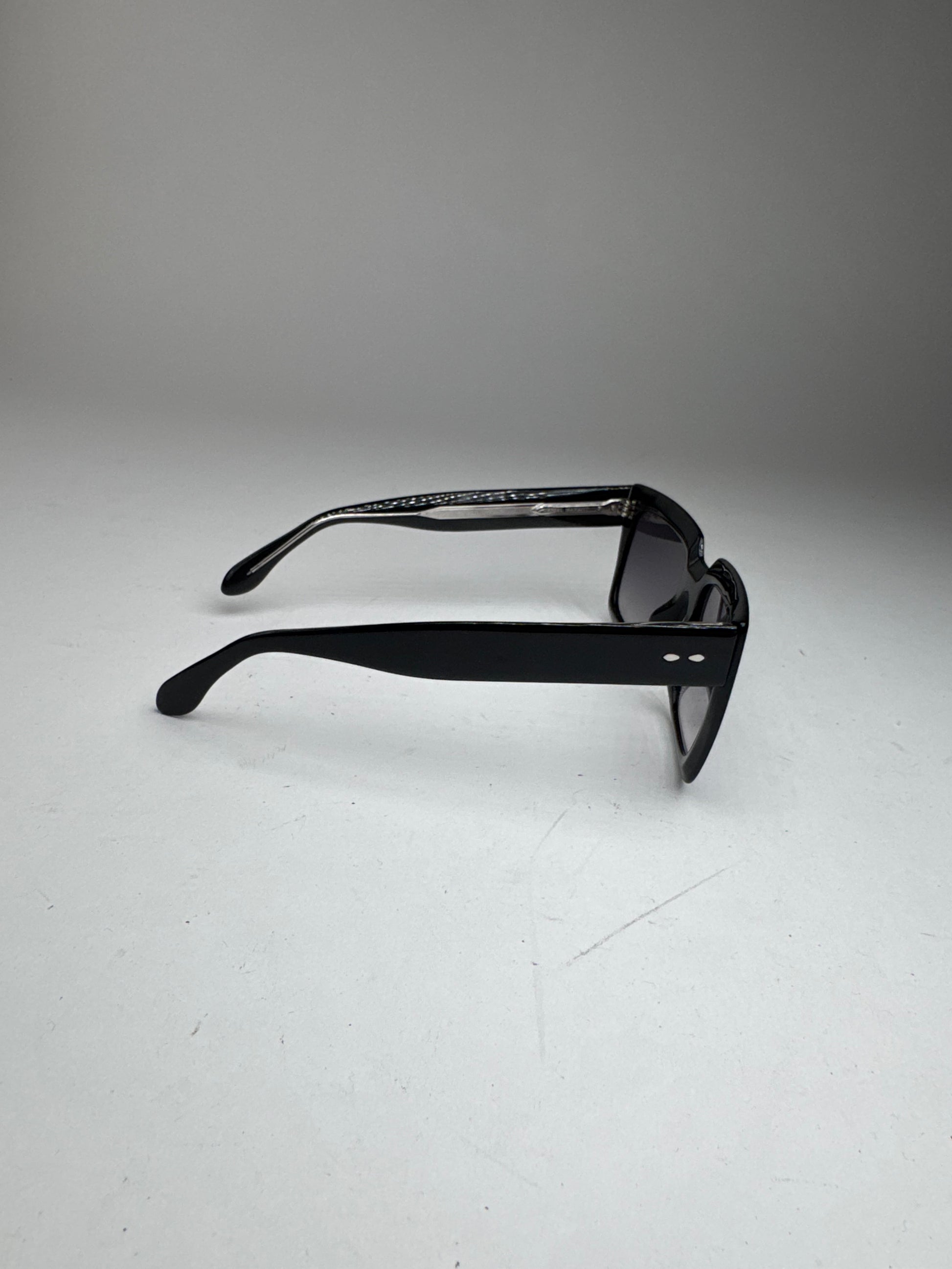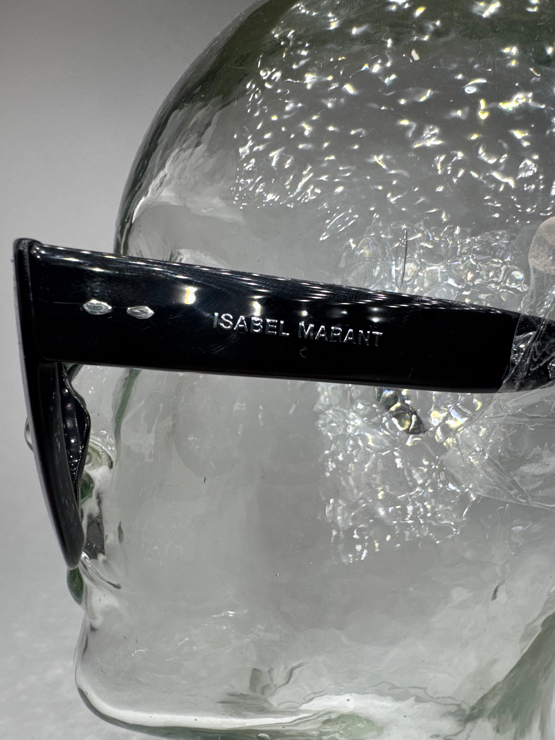 ISABEL MARANT Black Classic Sunglasses. These timeless unisex sunglasses are crafted from smooth black acetate. The left temple features the discreet Isabel Marant logo script. The lenses are dark tinted and offer a minimalist yet refined look.