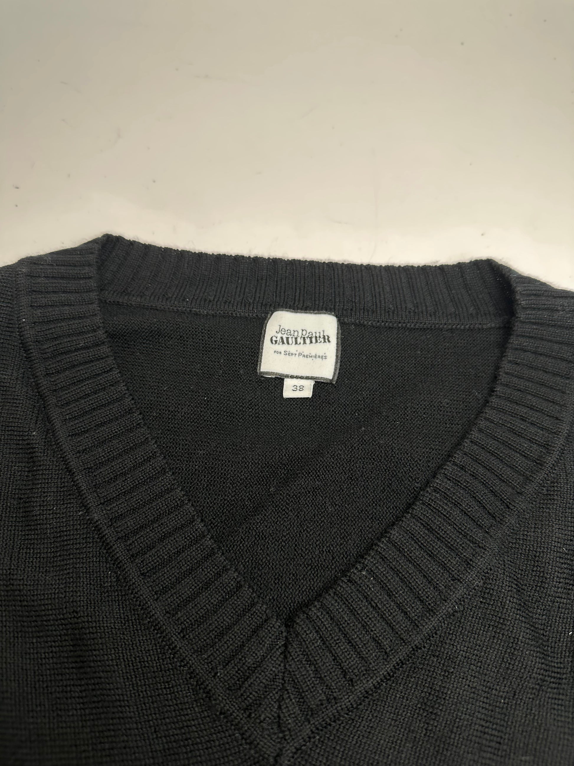 Vintage Jean Paul Gaultier V-Neck Wool Sweater Black 38/M
