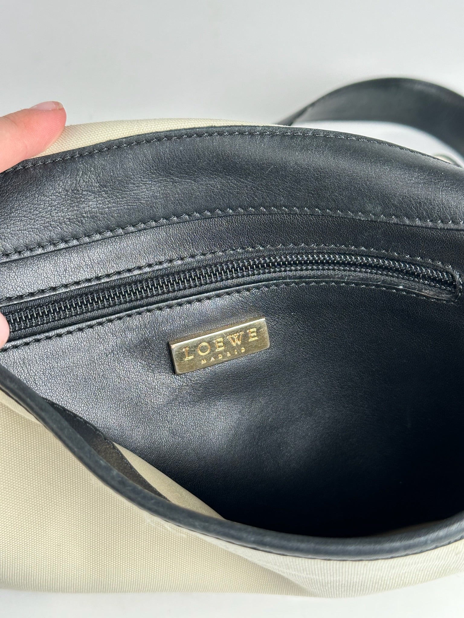 Vintage Loewe Canvas Leather Shoulder bag black white