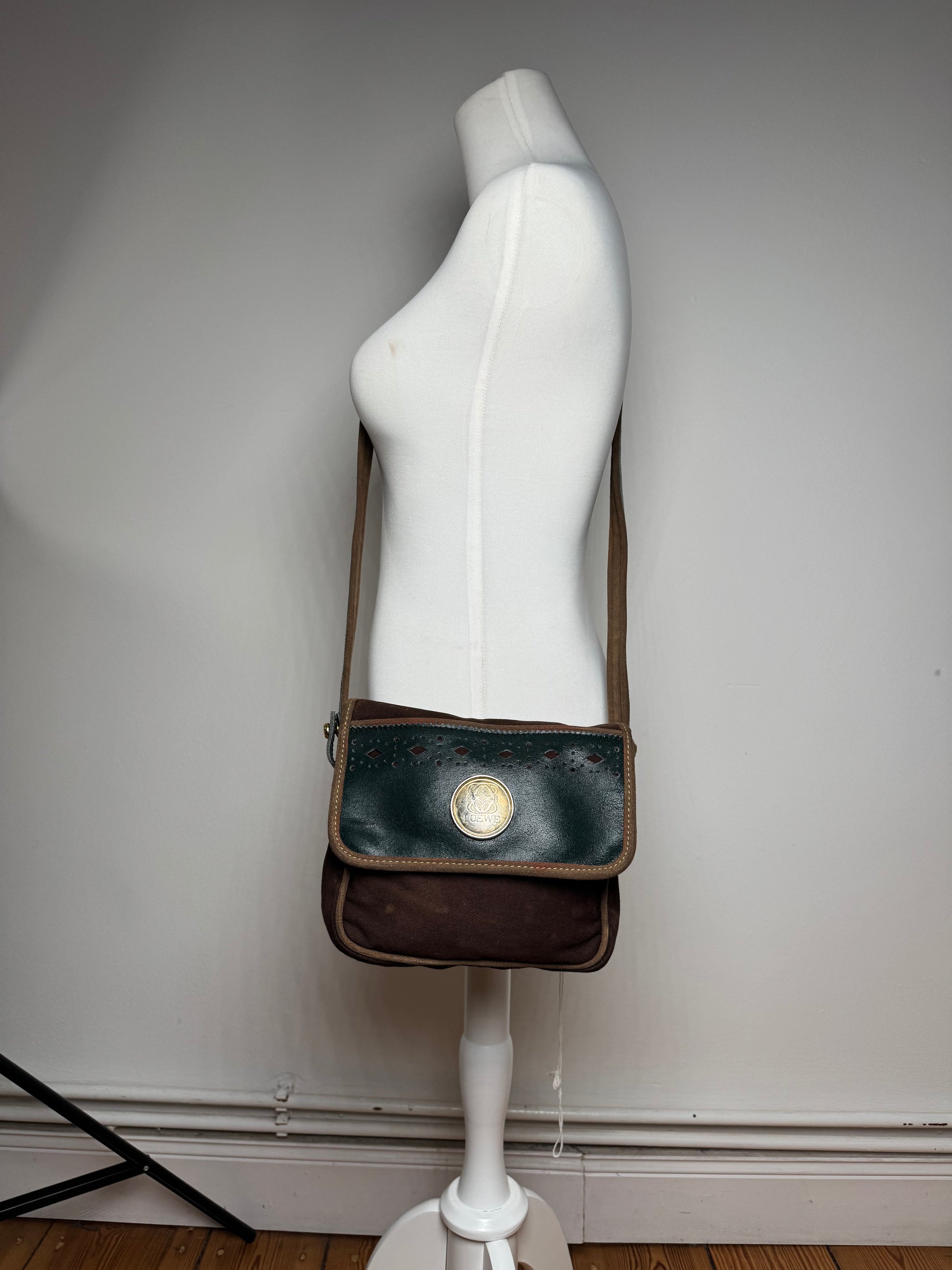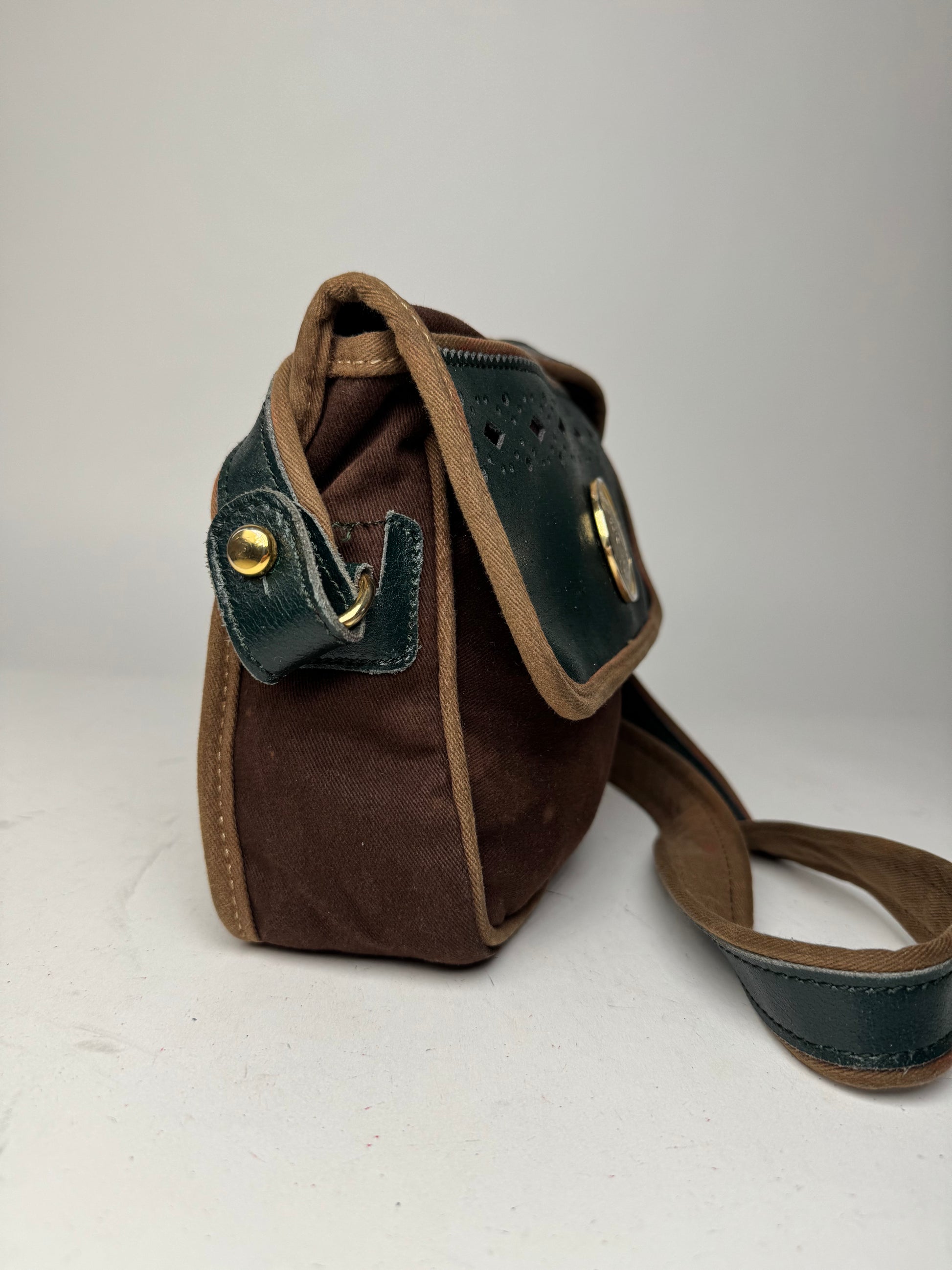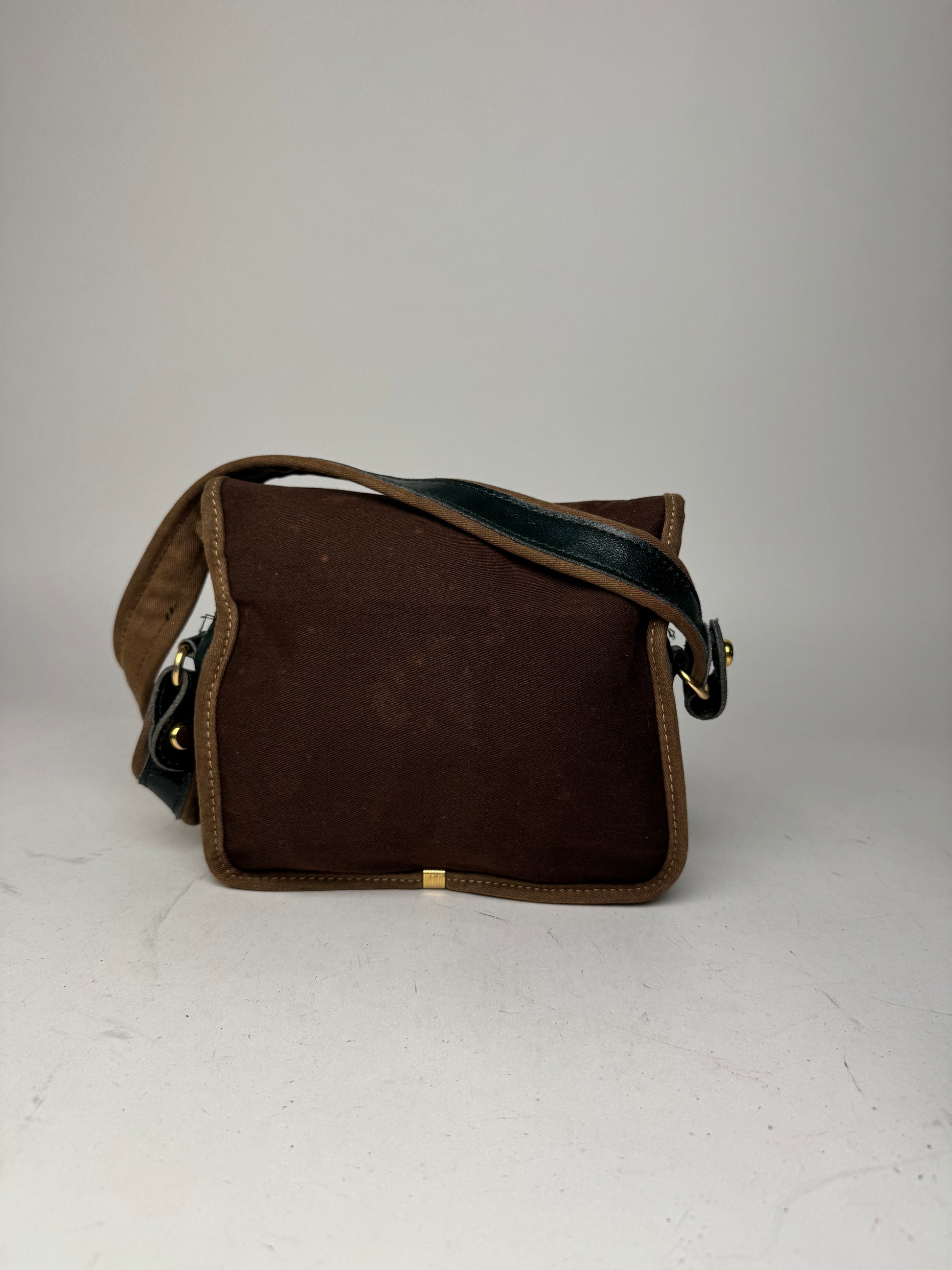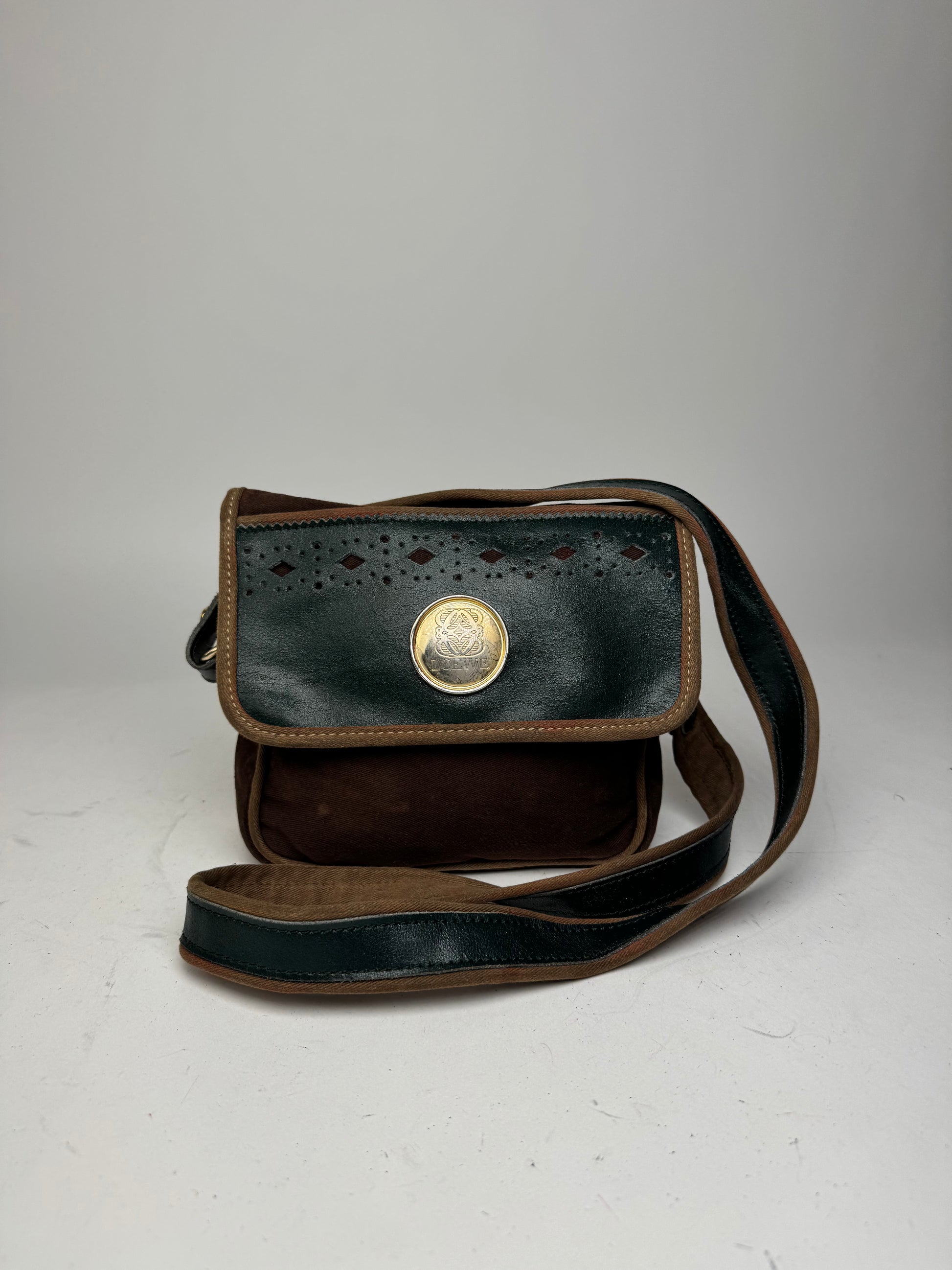 Vintage Loewe Madrid Canvas Leather bag green Brown
