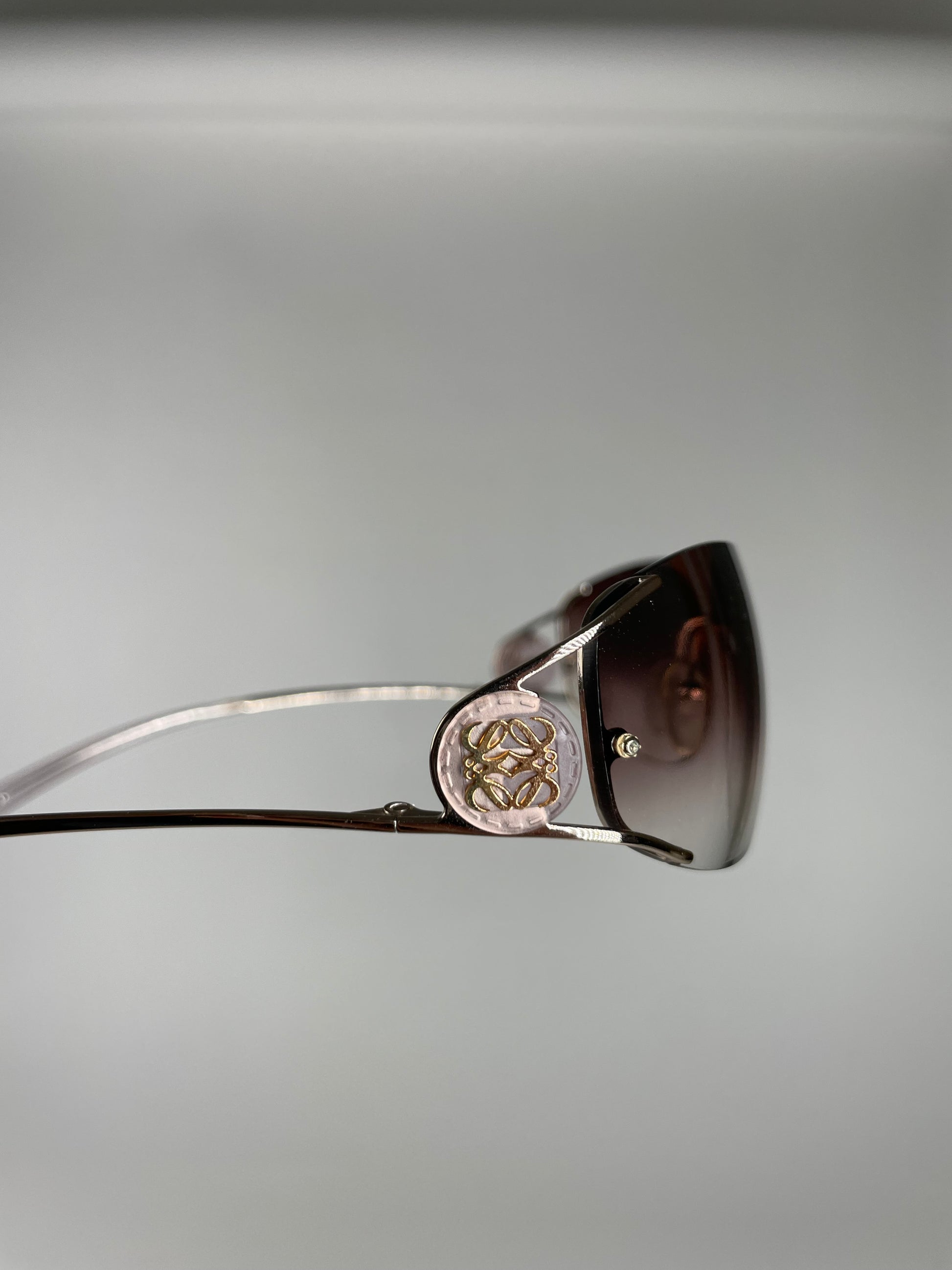 Condition Details: The sunglasses are in good condition with minor scratches and a missing Loewe appliqué on one temple.