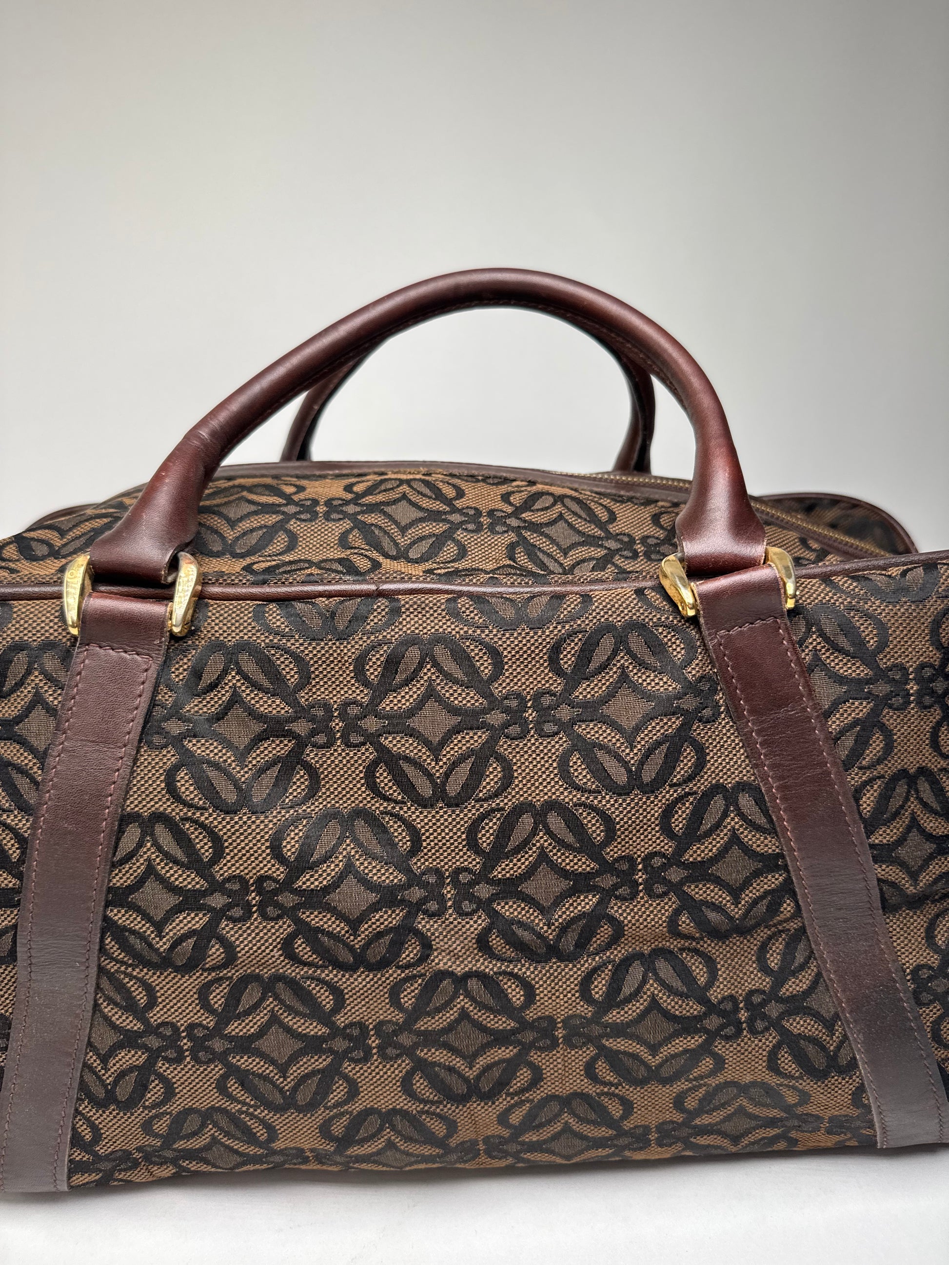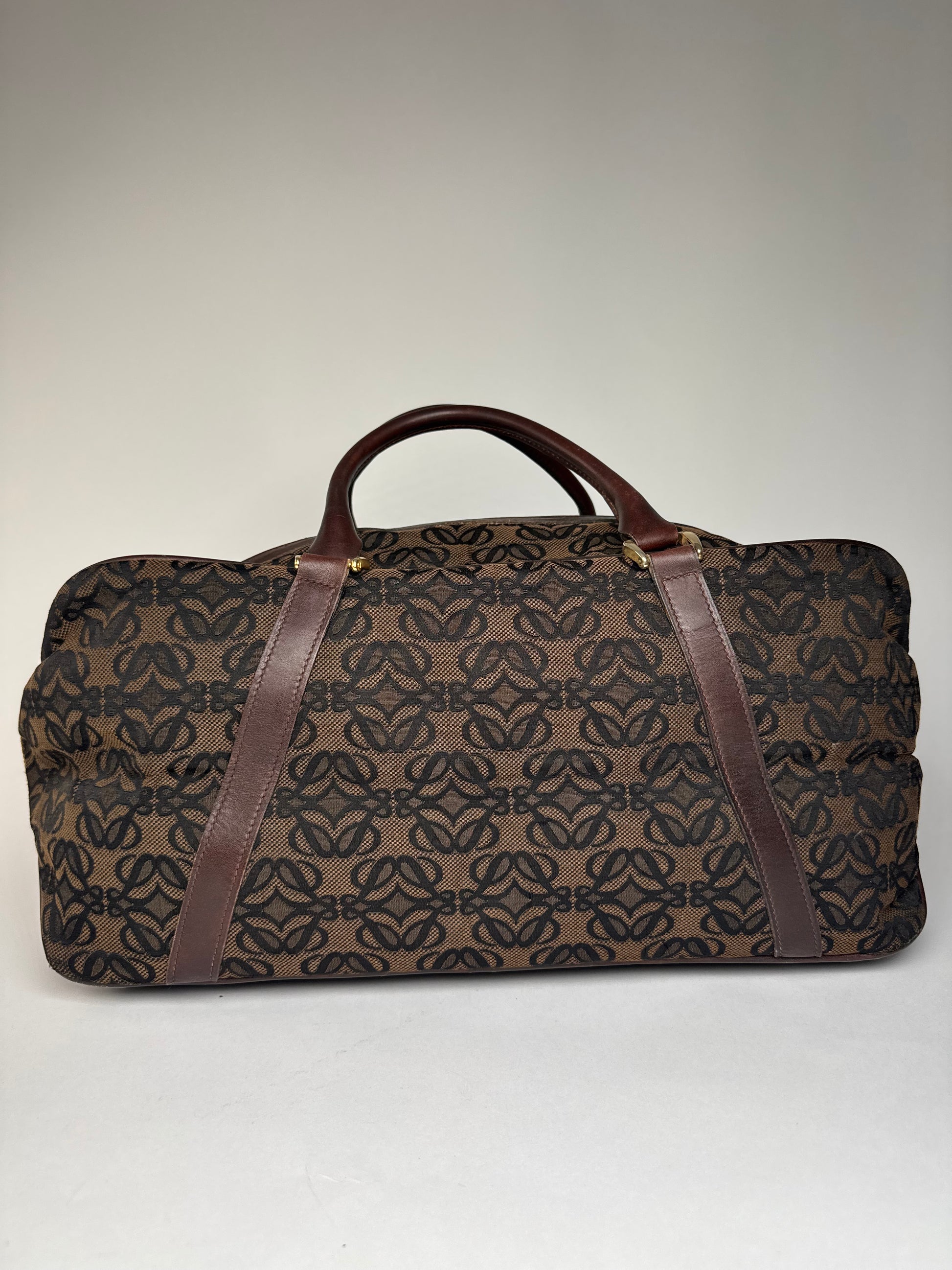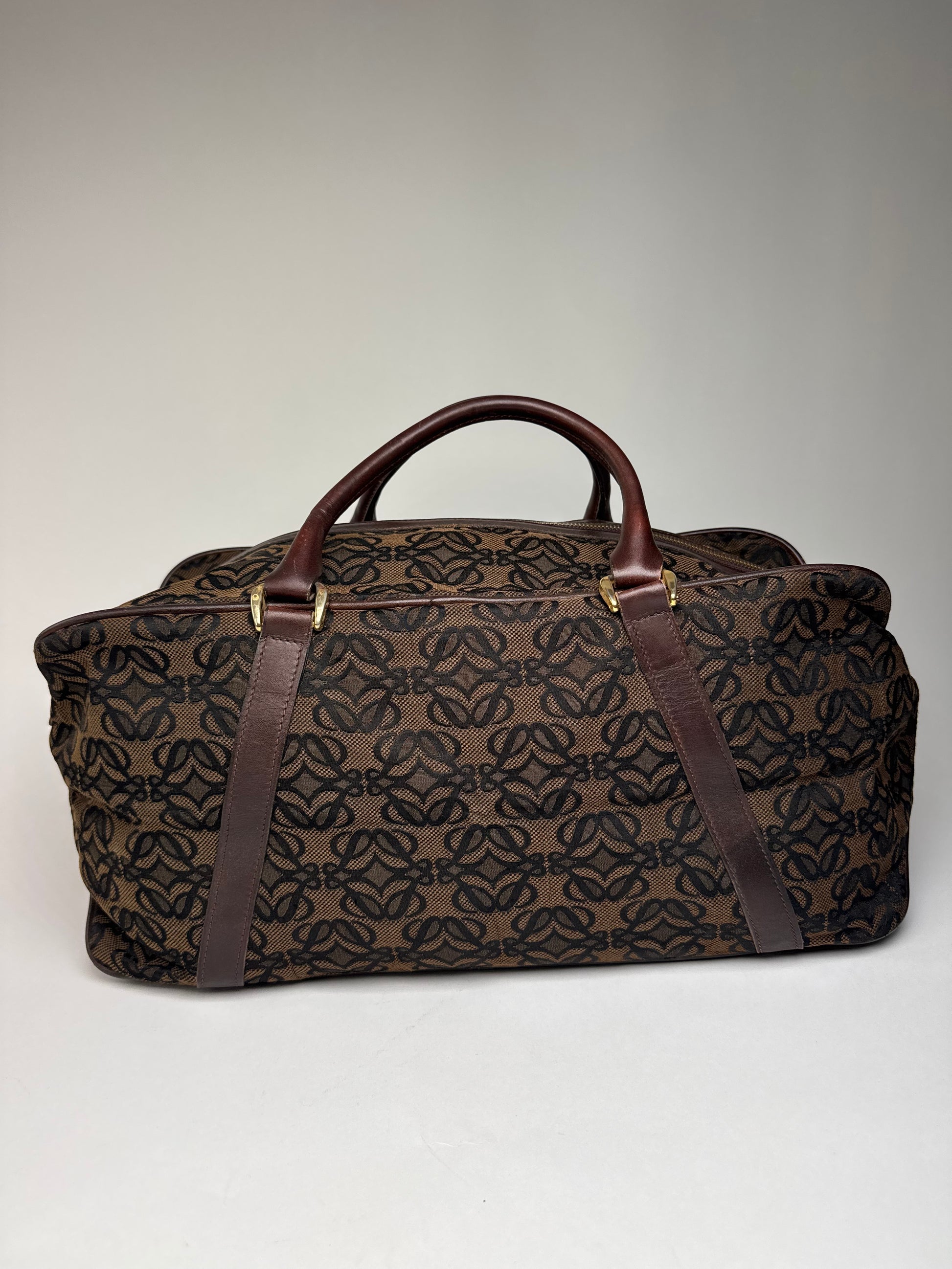 Vintage Loewe Madrid Leather Canvas Monogram Travel Bag Brown Black