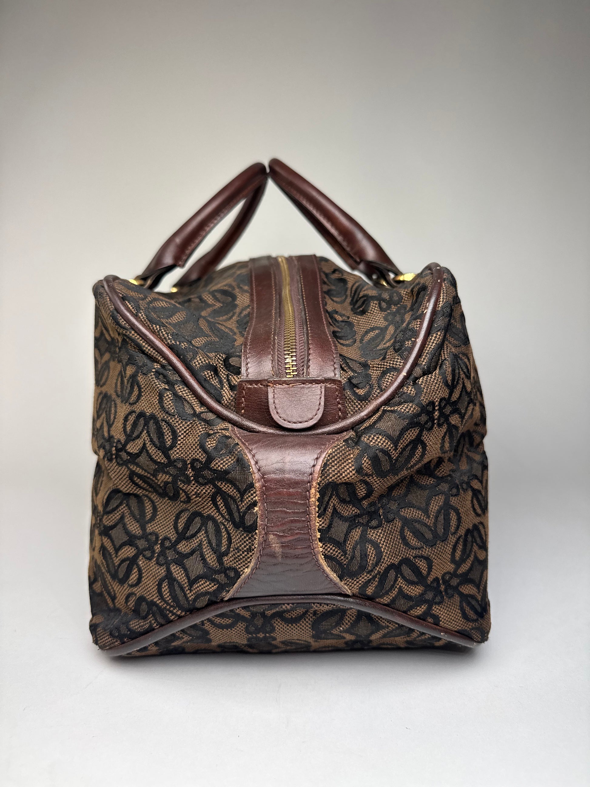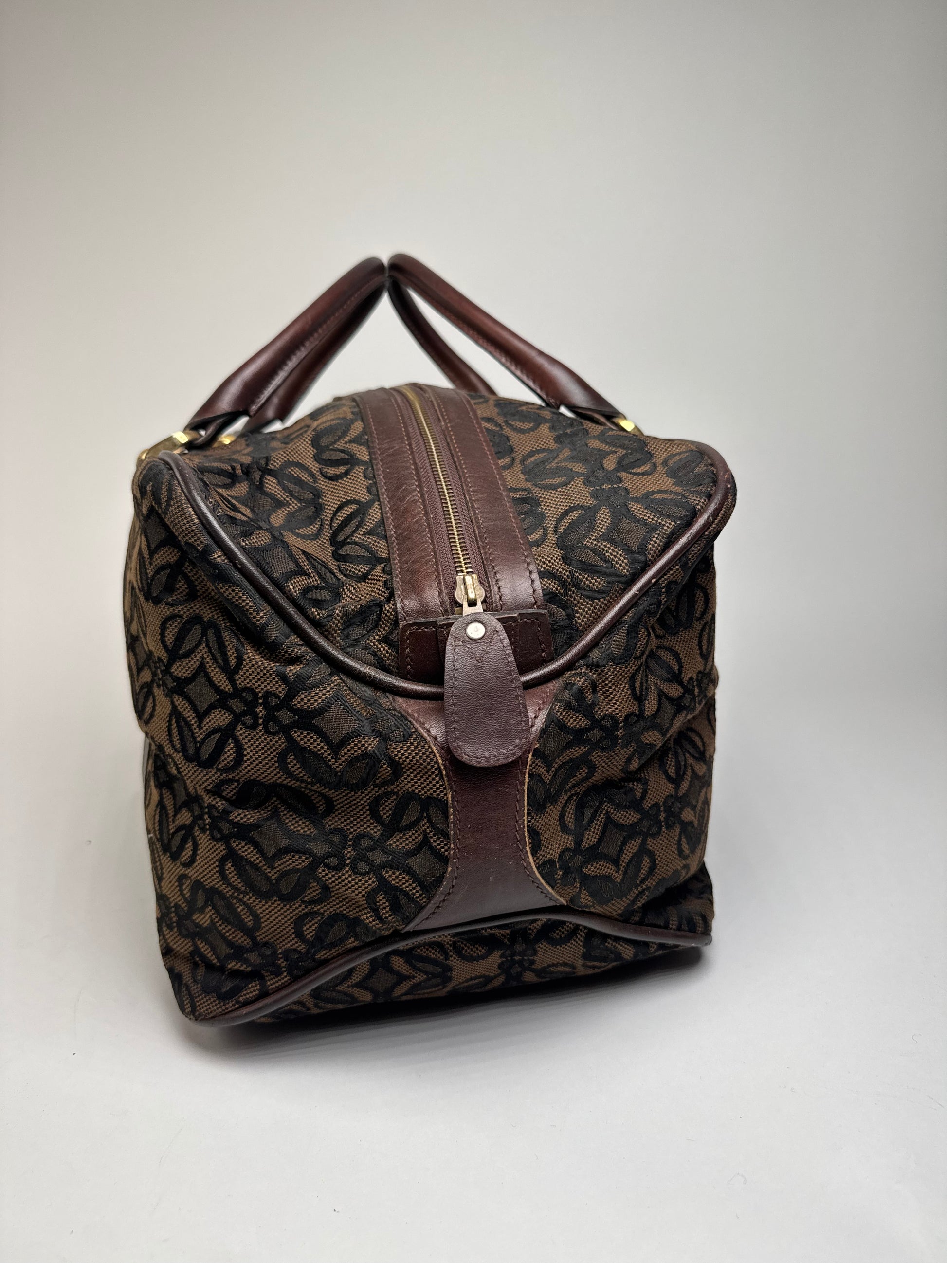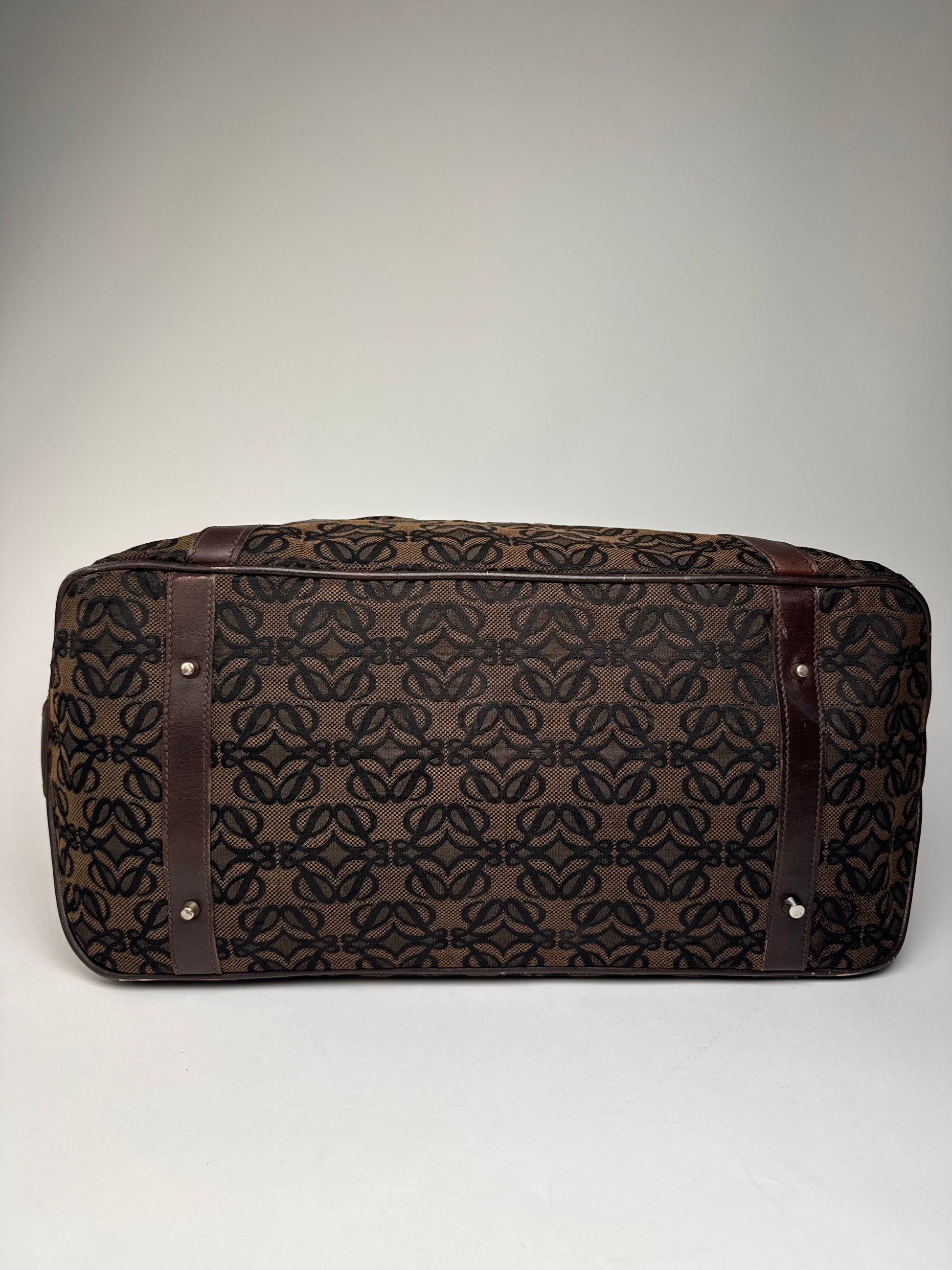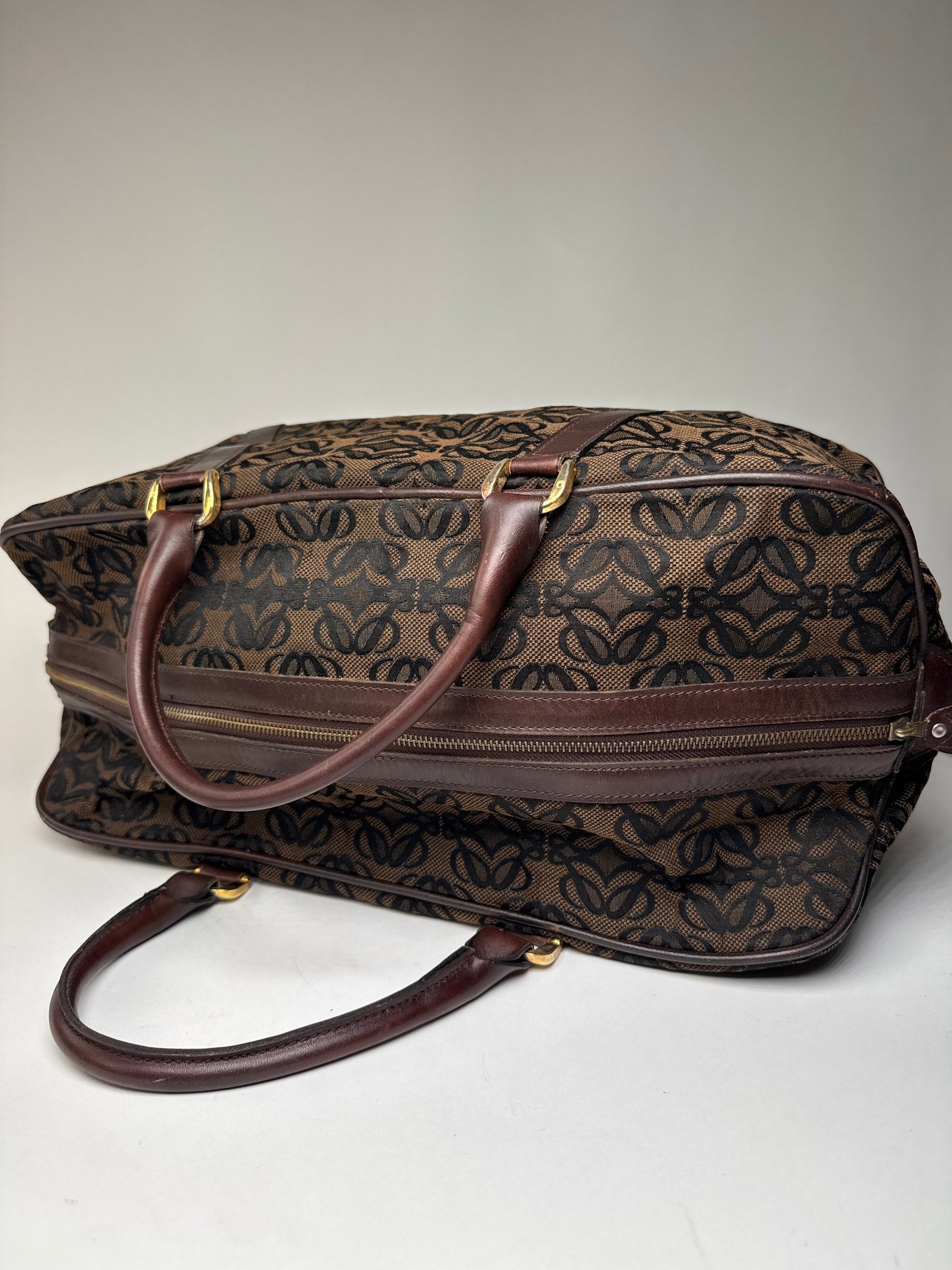 Vintage Loewe Madrid Leather Canvas Monogram Travel Bag Brown Black