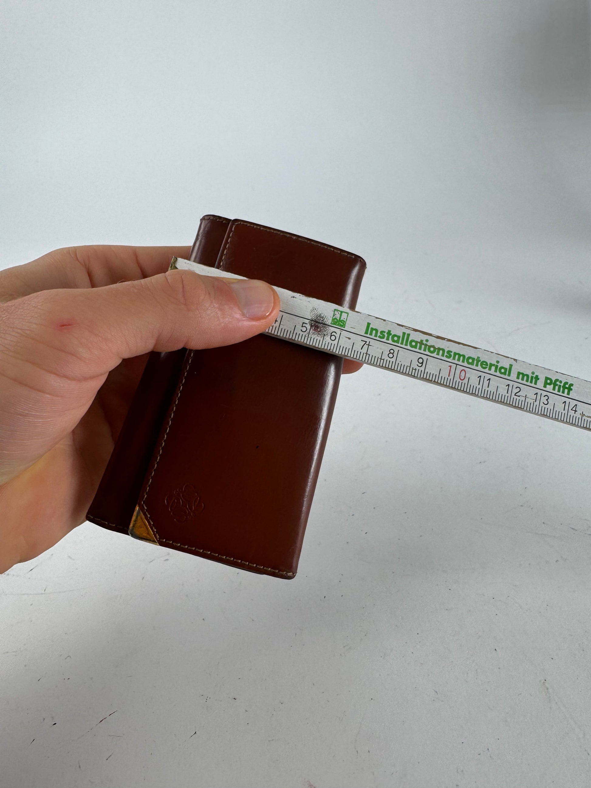 LOEWE MADRID Vintage Key Holder & Keychain. This elegant vintage key holder is crafted from smooth deer-brown leather and features a combination of gold and silver-tone hardware, offering a refined and timeless design.