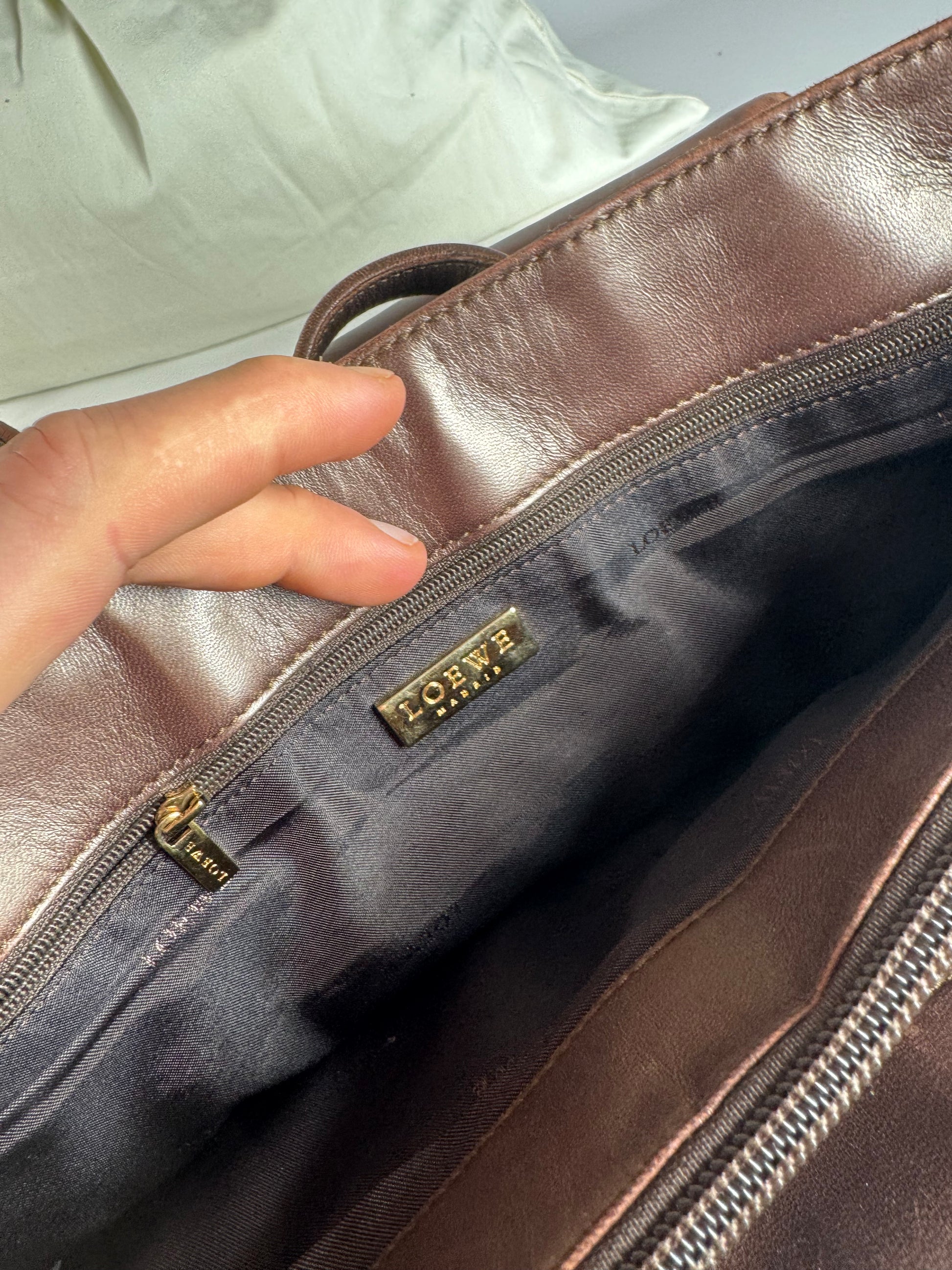 Vintage Loewe Madrid Leather Tote Bag Bronze