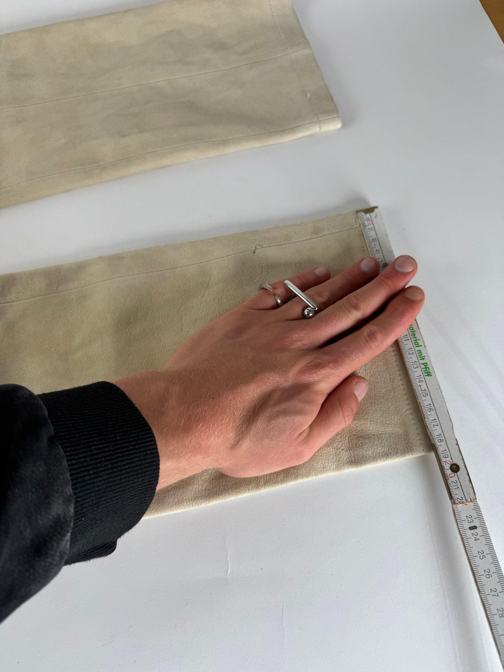 LOEWE MADRID Vintage Nappa Leather Pants. These vintage Loewe Madrid pants are crafted from beige Nappa leather, offering a soft and luxurious feel. The interior is lined with viscose for added comfort. Despite some spots, the pants remain in very good condition. Made in Spain, they are a timeless wardrobe staple.