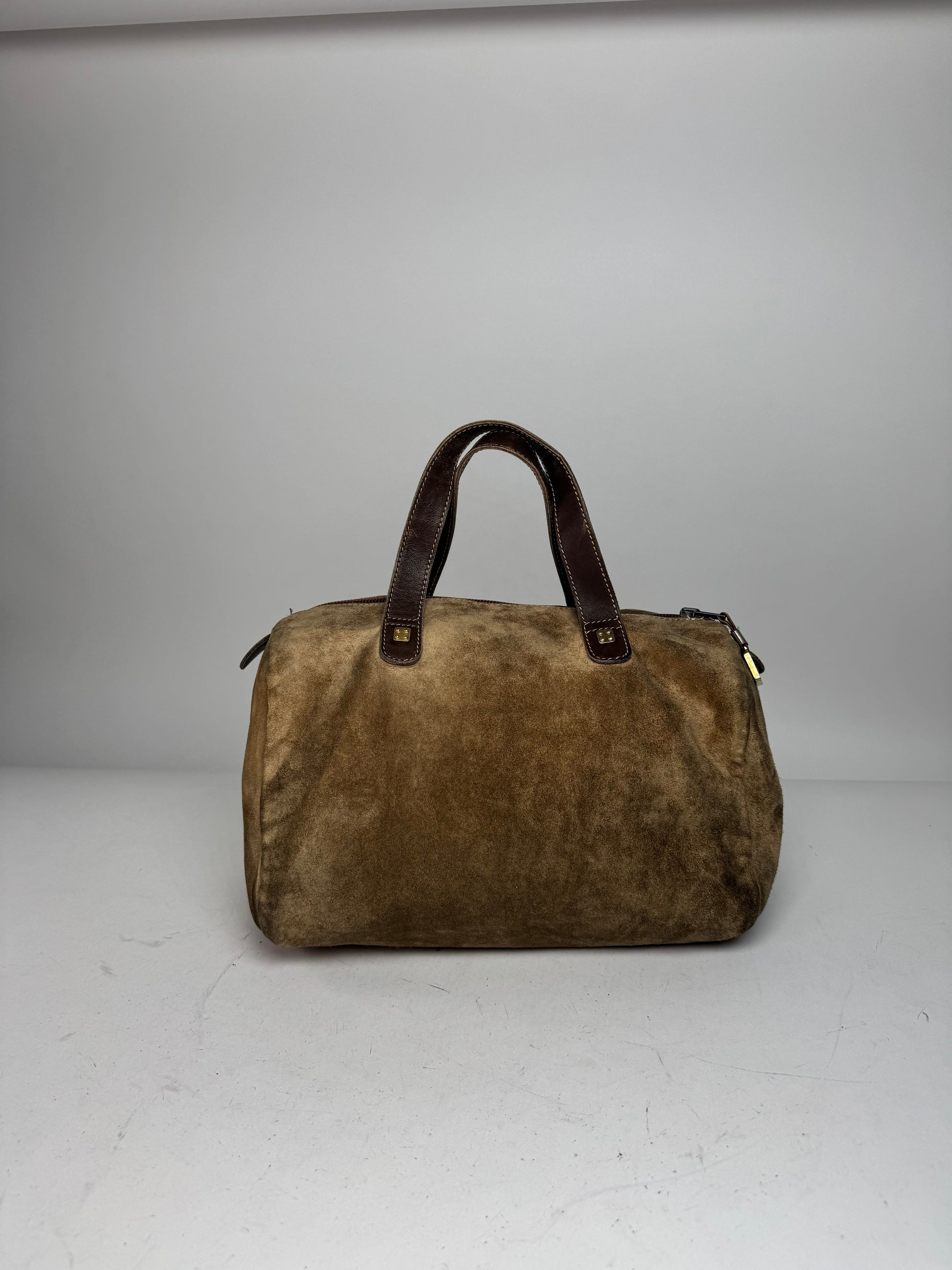Condition Details: Very good vintage condition with minimal signs of wear. Suede, leather trim, and hardware remain well preserved.