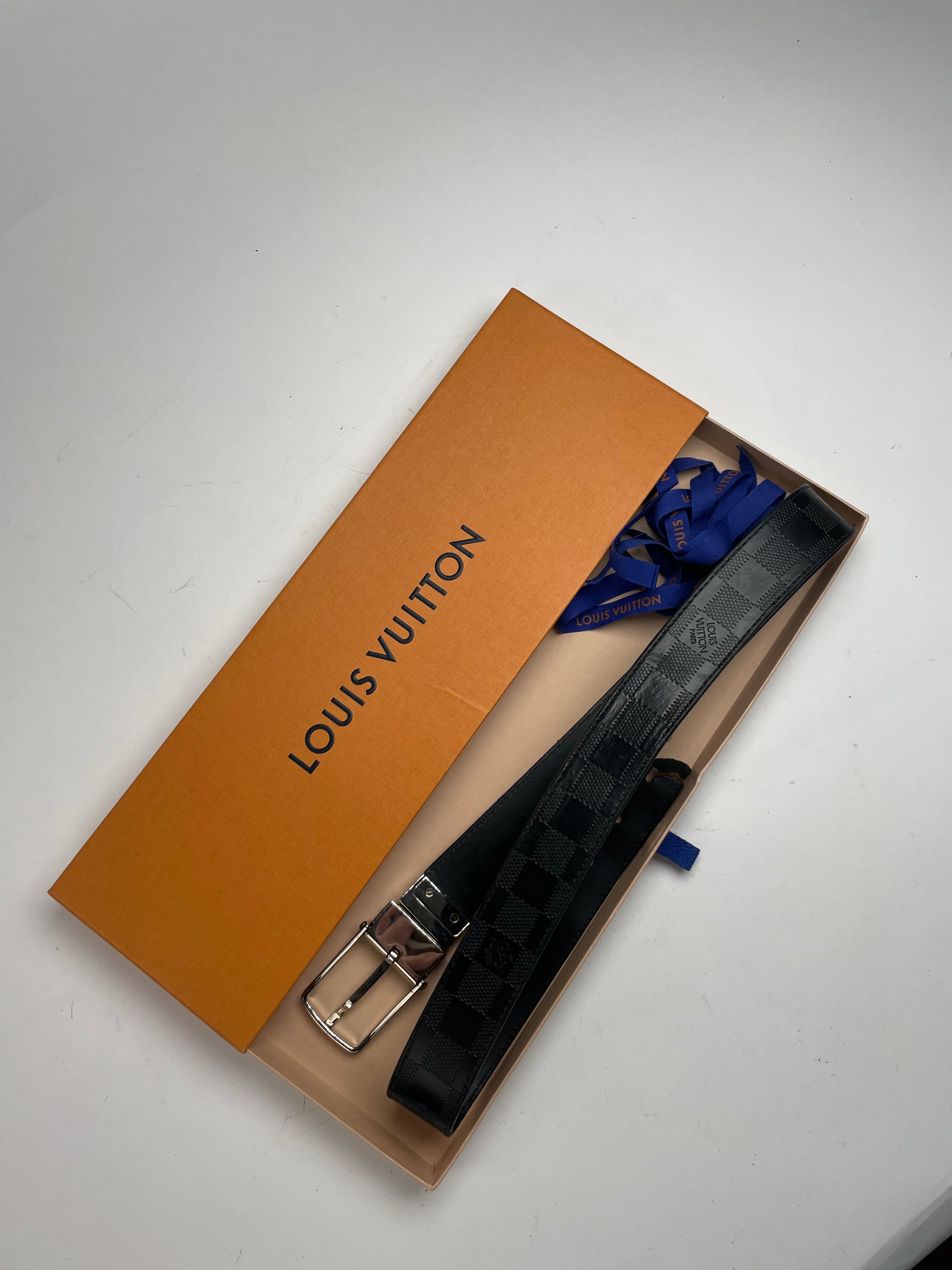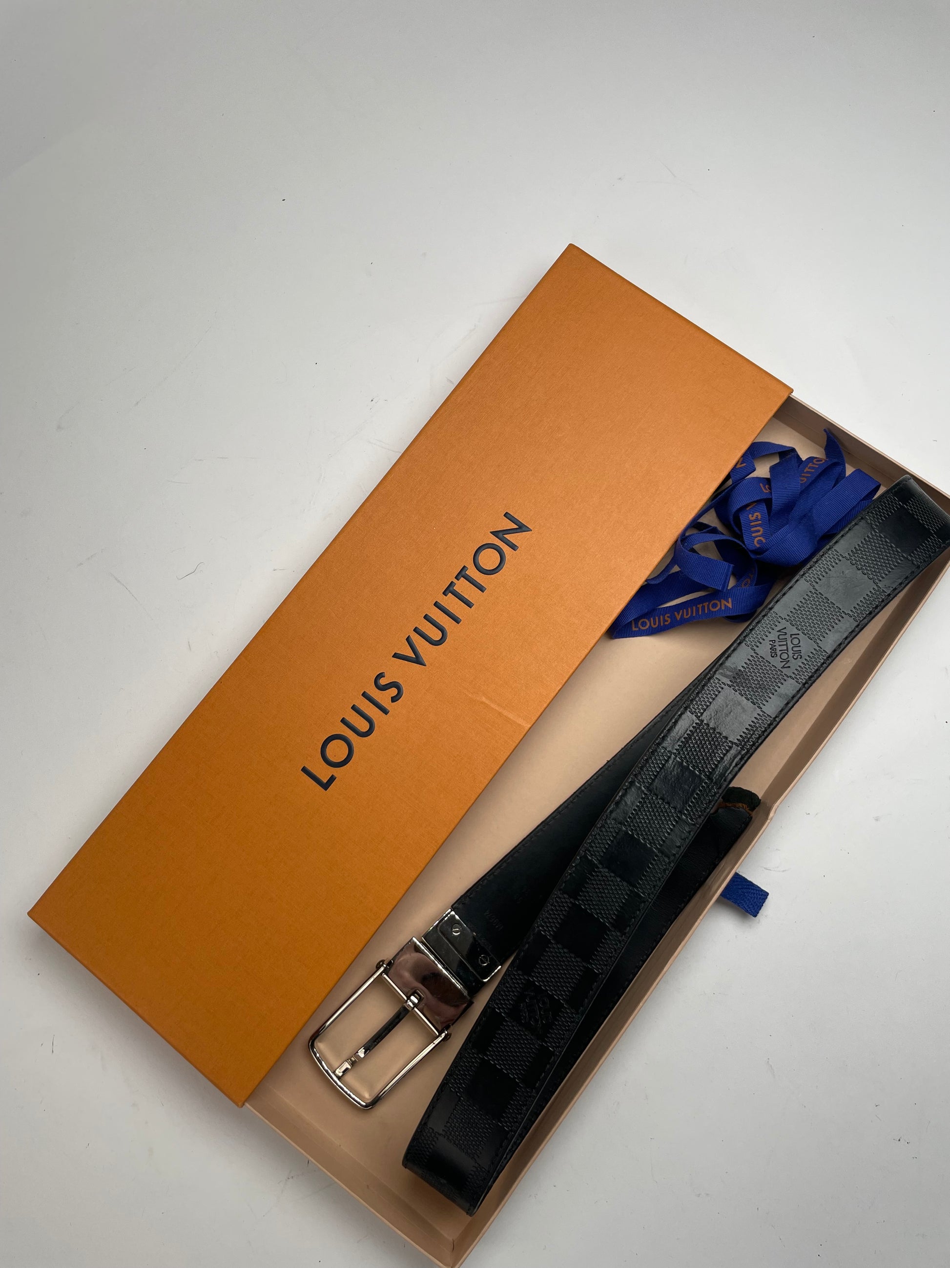 vintage Louis Vuitton Damier Monogram Leather Belt Black