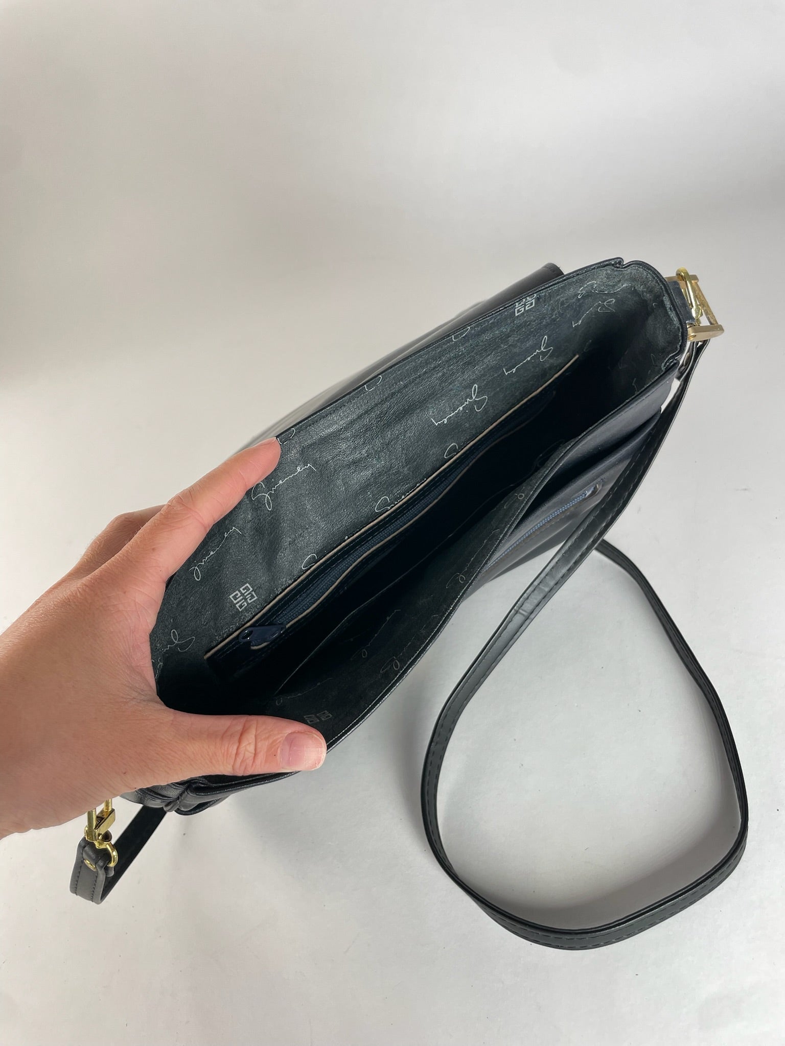 Condition Details: The exterior patent leather shows light surface scratches consistent with gentle use. The brown leather details remain in very good condition. The silver-tone hardware has minor surface scratches. The interior canvas lining is clean and well maintained.
