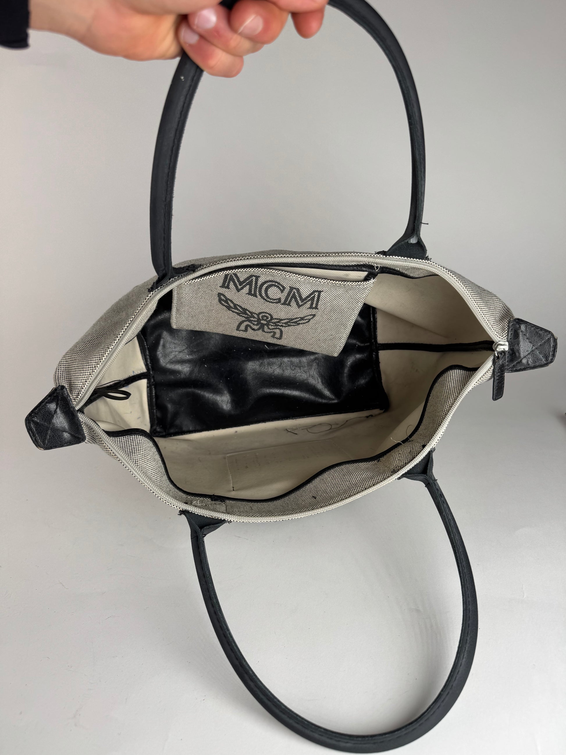 Vintage MCM canvas / leather shopper grey black