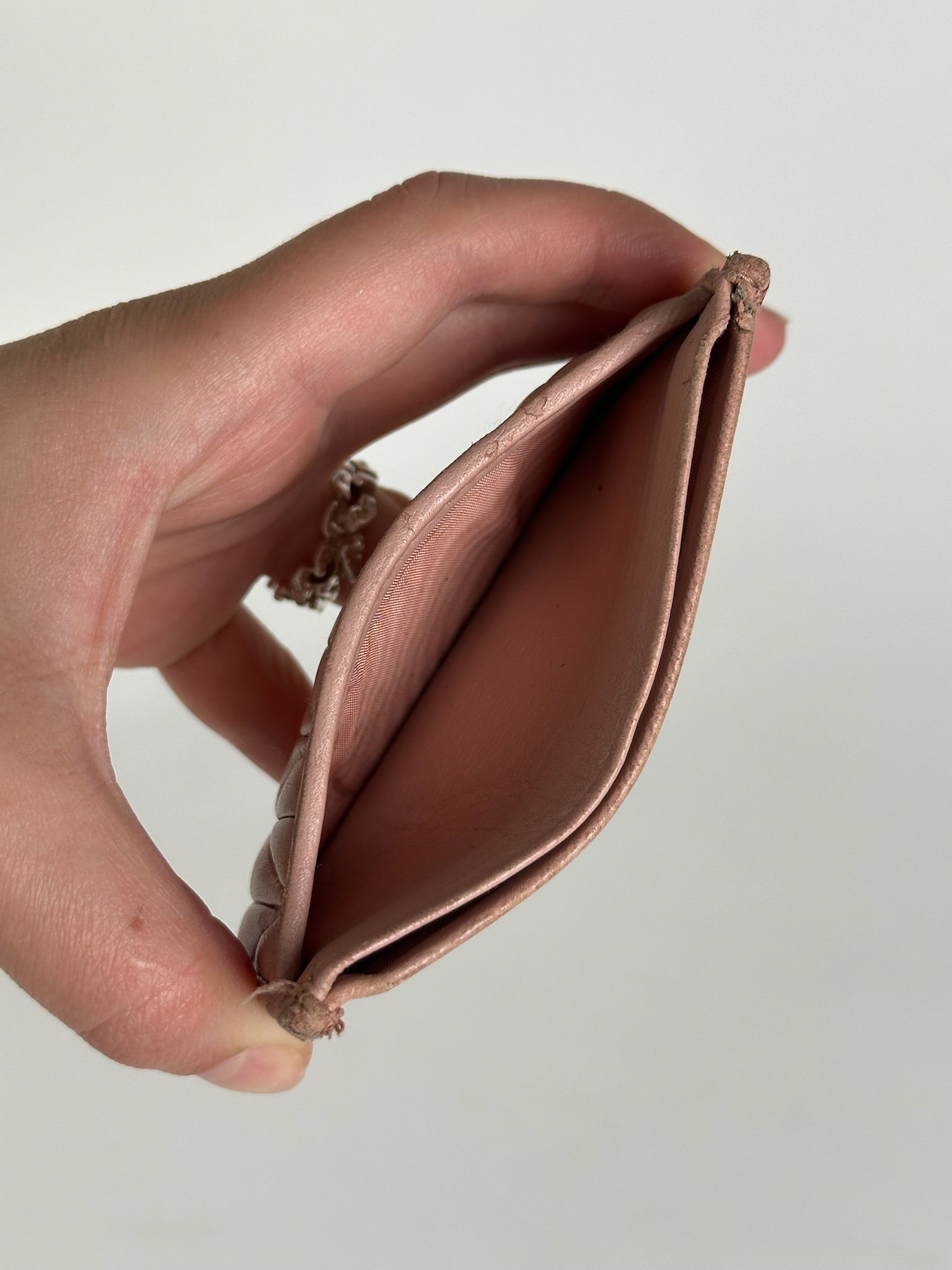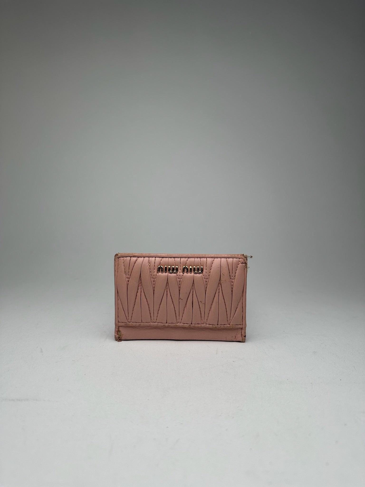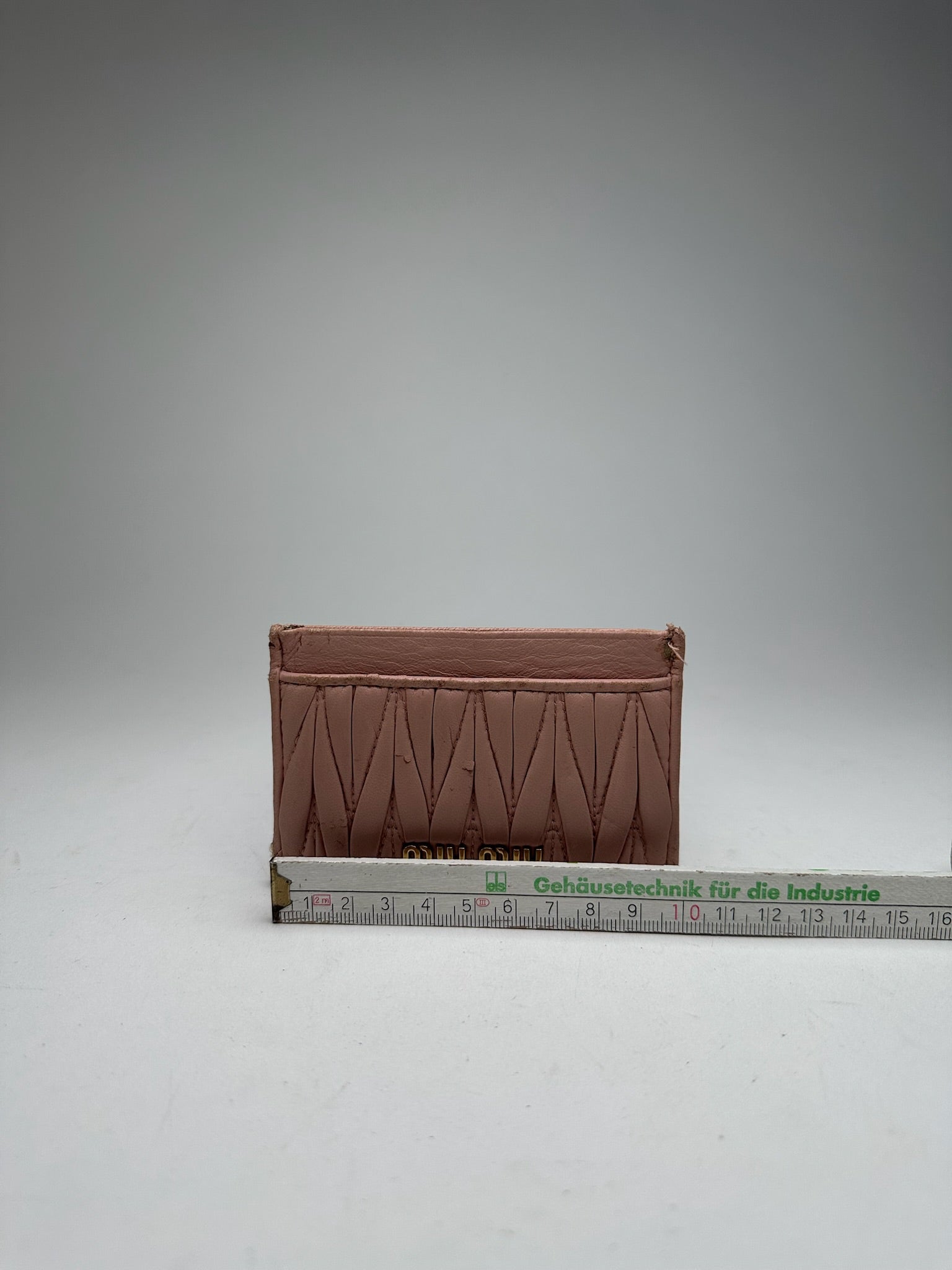 MIU MIU Vintage Matelassé Card Holder. This chic card holder is finely crafted of pink matelassé leather with gold-toned steel hardware.