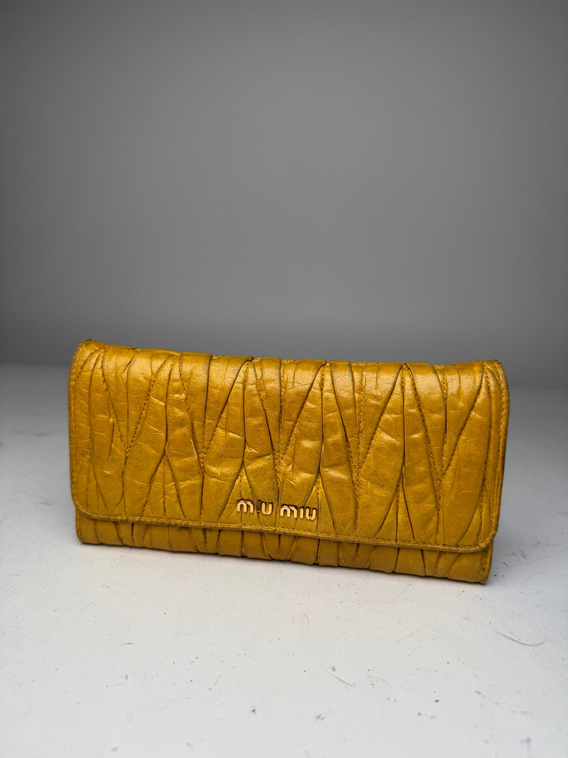 Vintage Miu Miu Metalassee Leather Wallet Yellow