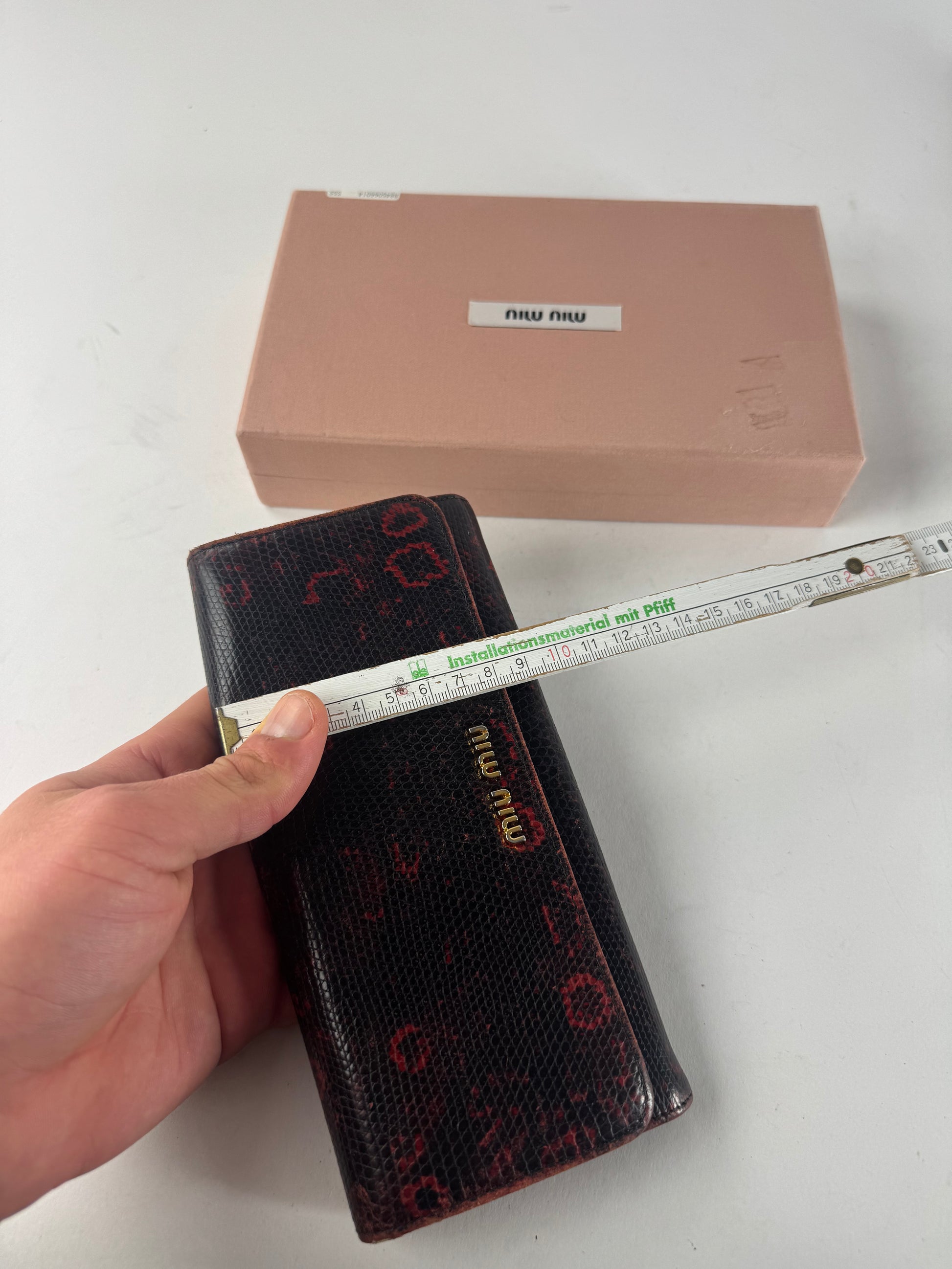 Vintage Miu Miu Snake Emblossed Leather Wallet Black Red