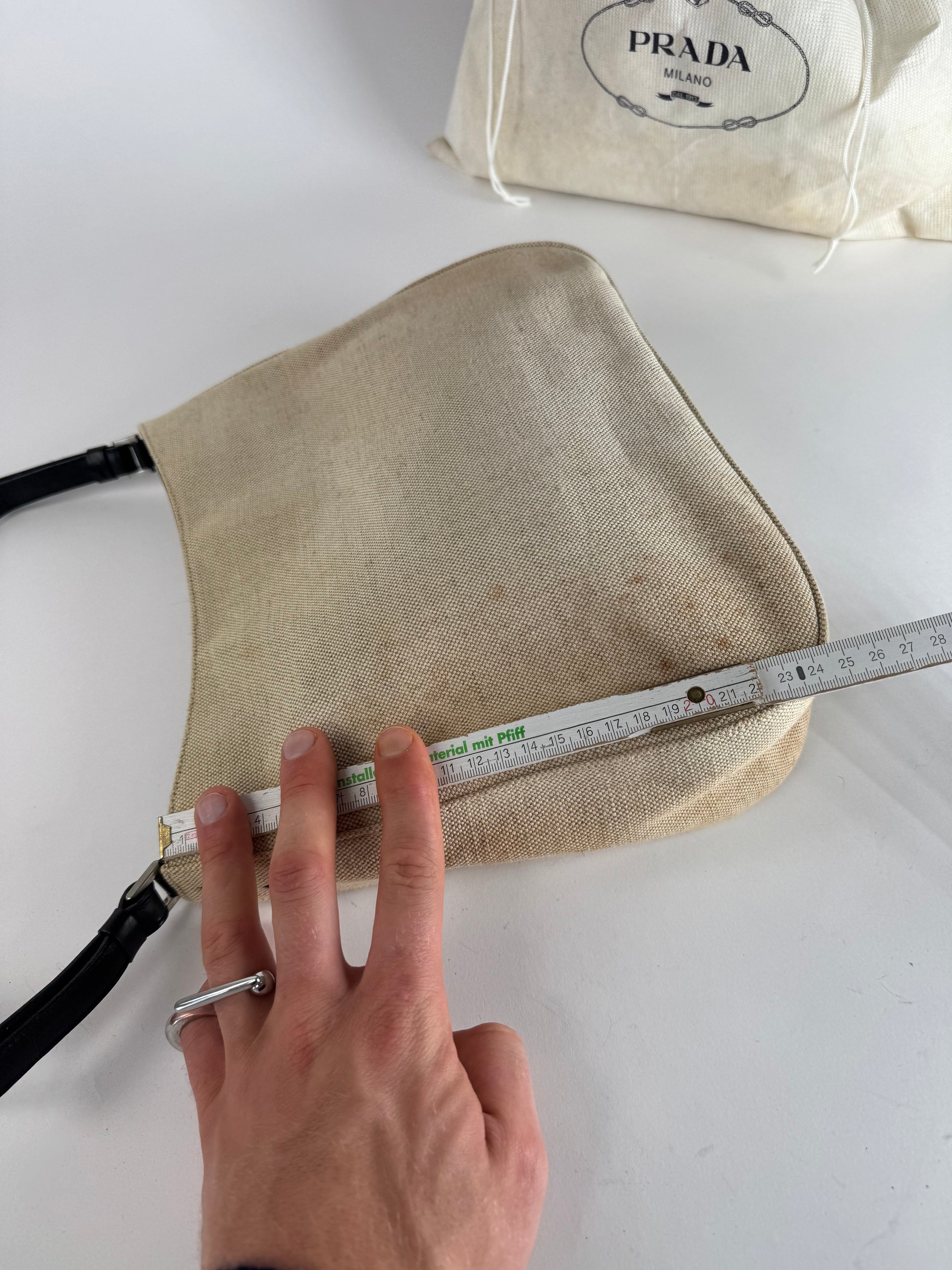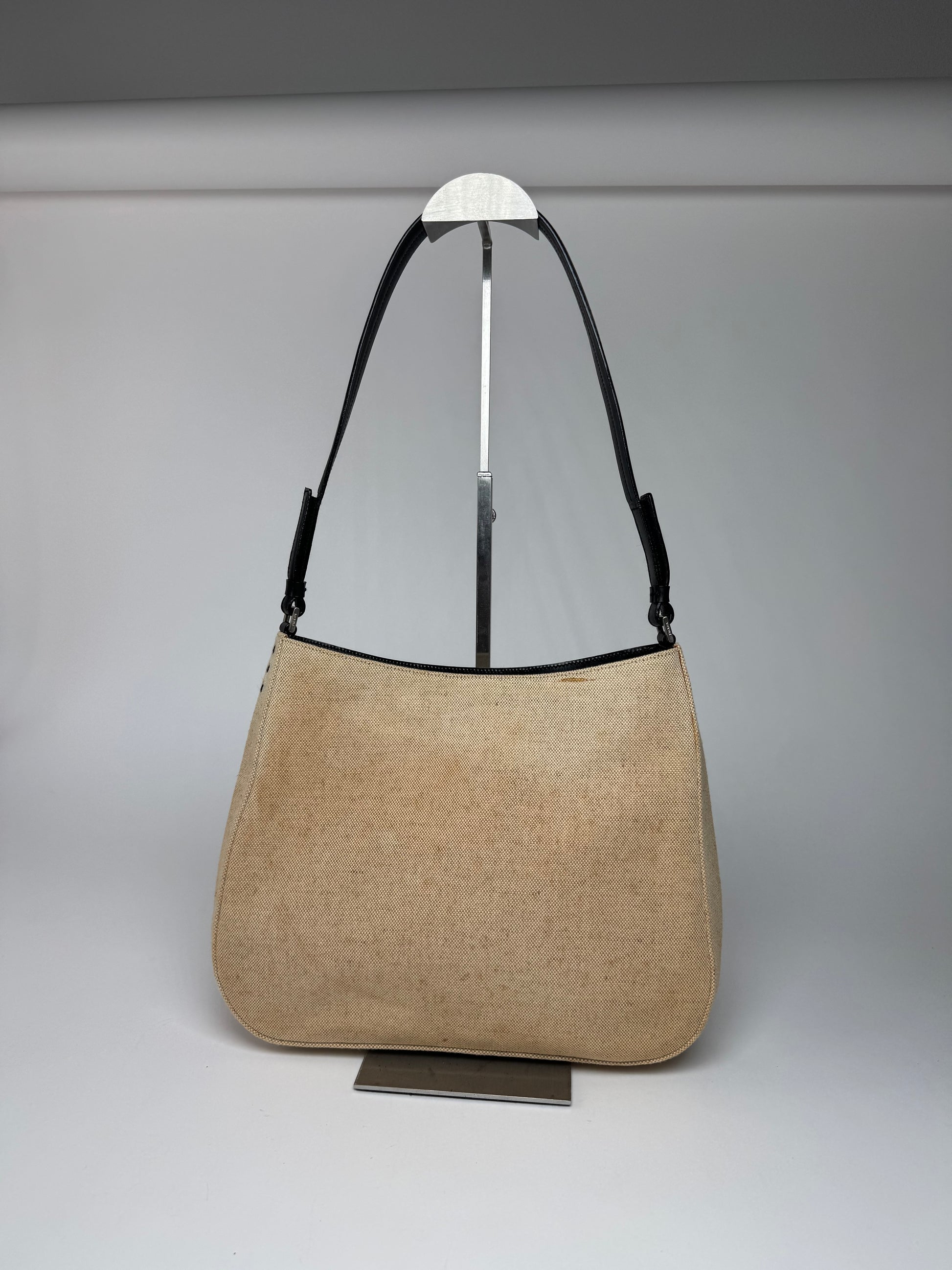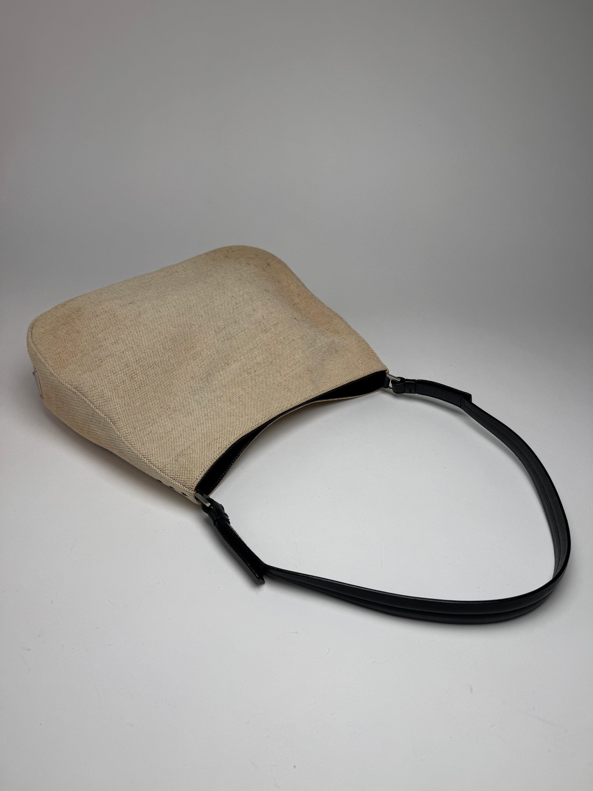 Vintage Prada Cleo Canvas Leather Bag Beige Black