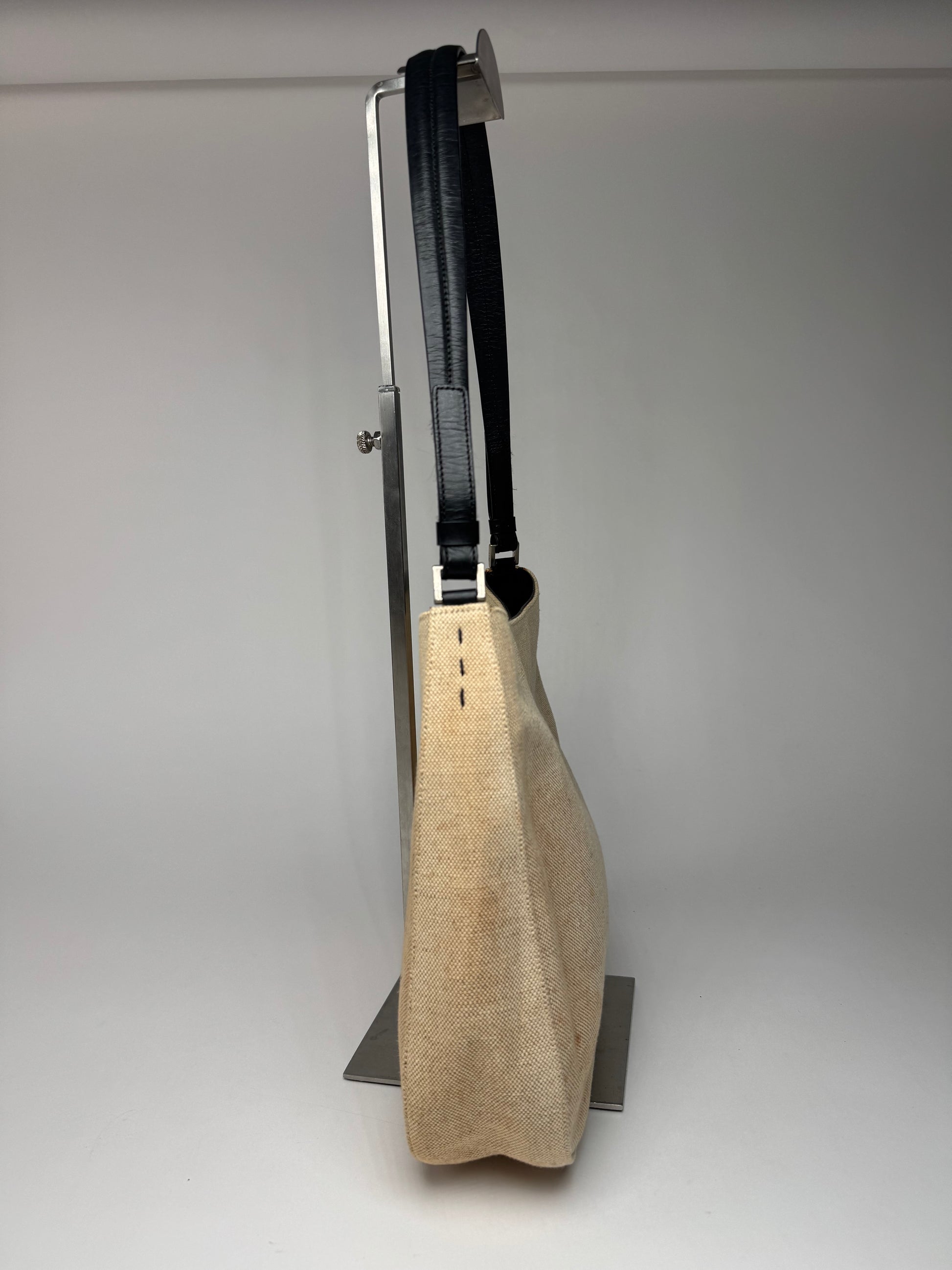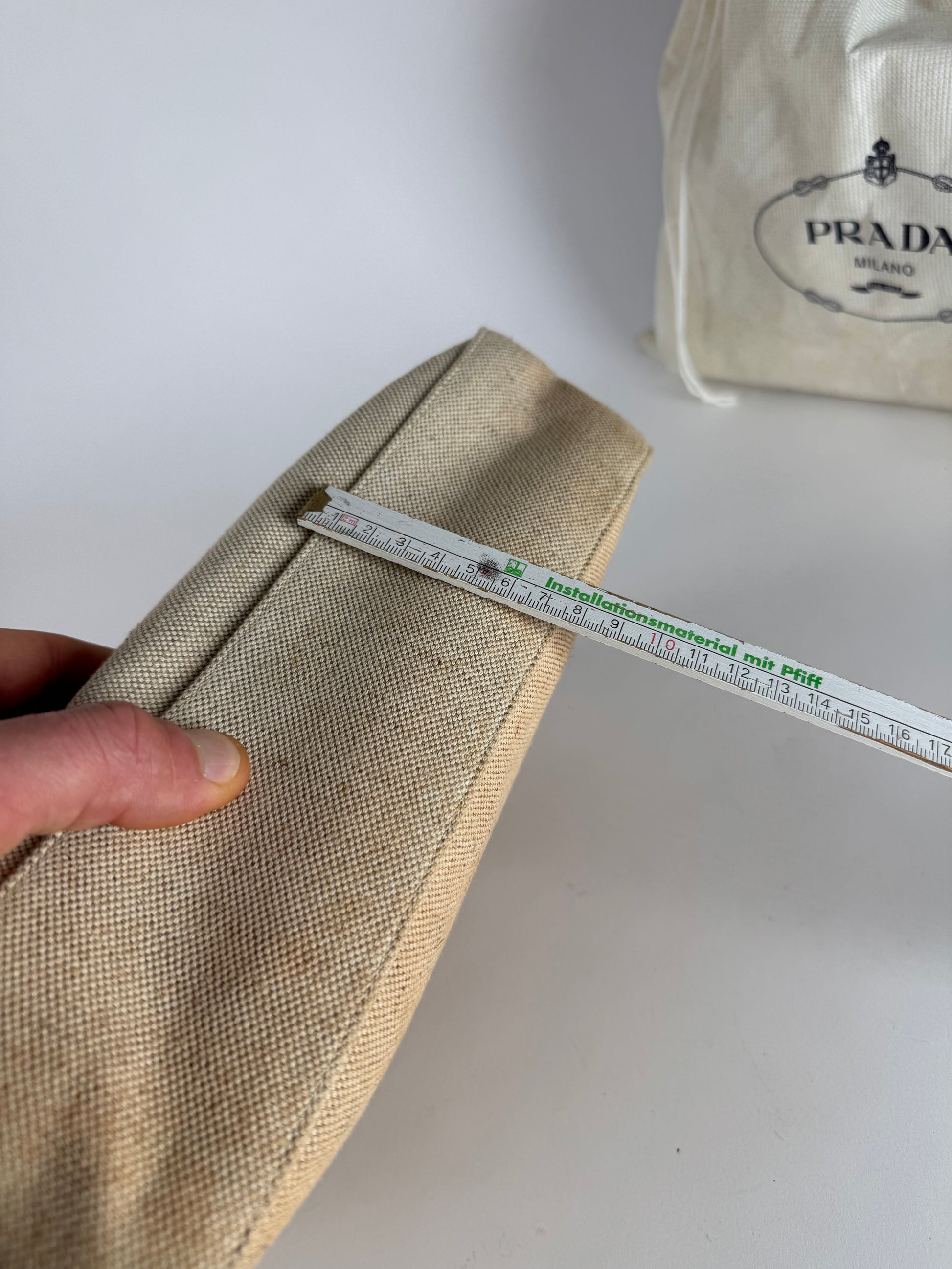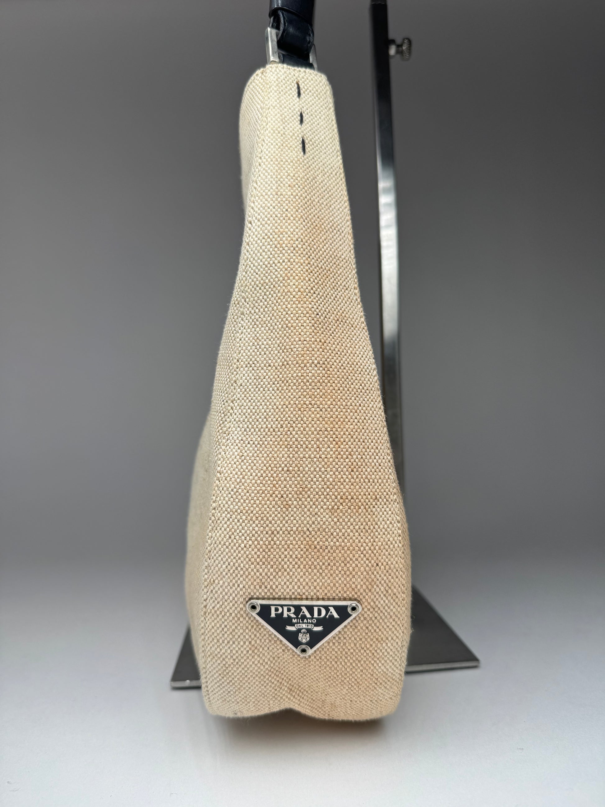 Vintage Prada Cleo Canvas Leather Bag Beige Black