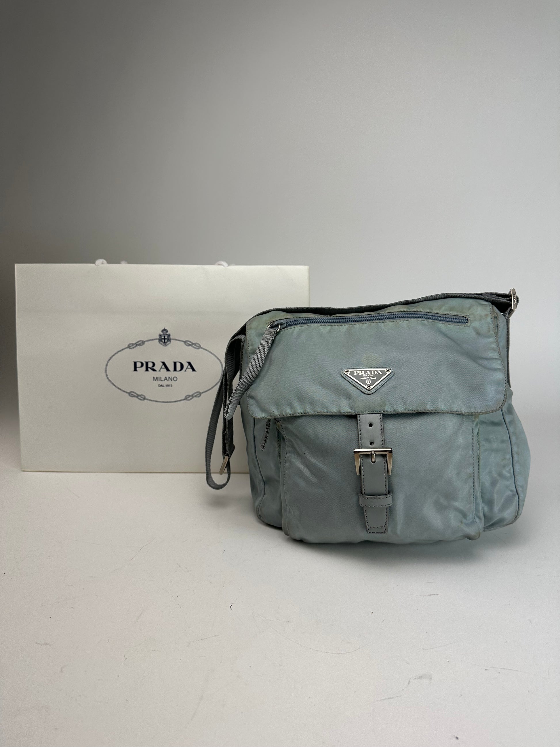 Vintage Prada Light Blue Polyester Crossbody Bag