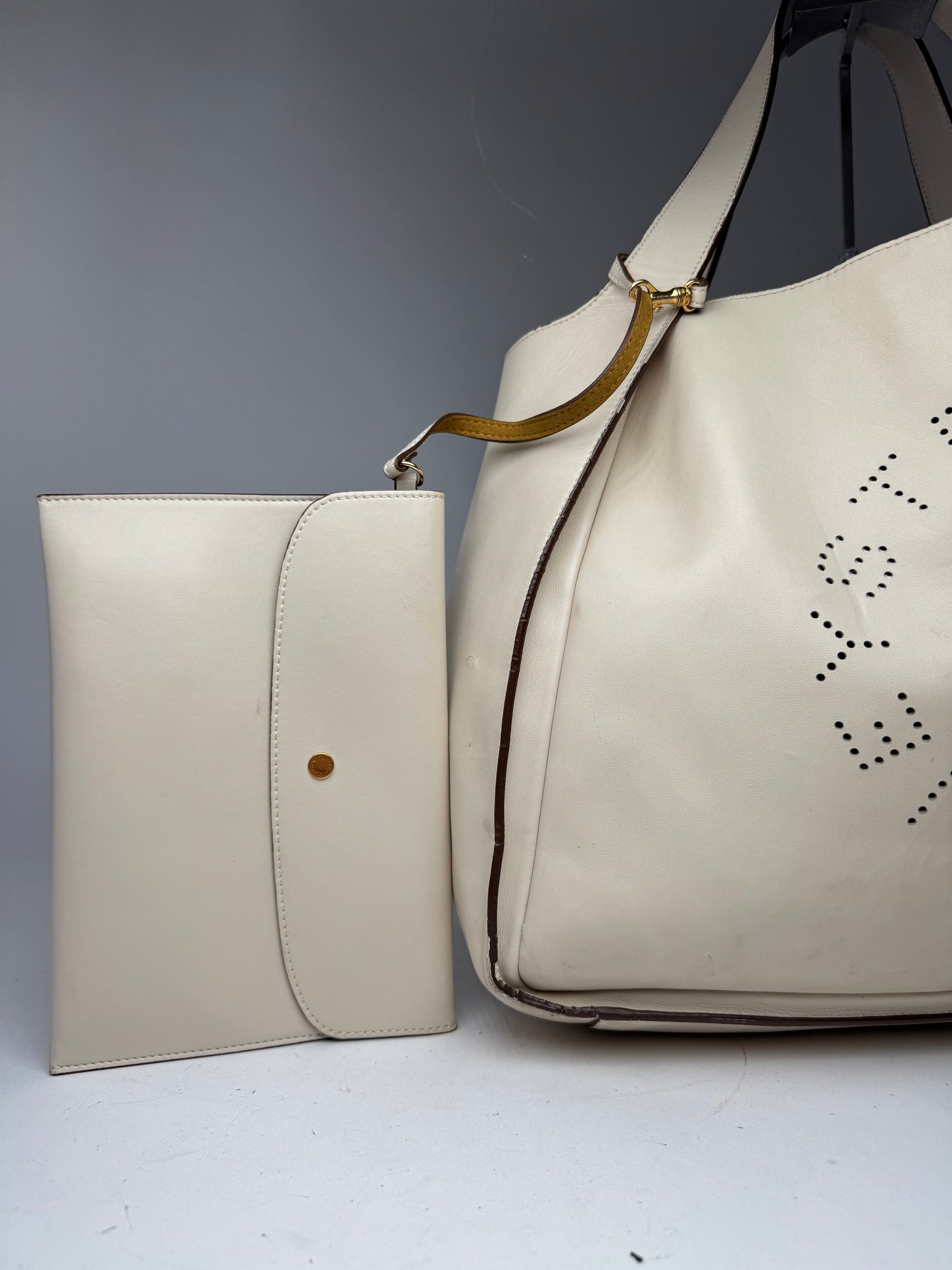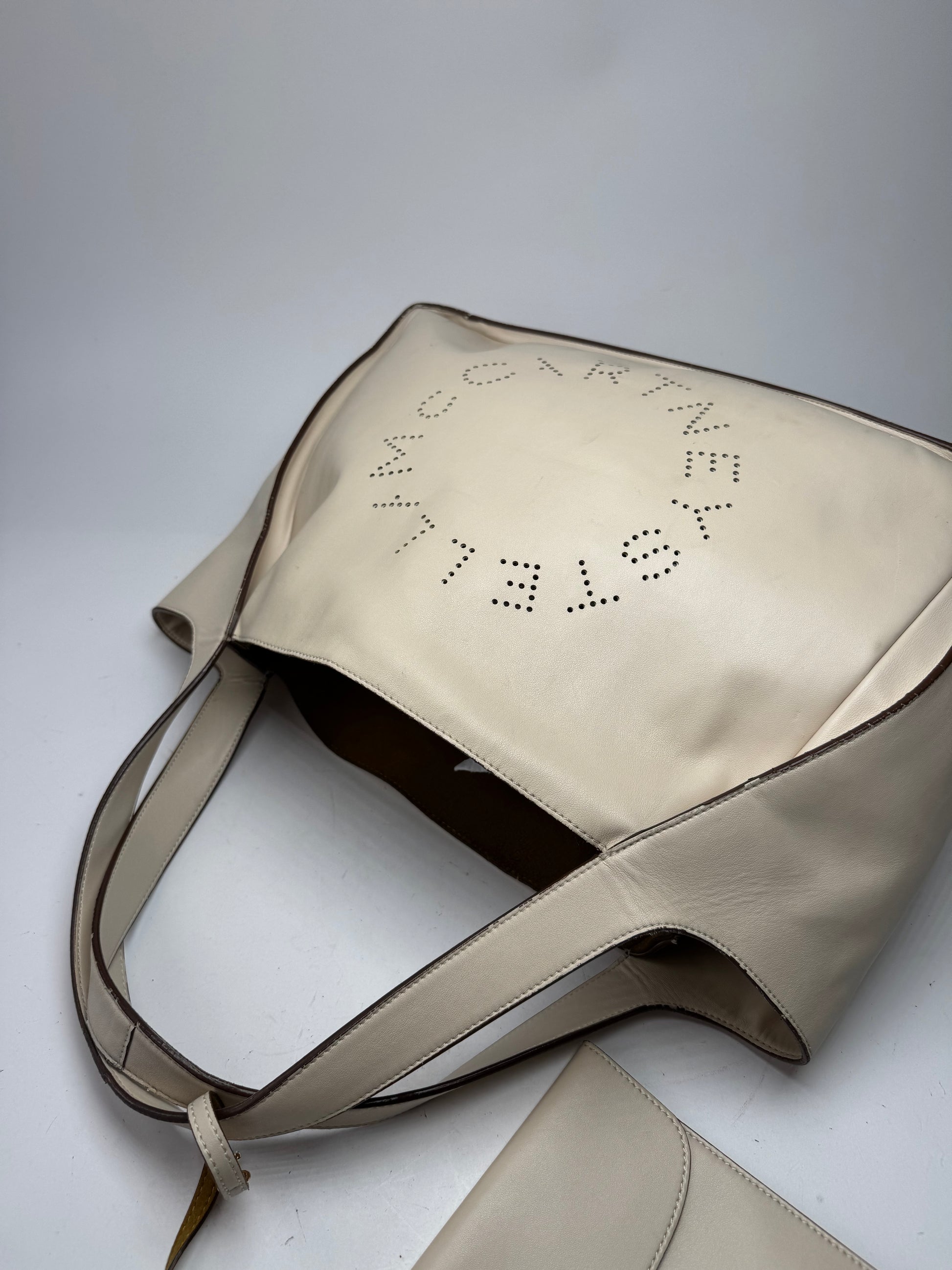 Vintage Stella Mc Cartney Vegan Leather Logo Shopper Bag Beige