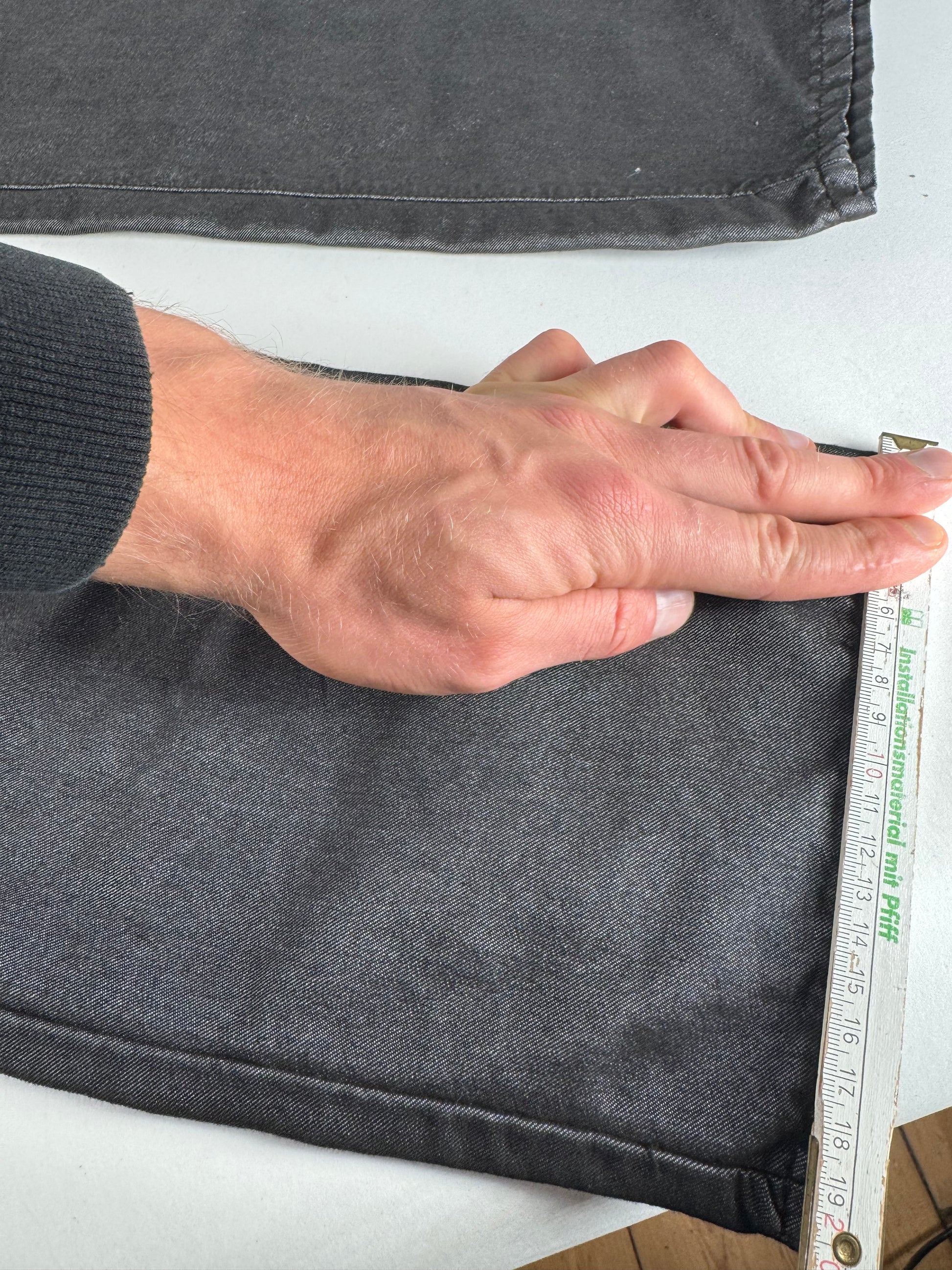 Condition Details: The trousers are in very good overall condition. There are light lilac discolorations at the hem of the legs. Aside from this, the fabric is well preserved and the hardware remains clean and intact.