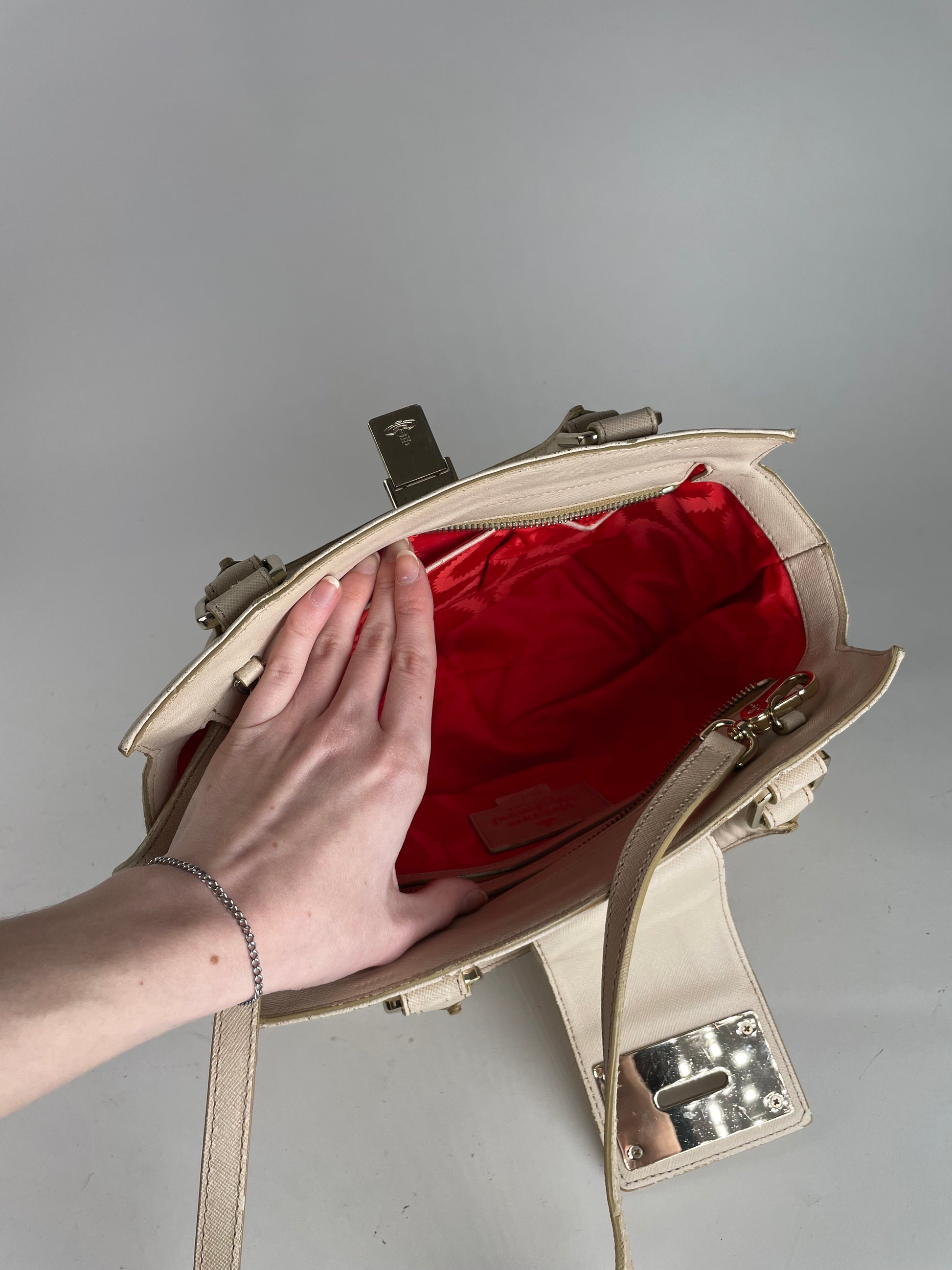 Vintage Vivienne Westwood 2Way Opio Safiano Leather Bag Beige