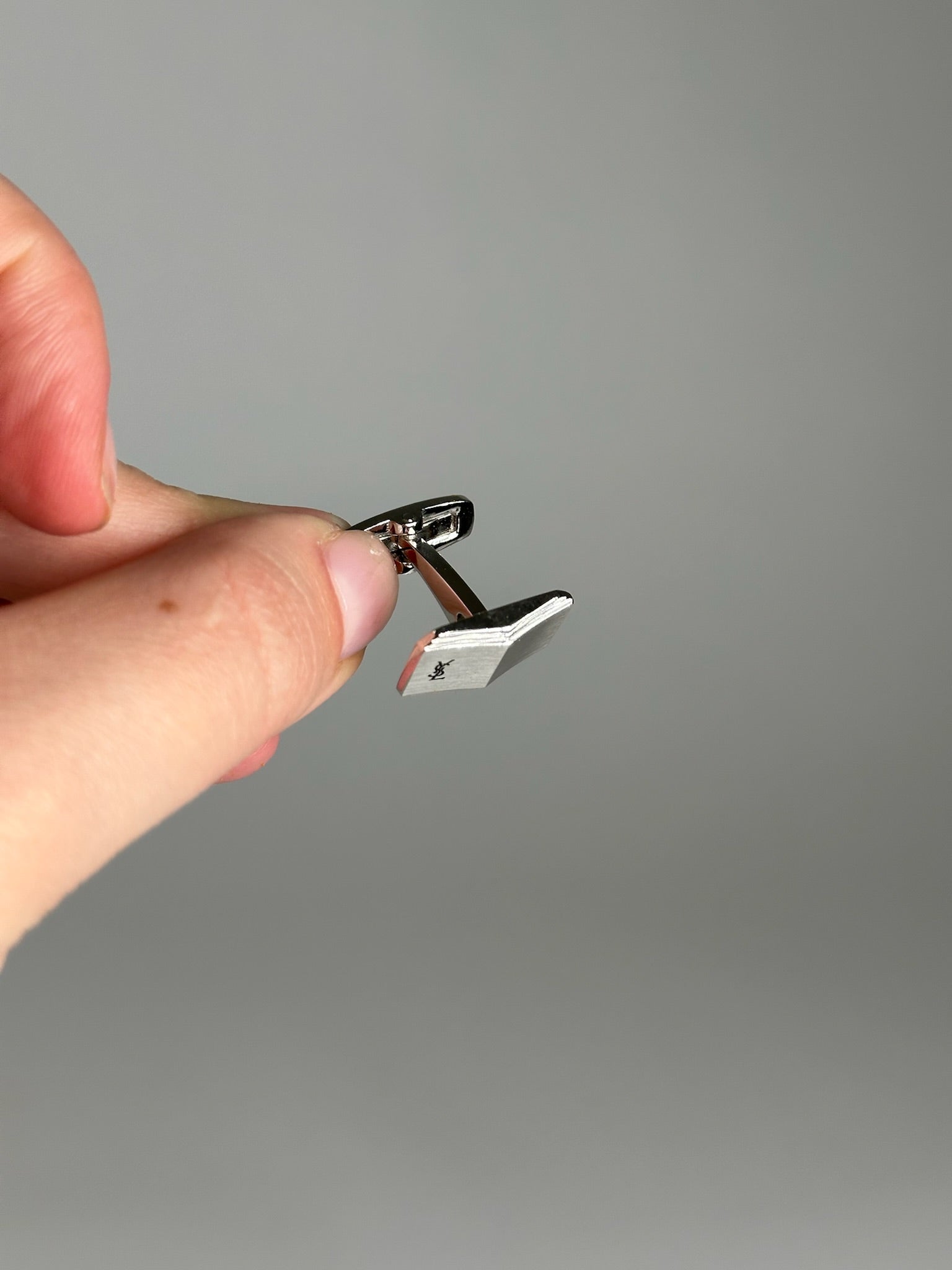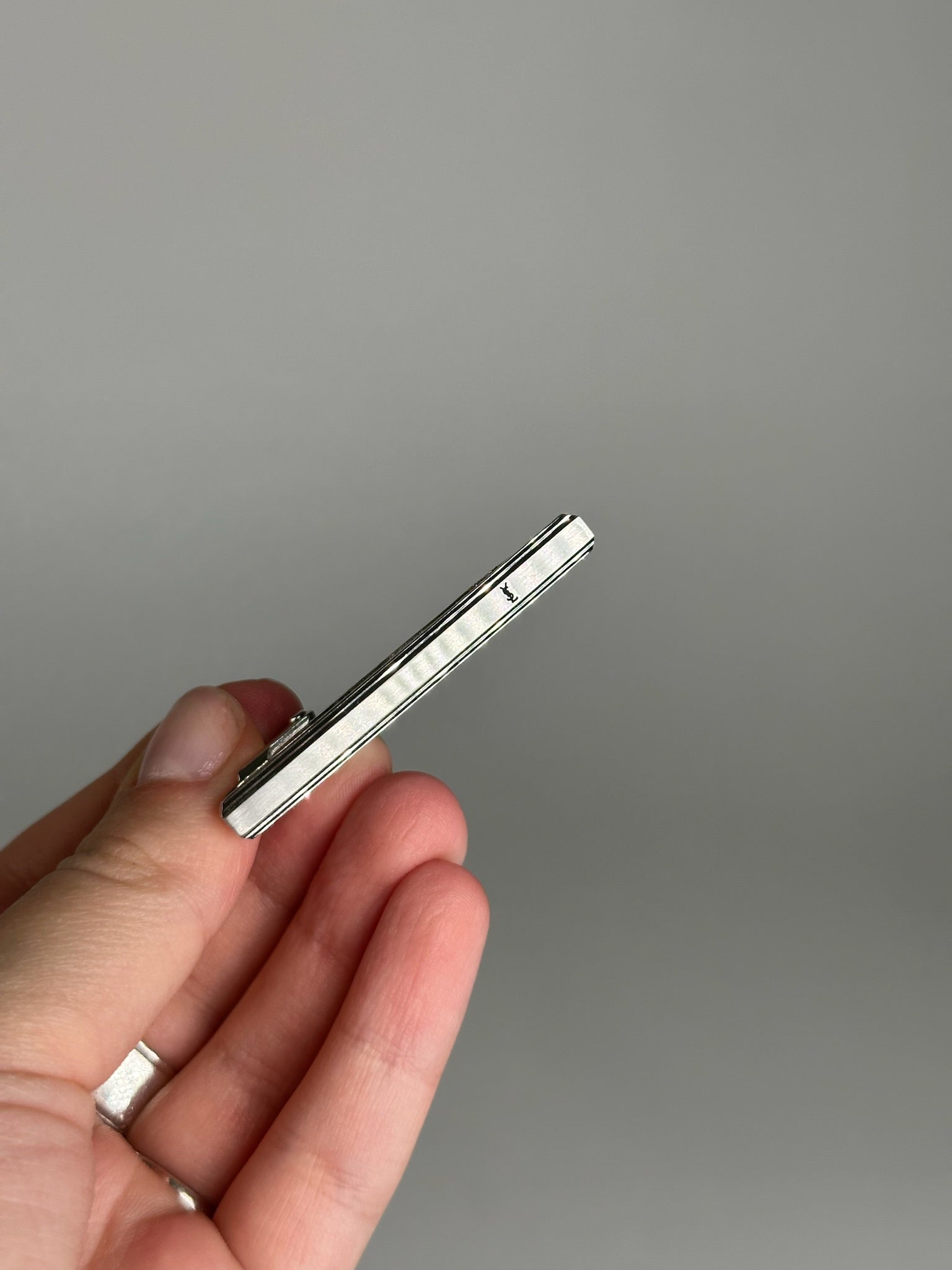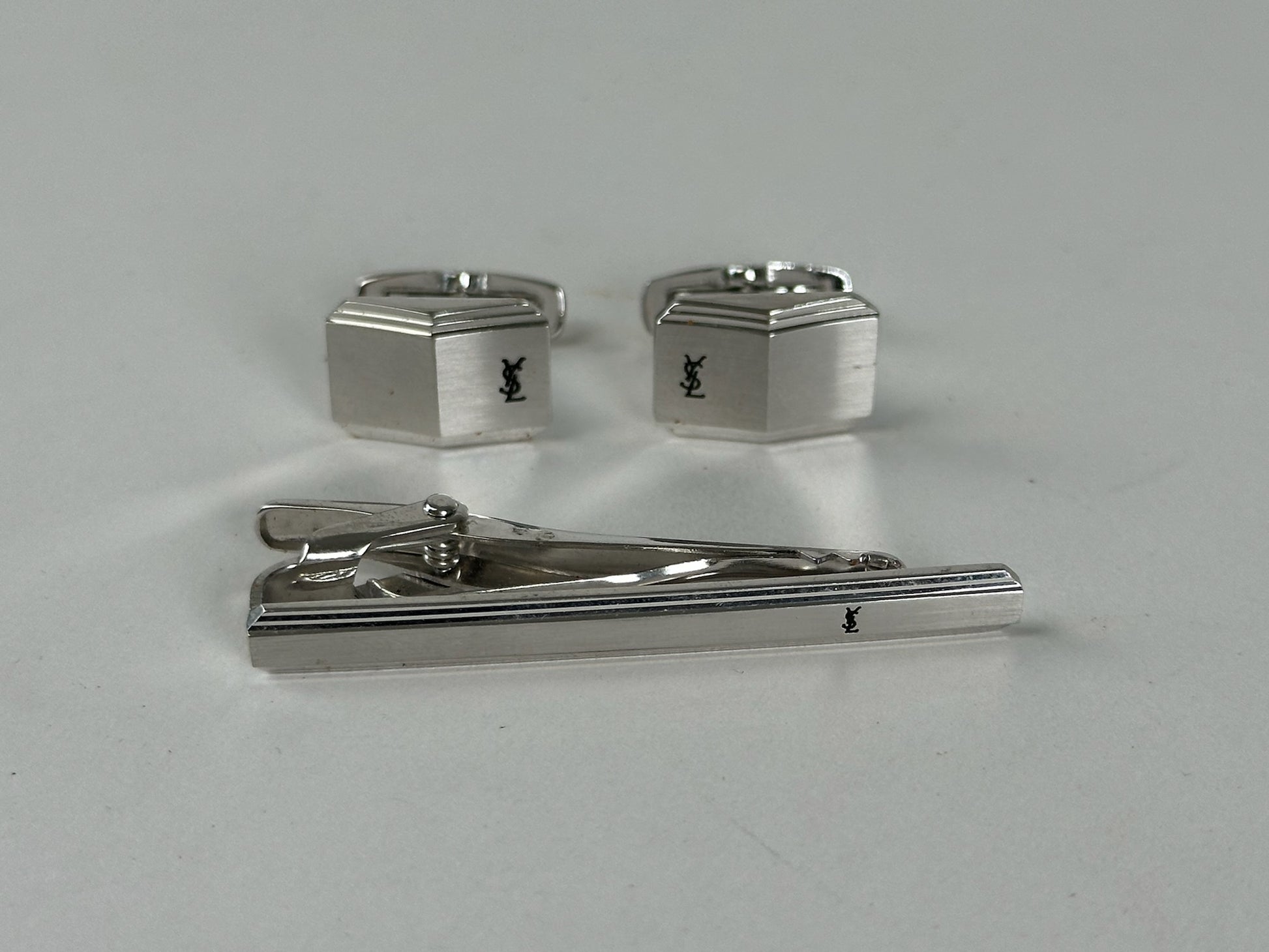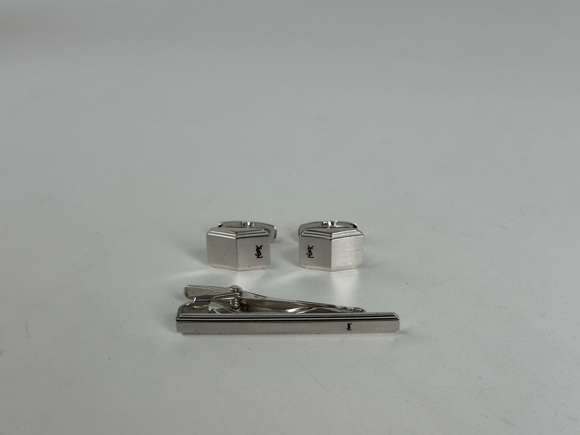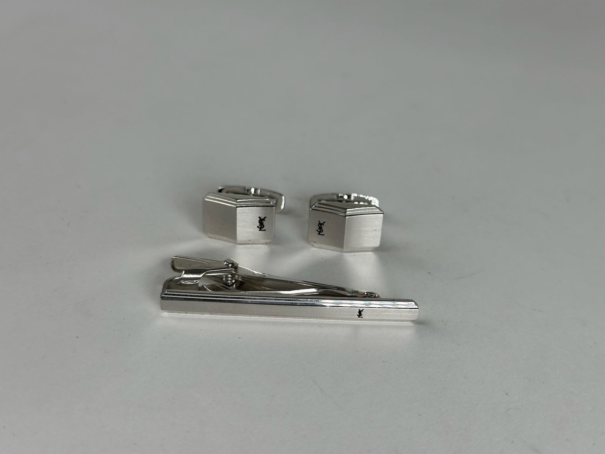 Vintage Yves Saint Laurent Cufflinks & Tie/money Clamp Set silver steel