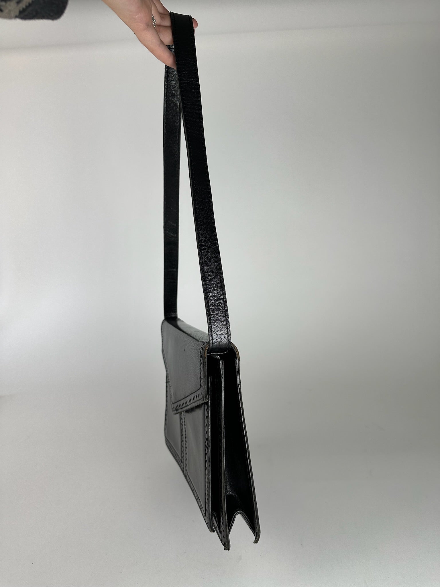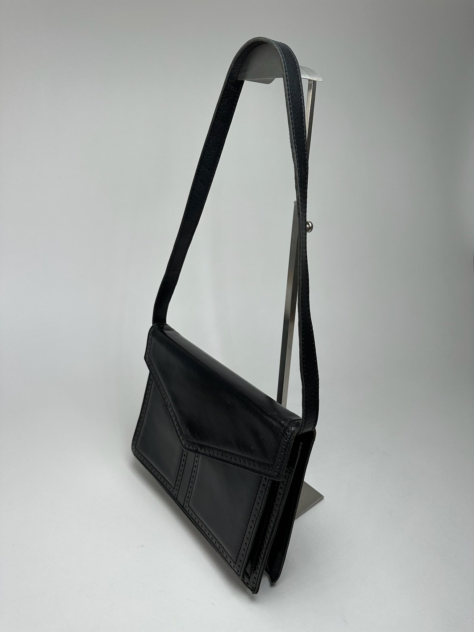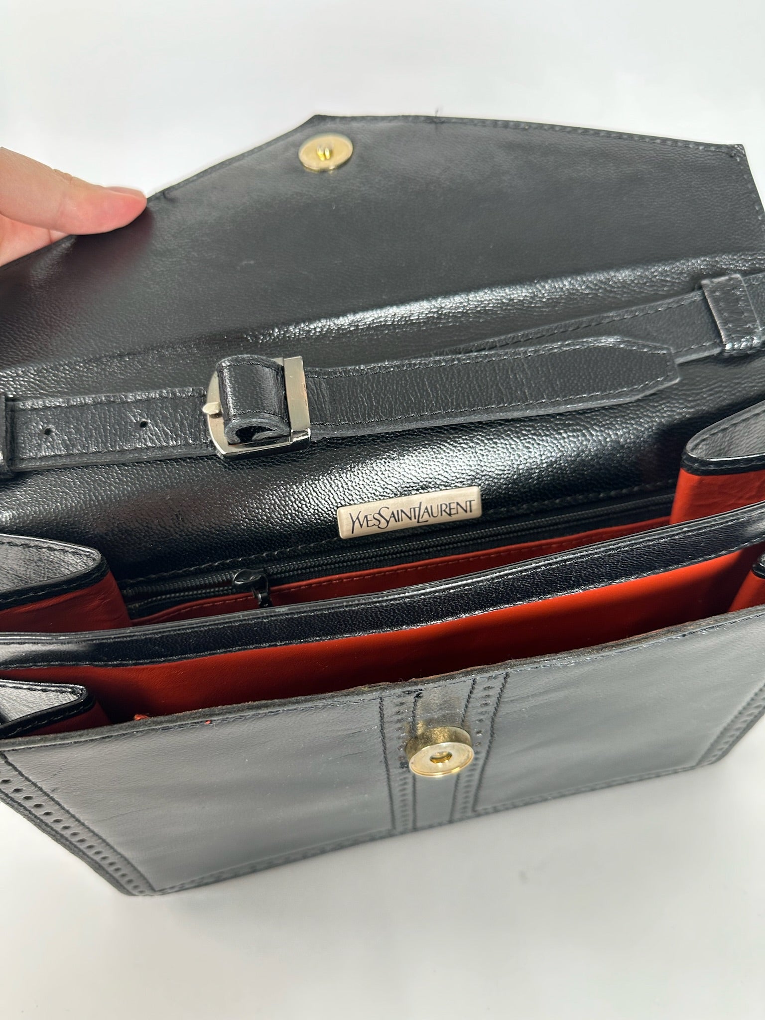 YVES SAINT LAURENT Vintage Shoulder Bag. This chic handbag is finely crafted of black leather and features a wide handle, allowing it to be comfortably worn over the shoulder. It is finished with silver-tone hardware and a magnetic closure for easy access.
