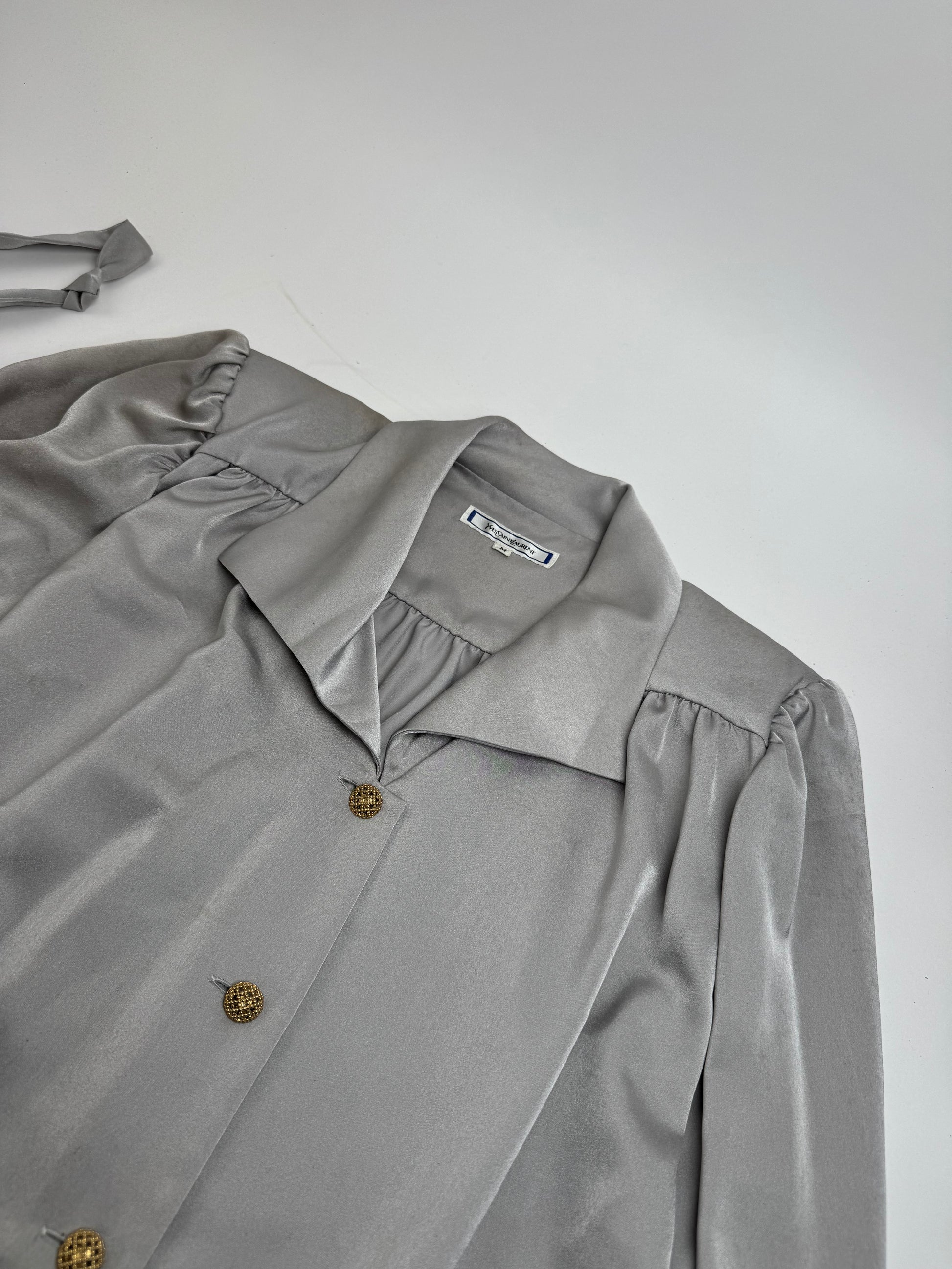 Vintage Yves Saint Laurent Silk Blouse silver 38/M