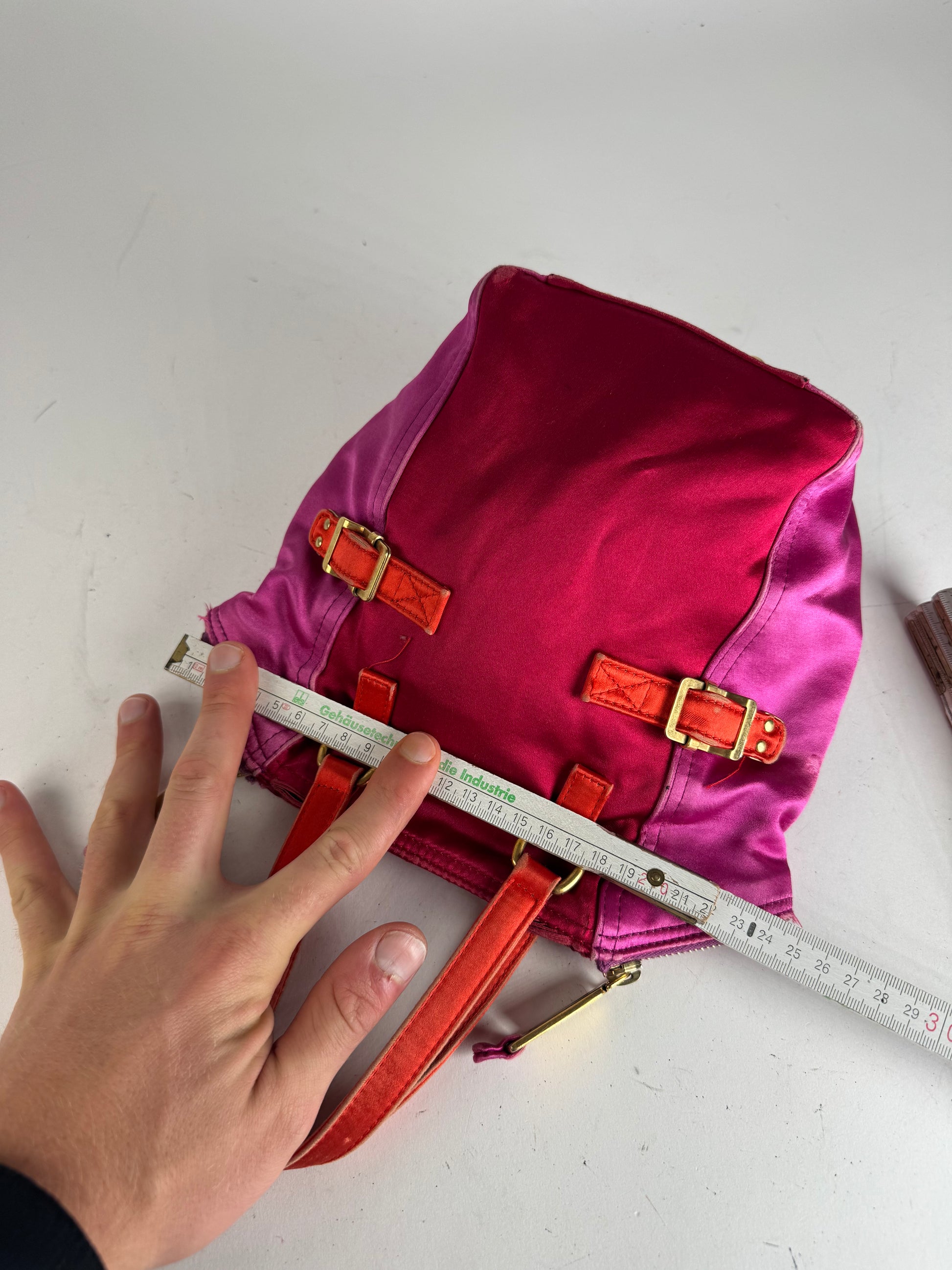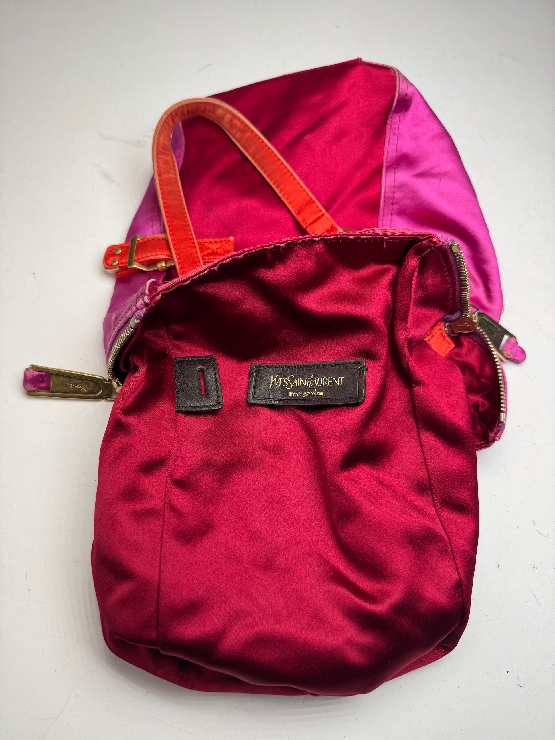 Vintage Yves Saint Laurent Velvet Leather Mini Handbag Pink Red Orange