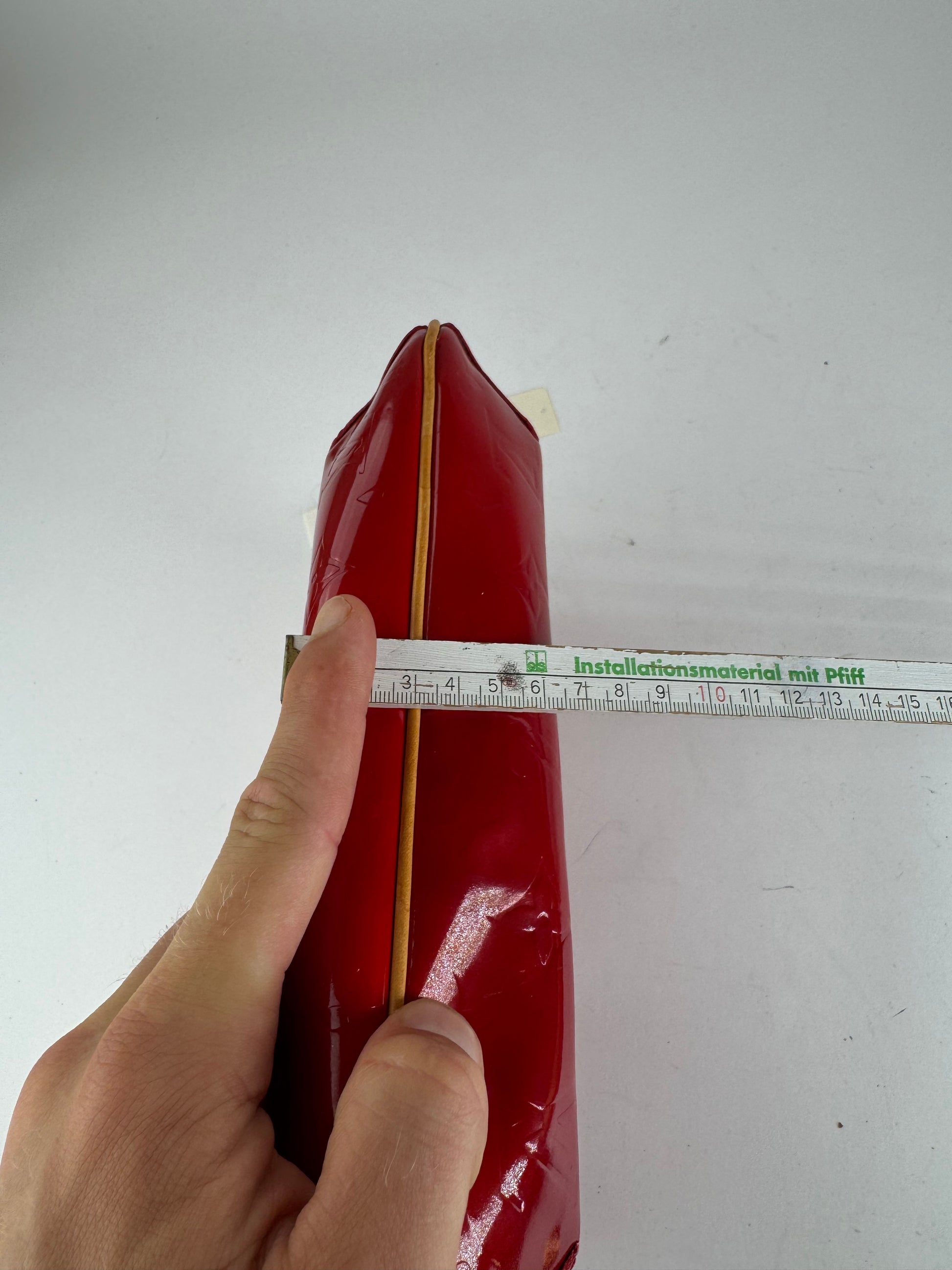 LOUIS VUITTON Vintage Clutch. This elegant clutch is finely crafted of red Vernis patent leather. The bag features a gold-tone steel magnetic closure. Originally designed as a small shoulder bag, it has been reworked into a clutch. Louis Vuitton introduced the Monogram Vernis line in the late 1990s under Marc Jacobs, combining the house’s timeless craftsmanship with high-shine patent leather for a modern, luxurious finish. The interior is lined in smooth red leather.